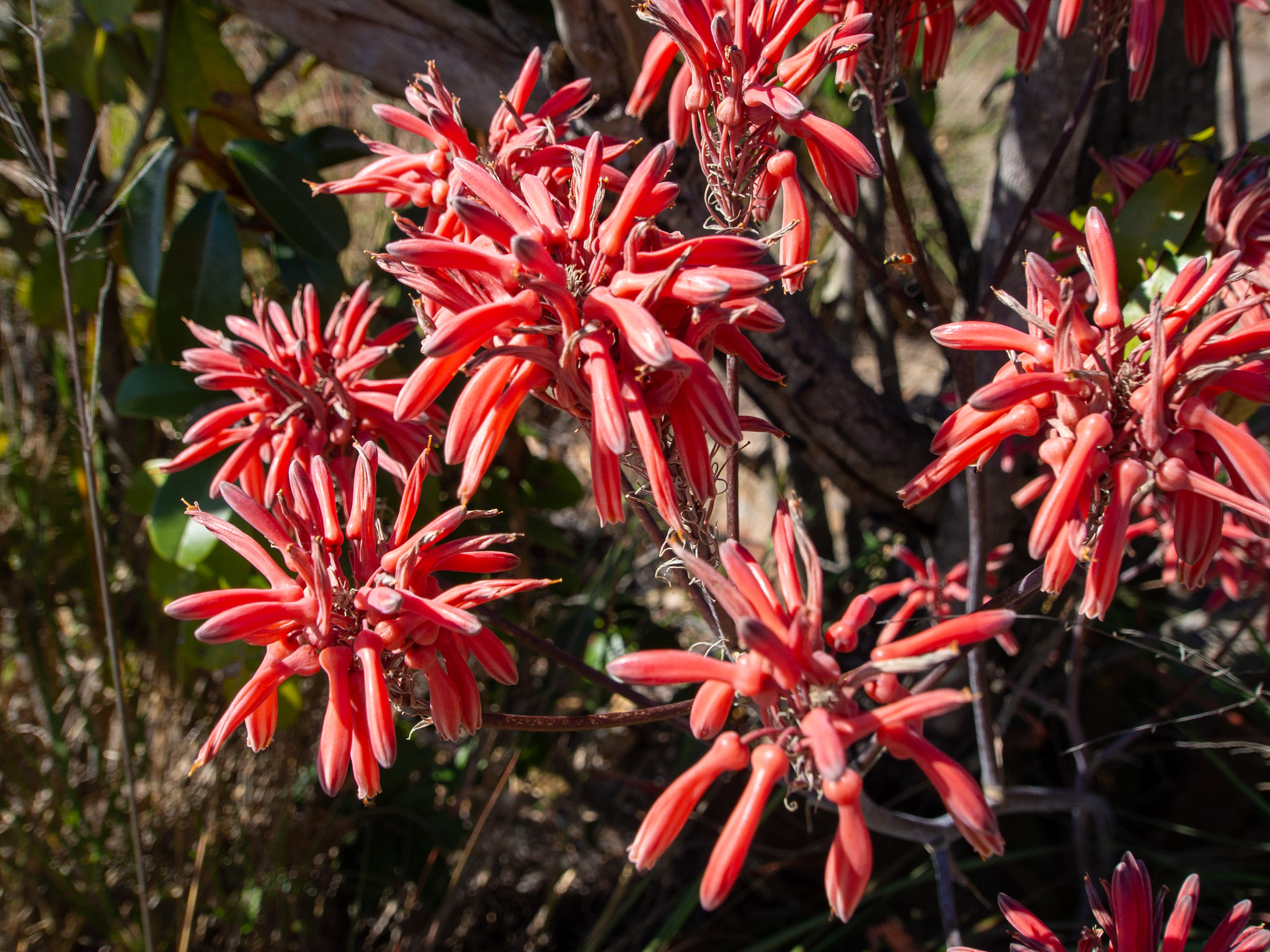 Sur le parking du point de vue, un arbre par contre semble à contre courant. Il fleurit en plein hiver, on s’approche pour le regarder et un vendeur nous explique que cet arbre est spécial, il s’appelle le moral tree, il a des très belles fleurs rouges magnifiques.