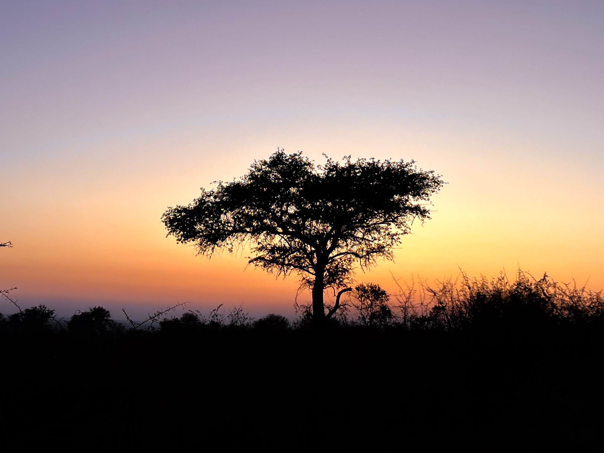 Ce matin nous avons réglé le réveil aux aurores pour aller voir les animaux lors de leur phase la plus active de la journée. En effet, la faune préfère éviter les grosses chaleurs et c’est à ce moment là que l’on a plus de chance de les apercevoir. Les portes du camp ouvrent à 6h les matins de Juillet, à 6h03 nous les franchissons et nous retrouvons dans ce monde sauvage. Il fait encore presque nuit, petit à petit le soleil vient éclairer le ciel de couleurs pastels.