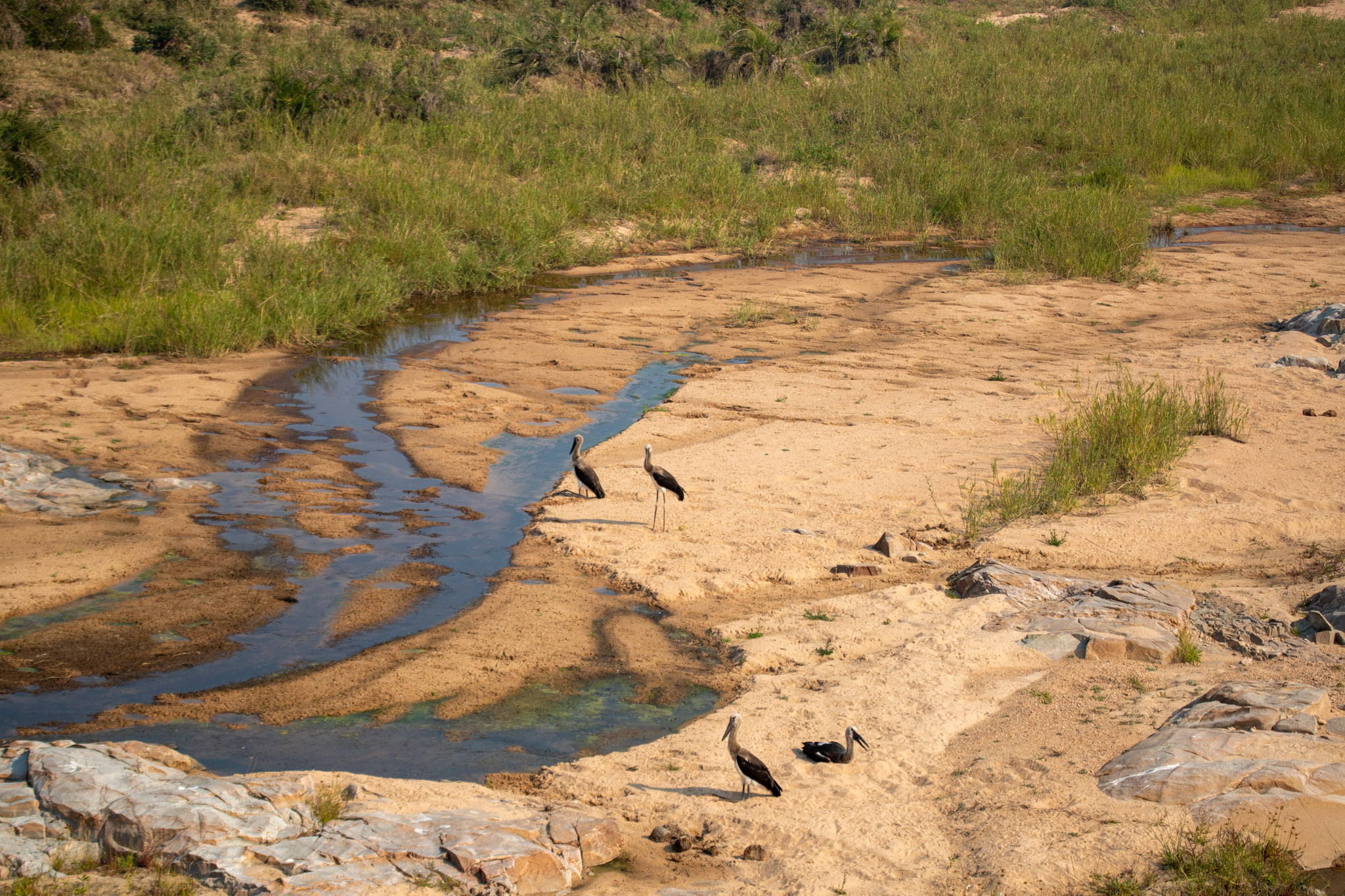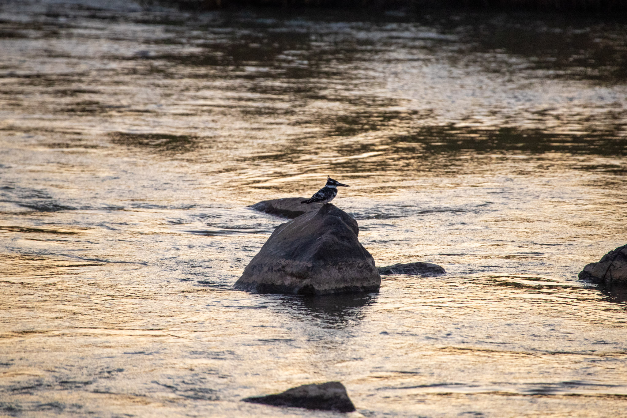 Nous roulons à basse vitesse dans l’espoir d’une rencontre avec un animal que l'on a pas encore vu la veille, pourquoi pas un fauve ? Nous marquons un temps d’arrêt à chaque fois que l’on traverse la riviere Sabi mais pour le moment rien, mis à part ce martin pêcheur posé sur un rocher.