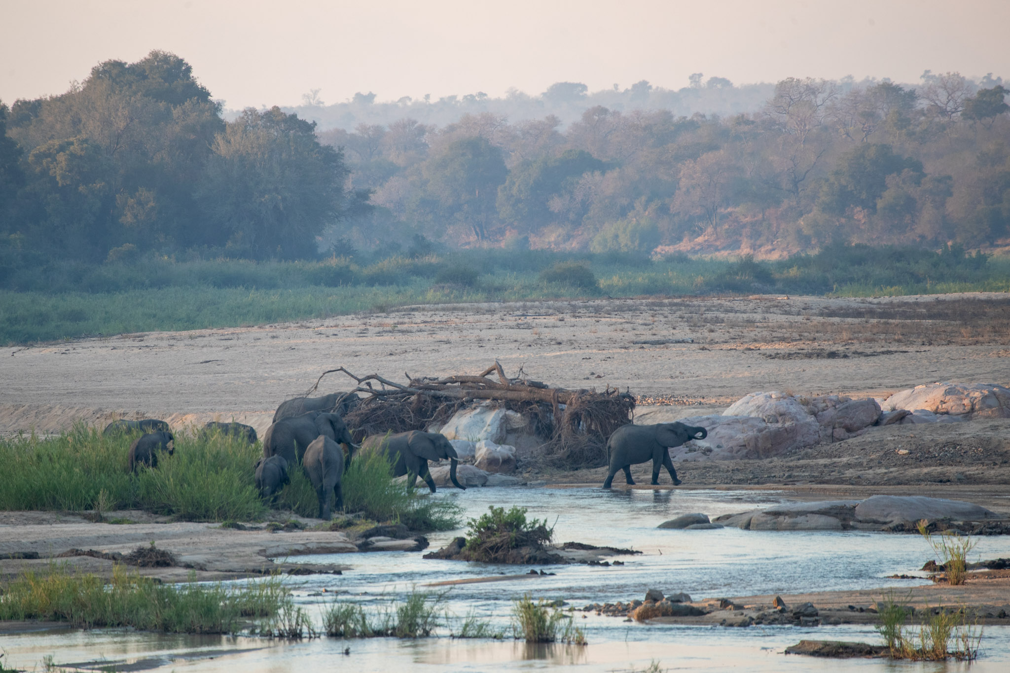 Alors que l’on arrive à un autre pont, on arrive face à une belle scène qui nous fait monter le niveau d’adrénaline. Un troupeau d’éléphant vient s’abreuver dans le lit de la rivière. Il y a des adultes et des éléphanteaux, le plus petit jour avec sa trompe, il est vraiment mignon.