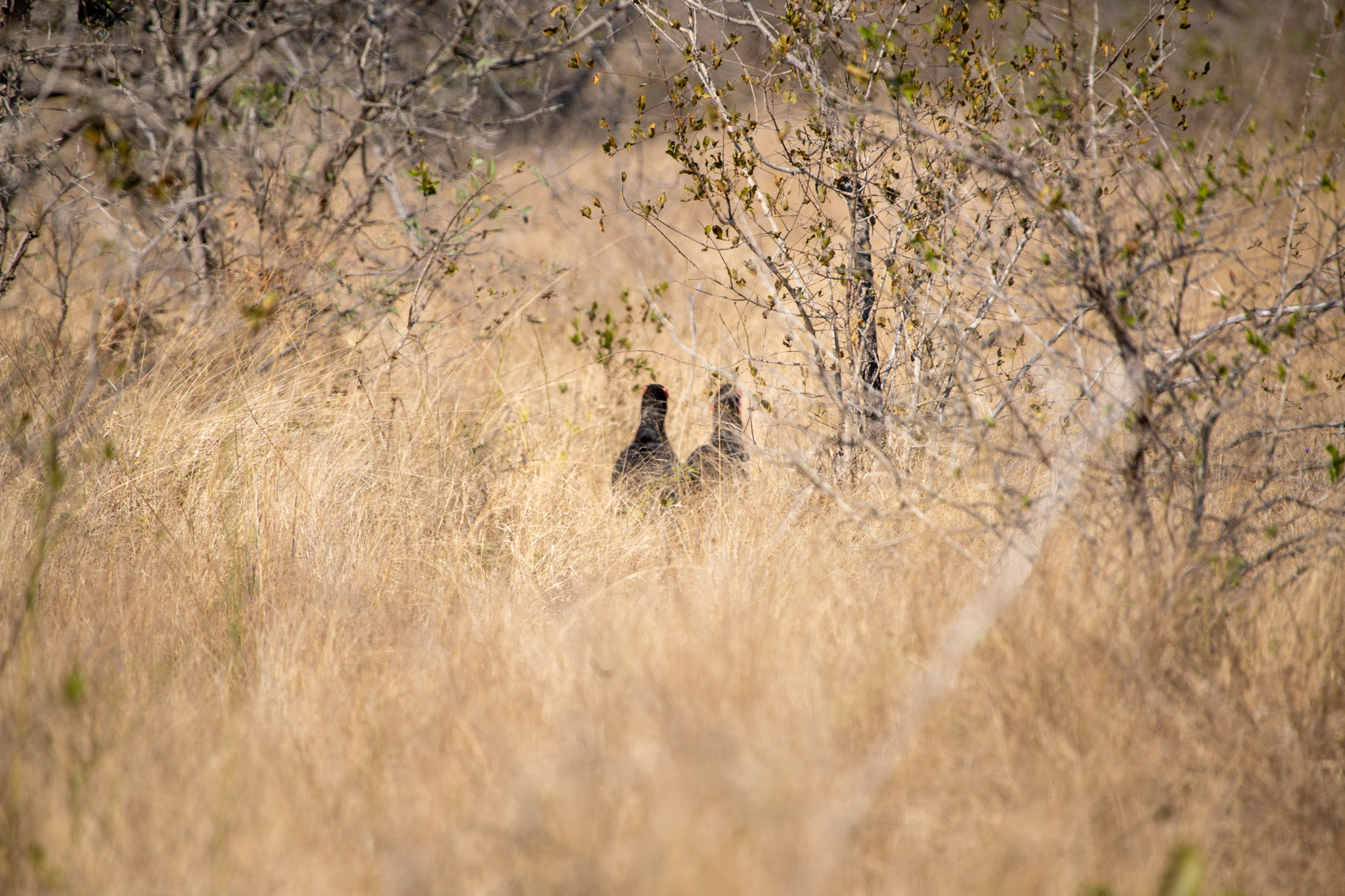 On roule en direction du Sud, car la carte indiquait que c’est là que les fauves avaient été vus. Effectivement en pleine journée, il y a peu d’activité à part de nombreux groupes d’impala et de Nyala et la tête d'oiseaux bizarres, noir et rouge qui dépasse dans les broussailles