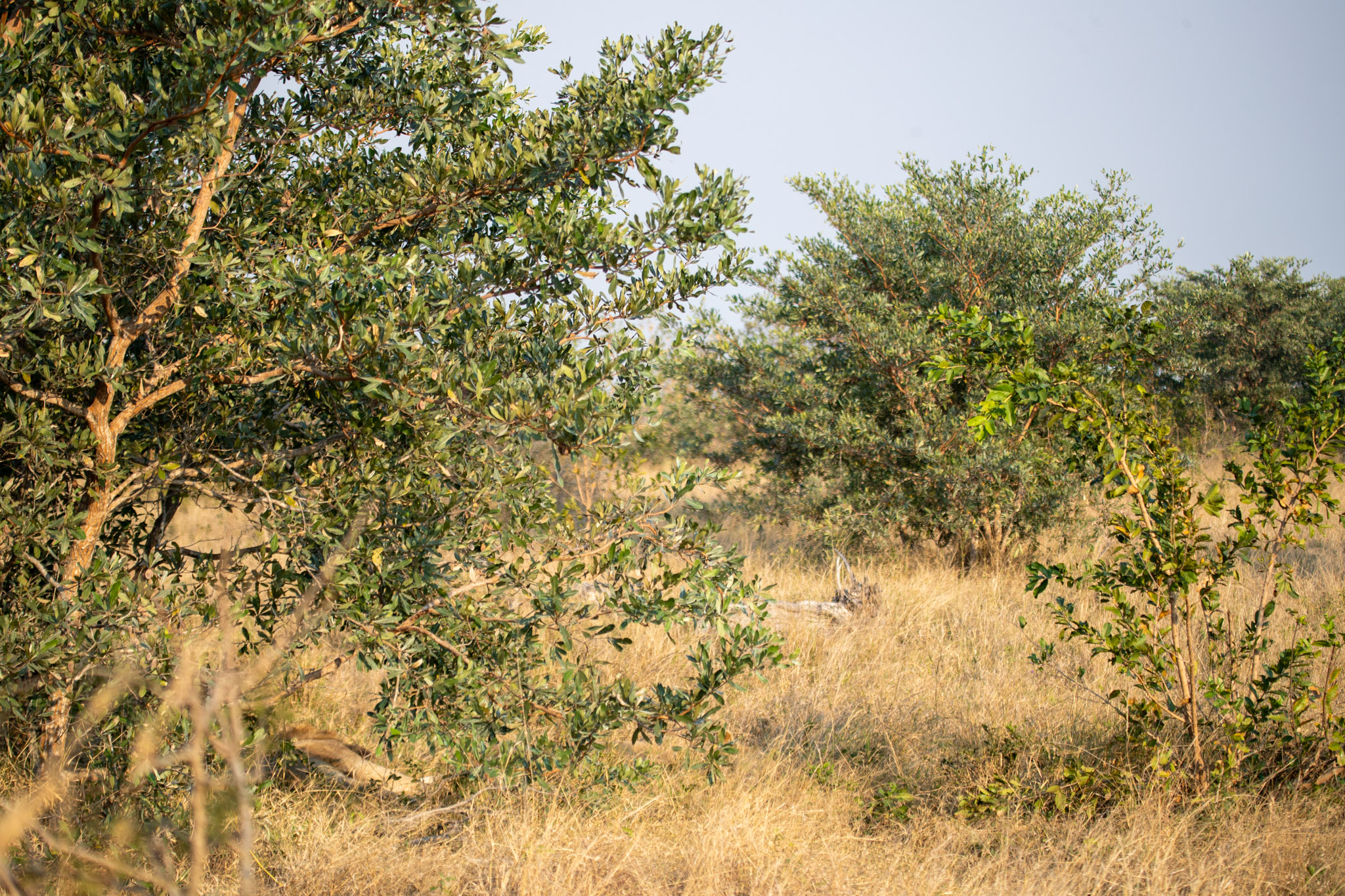 Nous arrivons au croisement des routes vers Pretoriuskop et Skukuza. C’est par ici qu’en milieu de journée on avait vu le corps de l’impala dans la journée. Il nous reste presque 1 heure avant la fermeture de la gare, on décide de retourner voir l’arbre si le léopard est revenu. Après quelques kilomètres, on voit quelques voitures stoppées sous le fameux gros arbre.