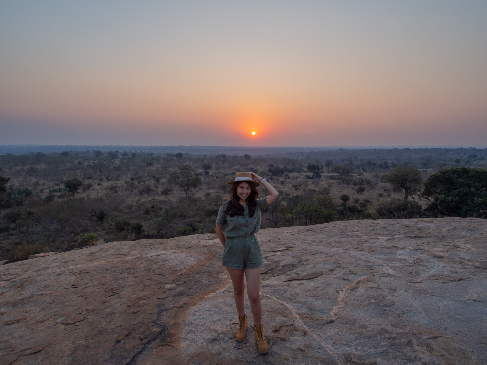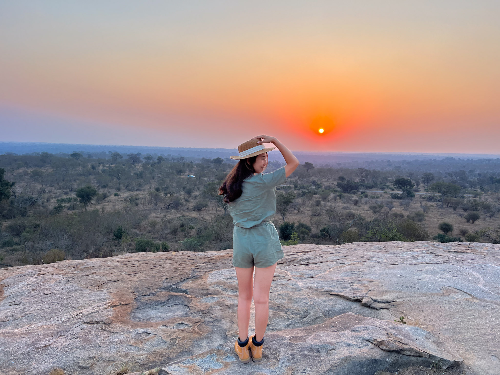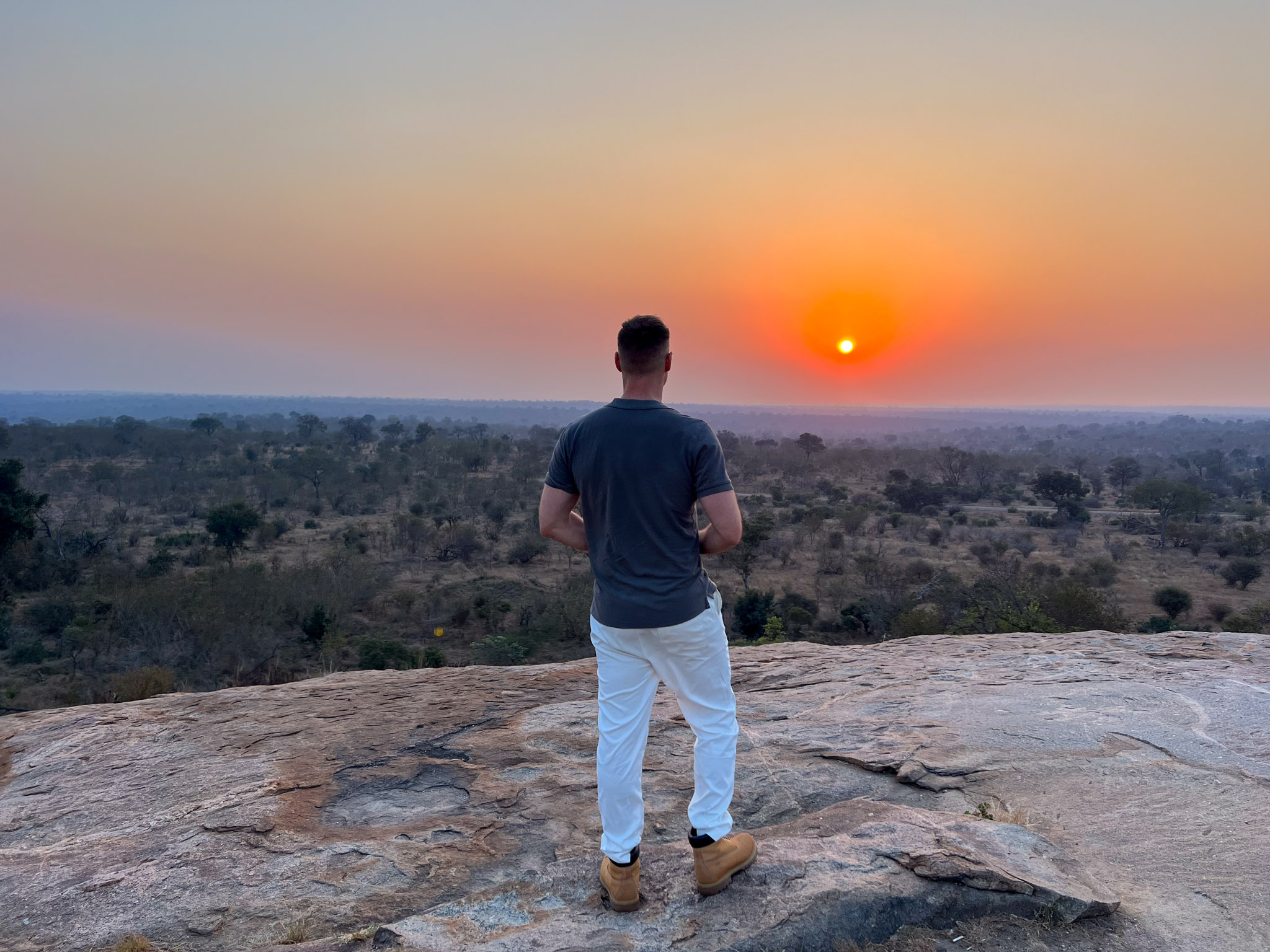 On retourne au promontoire sur le chemin, un petit détour pour admirer le coucher de soleil sur la savane à perte de vue. On sort de la voiture pour s’installer un moment face à ce paysage qui nous rappelle nos rêves d’enfants, génération qui a grandi avec le Roi Lion.