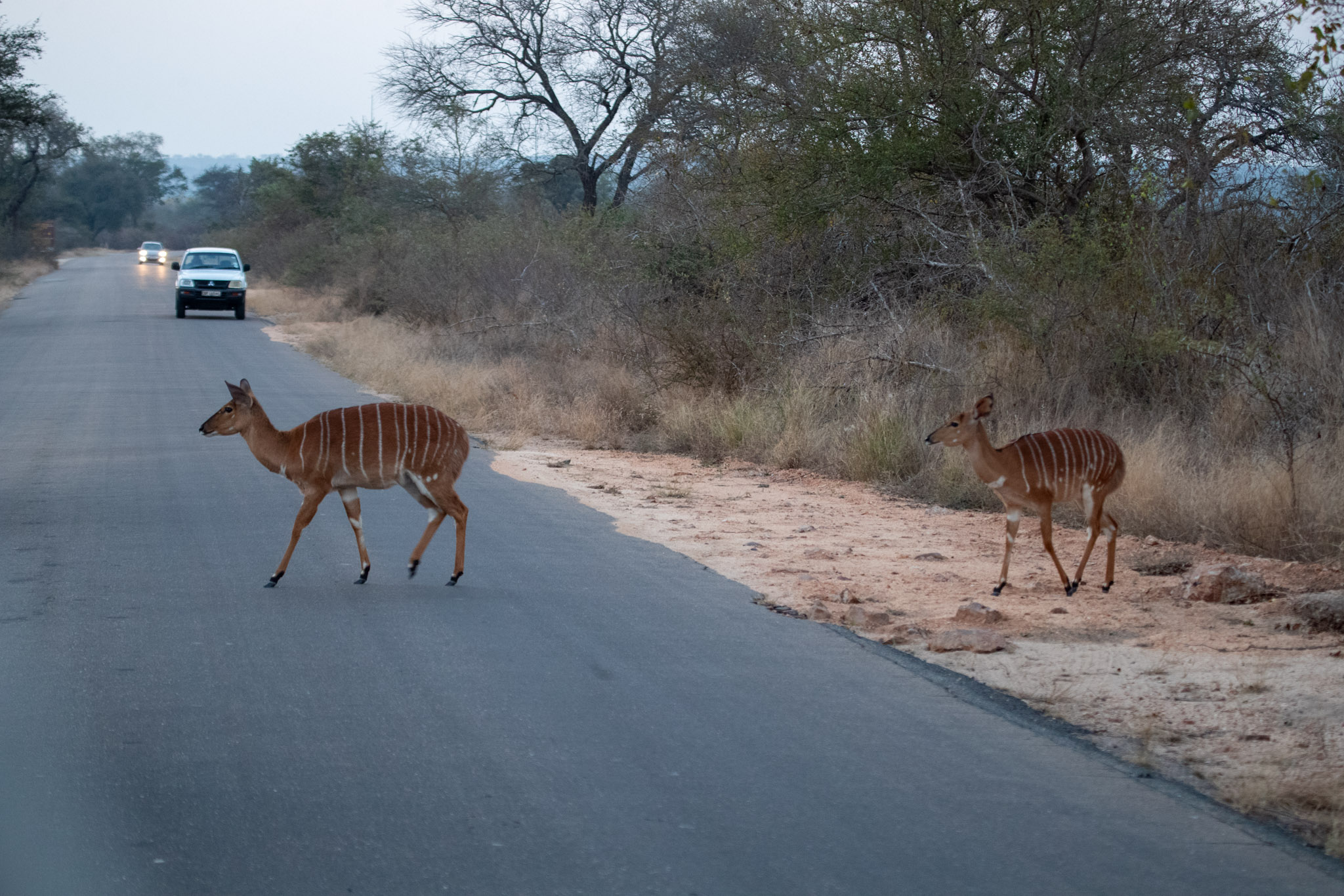 Cette fois on ne doit plus traîner, on rentre au camp à toute vitesse, on est plusieurs voitures à se suivre à cette heure tardive. Devant les portes du camp, on est arrêté une dernière fois pour un groupe de Nyala qui traverse la route.