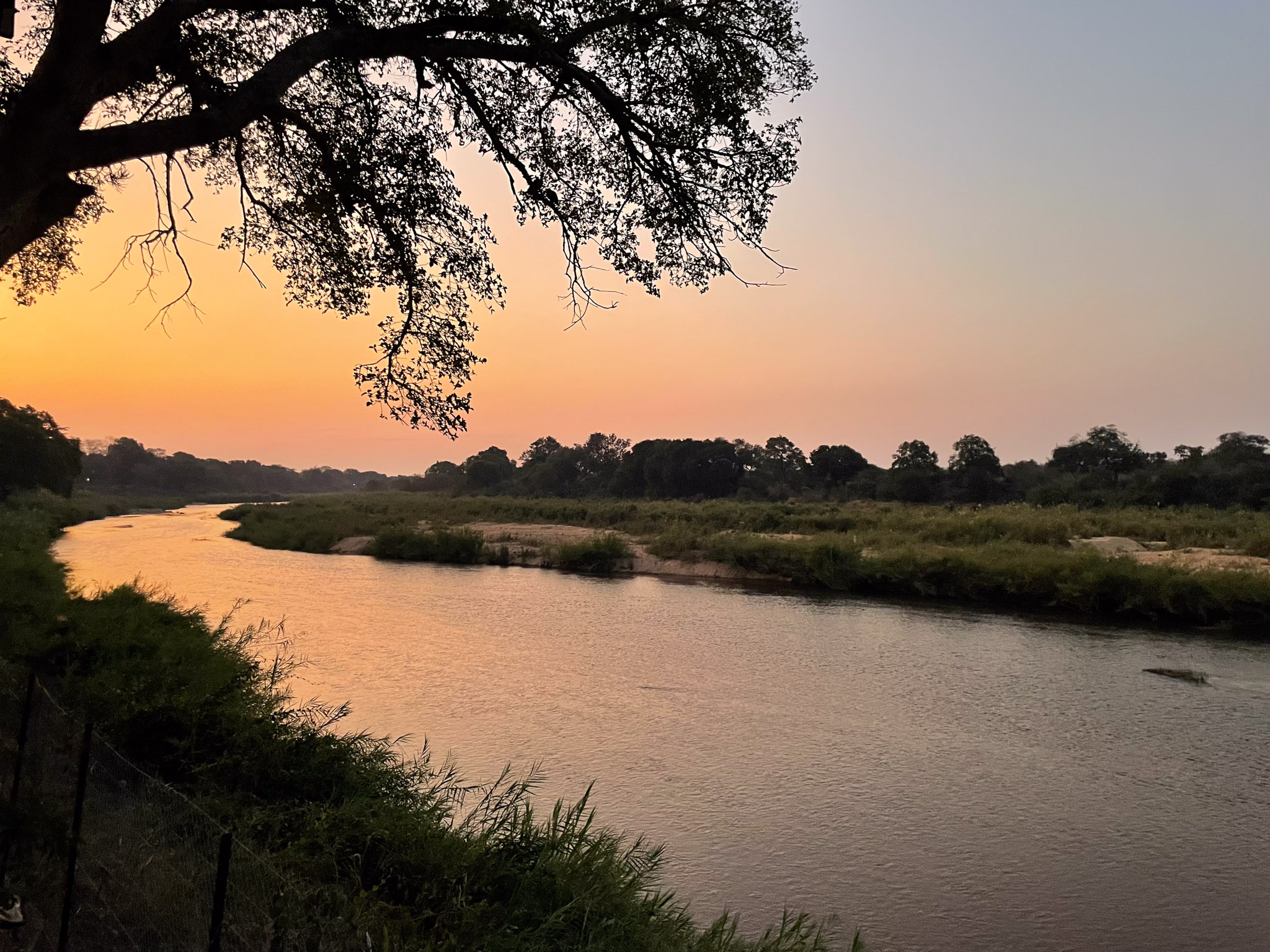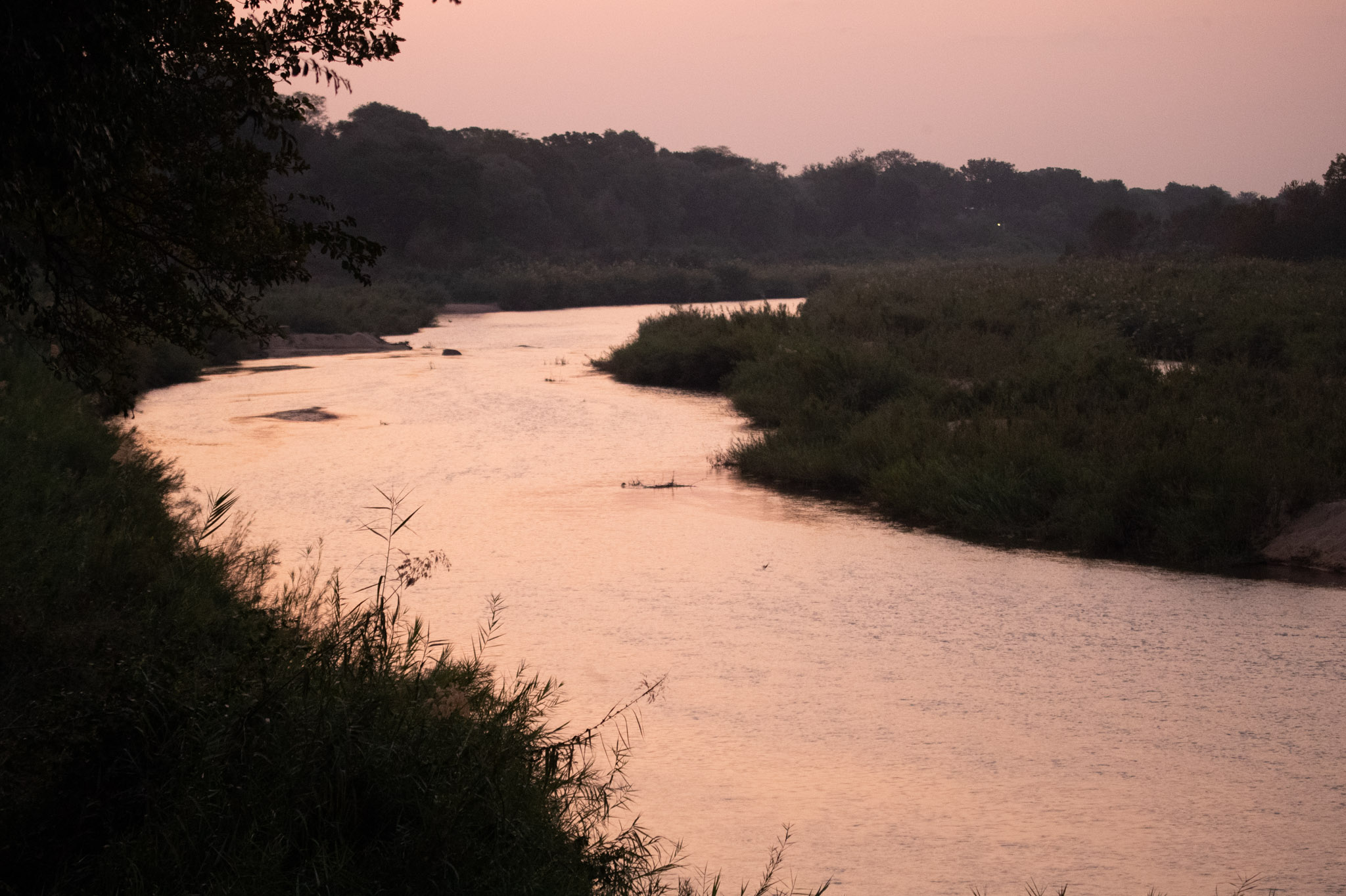 Il est presque 17h30 quand on franchit les portes du camp. ON s’arrête au visitor center pour réserver une activité. Il faut faire la queue au même endroit que pour prendre les clés au check in. Il y an encore de la place pour toutes les activités proposées dont le night drive qui commence dans moins de trois heures. Finalement on craignait de ne pas pouvoir faire d’activités organisées à cause des vacances, ça aussi c’est bon. En attendant que le tour ne commence on fait quelques courses au supermarché que l’on mange rapidement. Il fait presque nuit sur la rivière avec un magnifique coucher de soleil. On profite de la vue dans l’espoir de voir un animal sortir de la forêt pour s’abreuver mais sans succès. C’est notre dernière soirée ici on aura vraiment adoré ce camp de Skukuza, il est grand avec plusieurs restaurants et le point de vue sur la rivière est enchanteur surtout le matin au petit déjeuner.