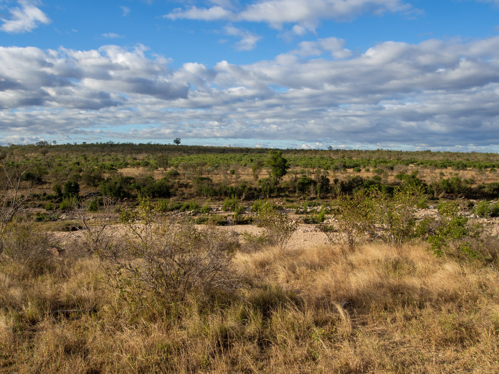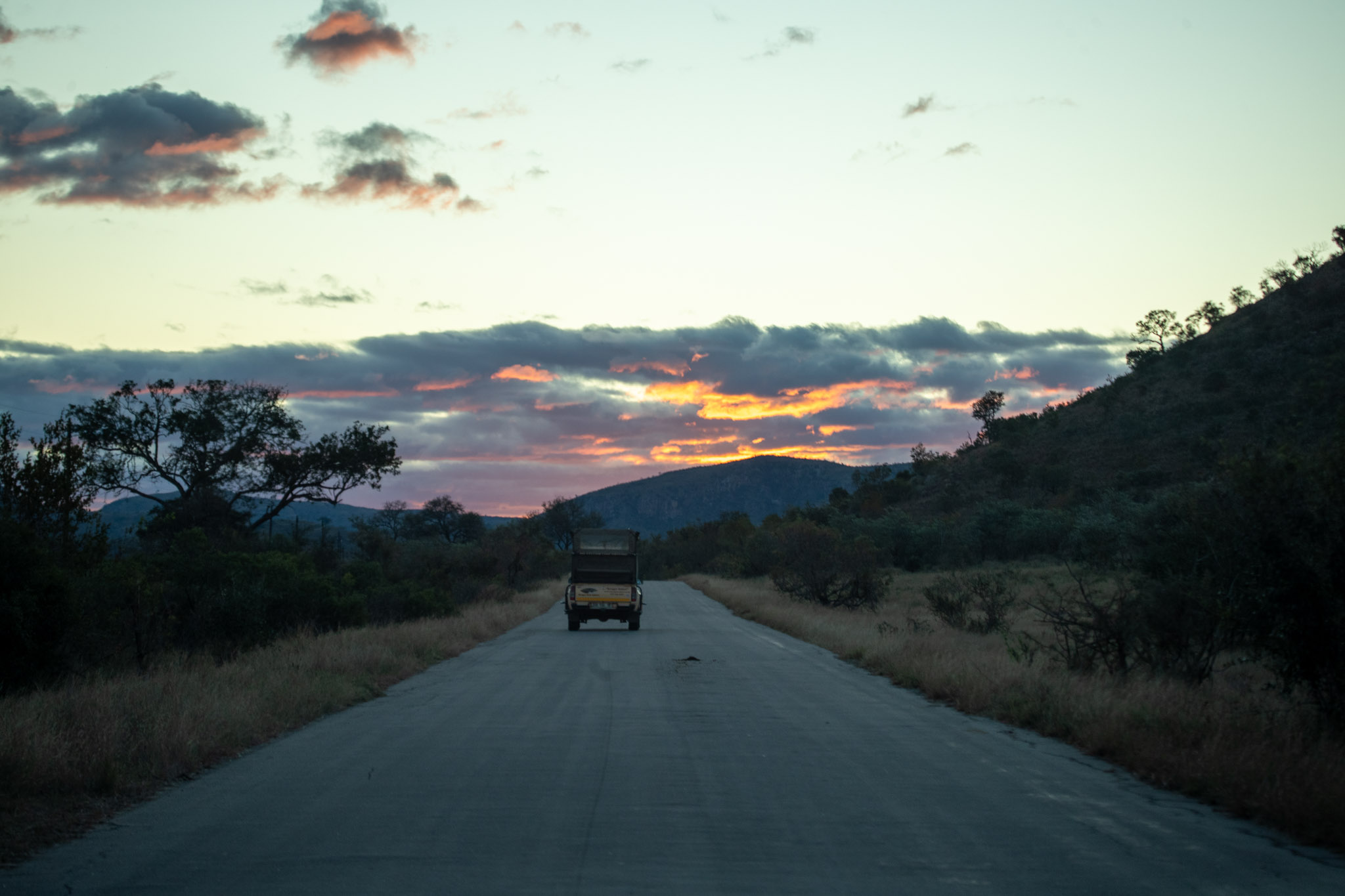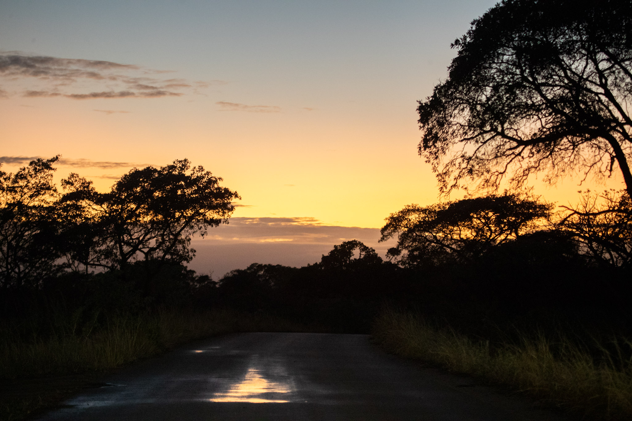 Le camps de Petroriuskop est le plus haut en altitude de tout le parc du Kruger, et on a pu le ressentir car il a fait plutôt frais pendant la nuit. On se lève quand même courageusement aux aurores pour tenter notre chance ce matin. Il faut dire que la veille a été assez maigre en animaux comparé aux deux premiers jours et on espère bien se rattraper aujourd'hui. On se prépare rapidement et on franchit les portes du camp à 6h pile, on a de la chance la pluie s'est arrêtée, on a le droit à un ciel vraiment très clair.