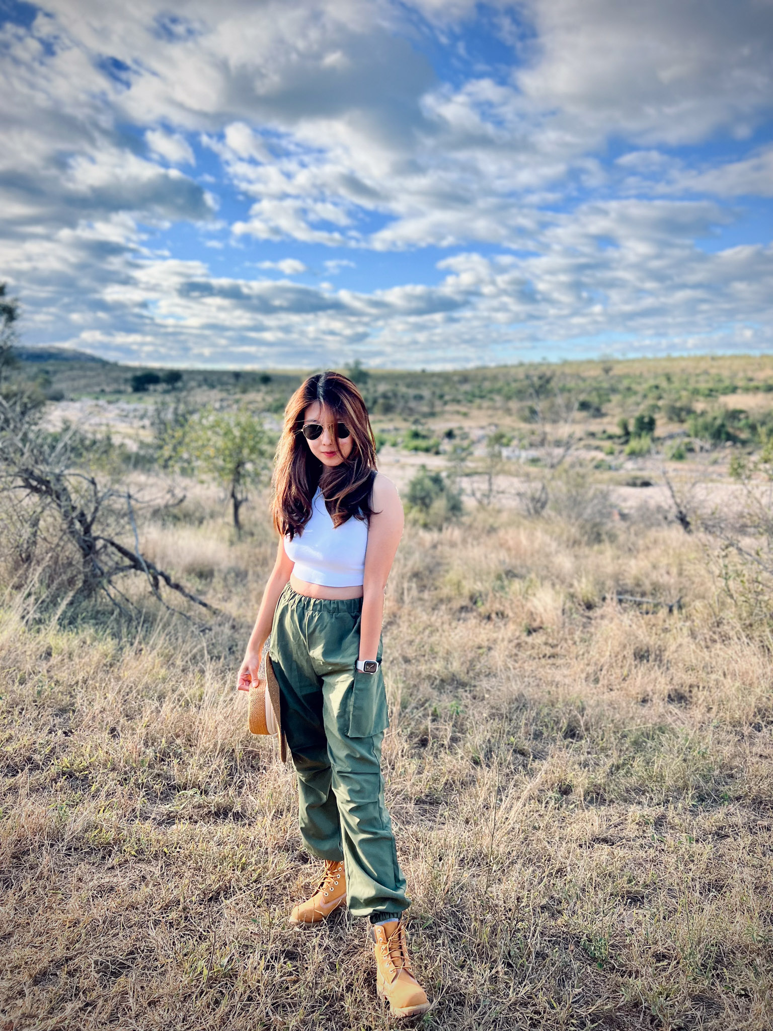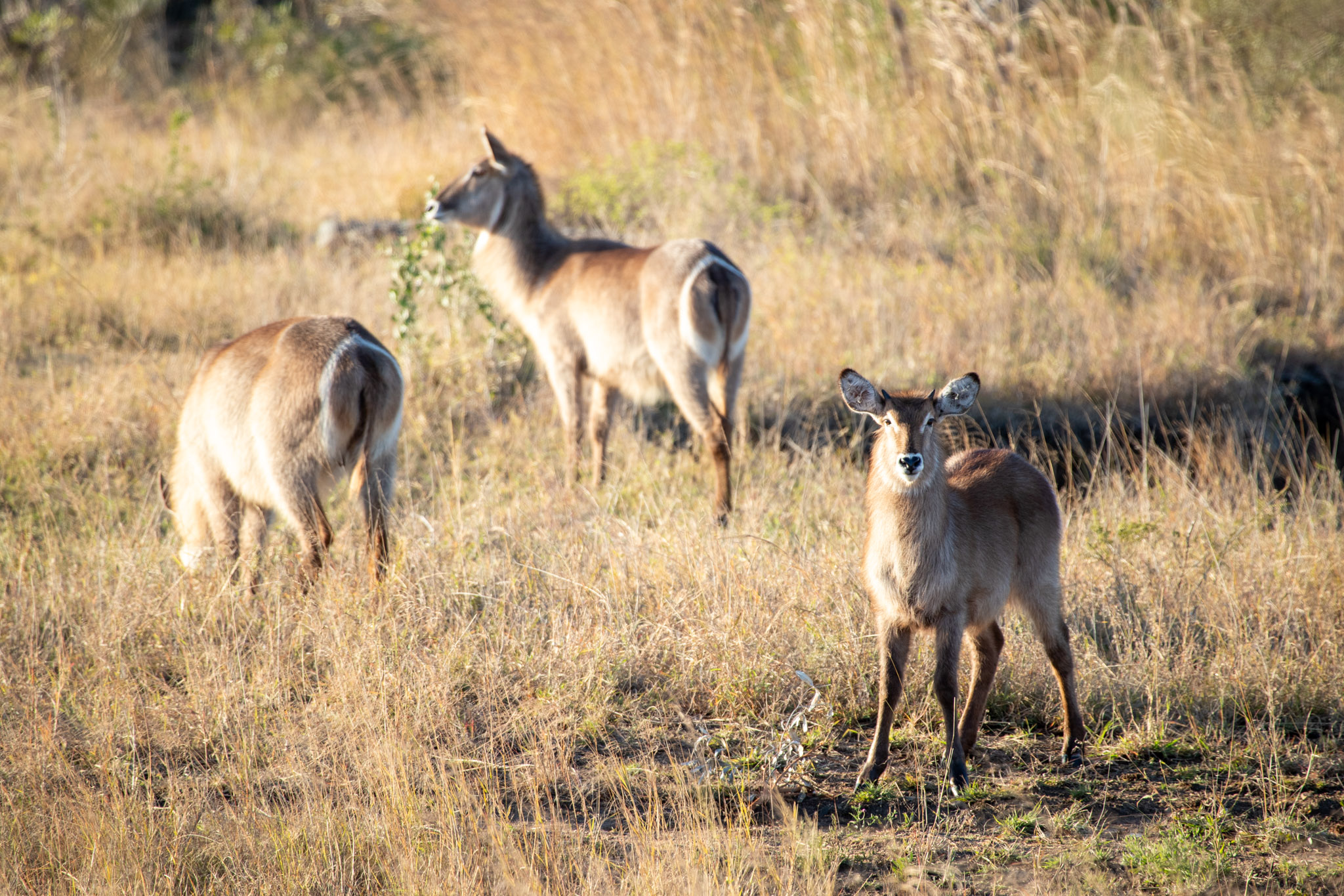 On profite de la lumière de fin de journée sur la savane, on a pris un peu la confiance et on profite d'un endroit bien ouvert pour s'arrêter et profiter du paysage, on se remet aussi de nos émotions.