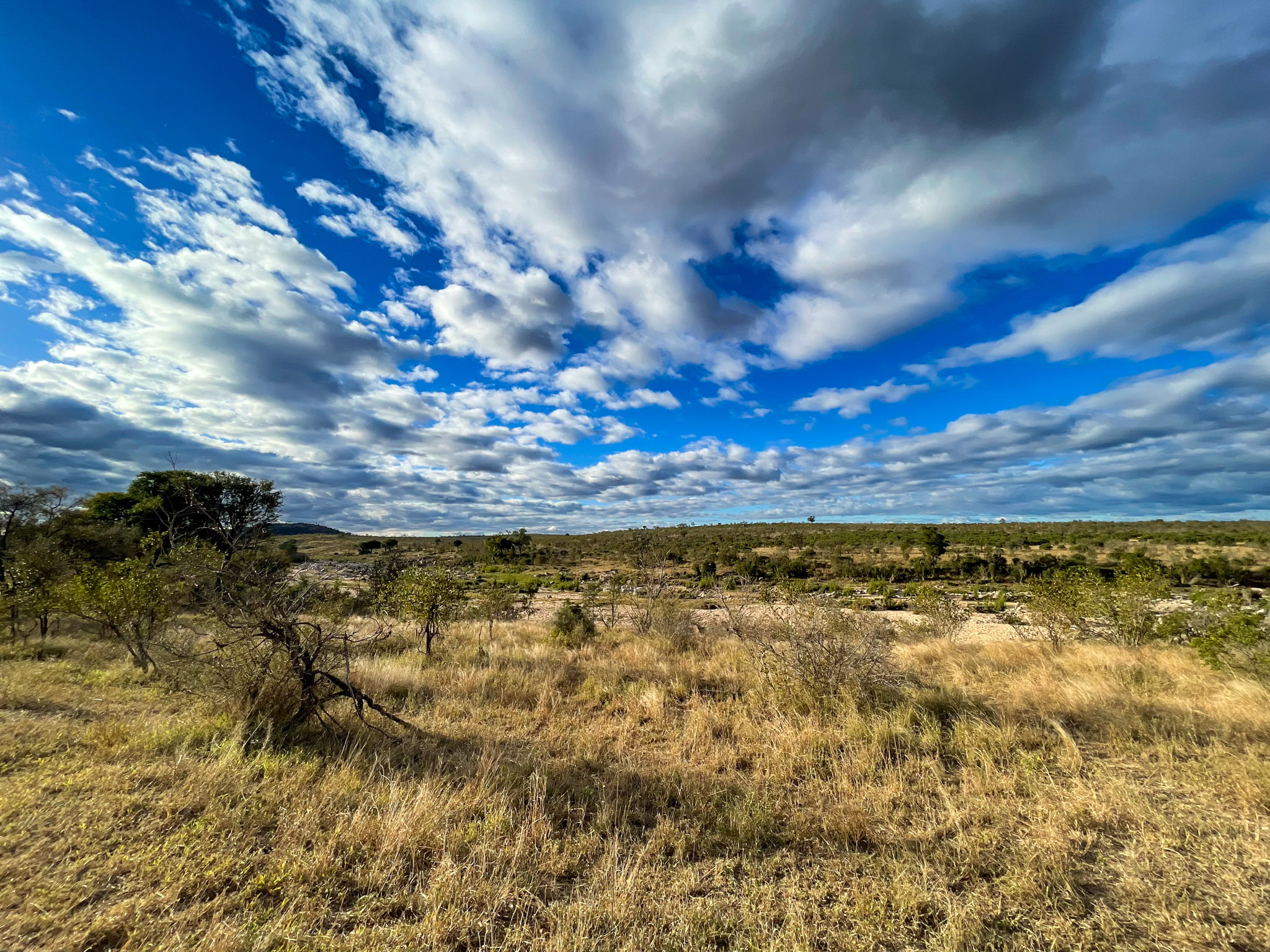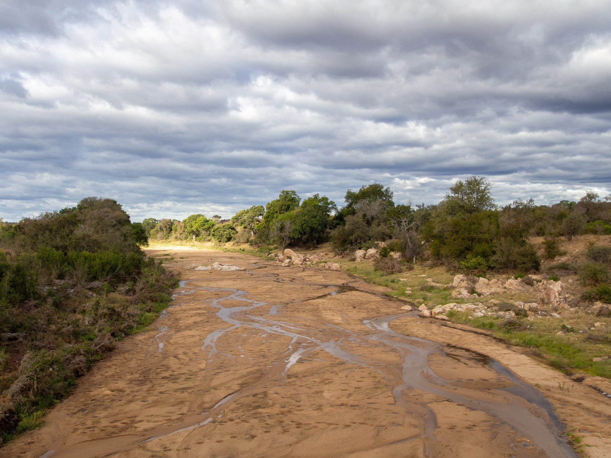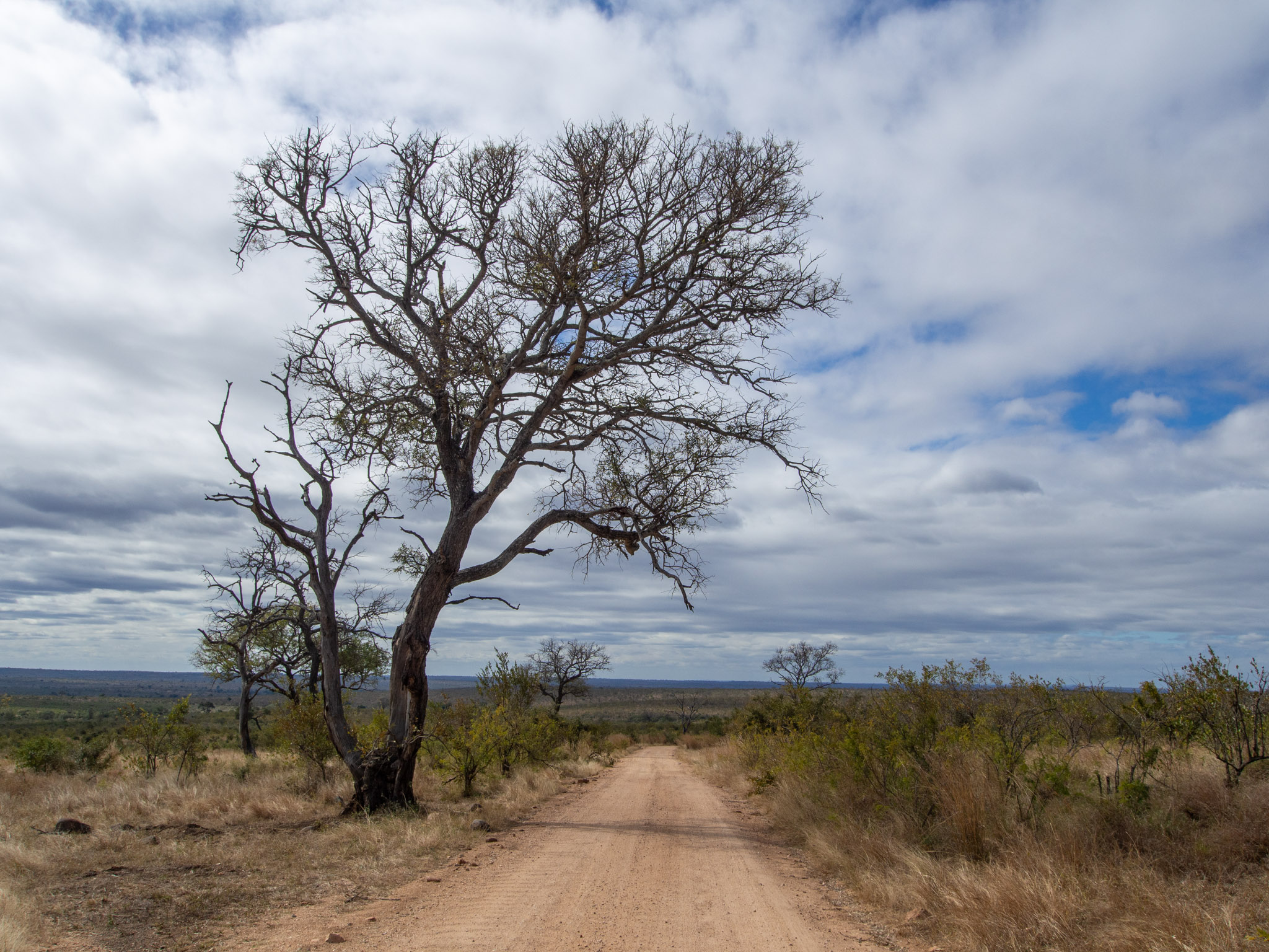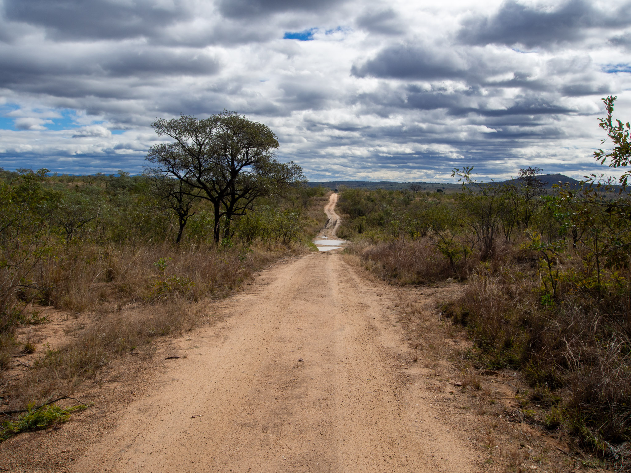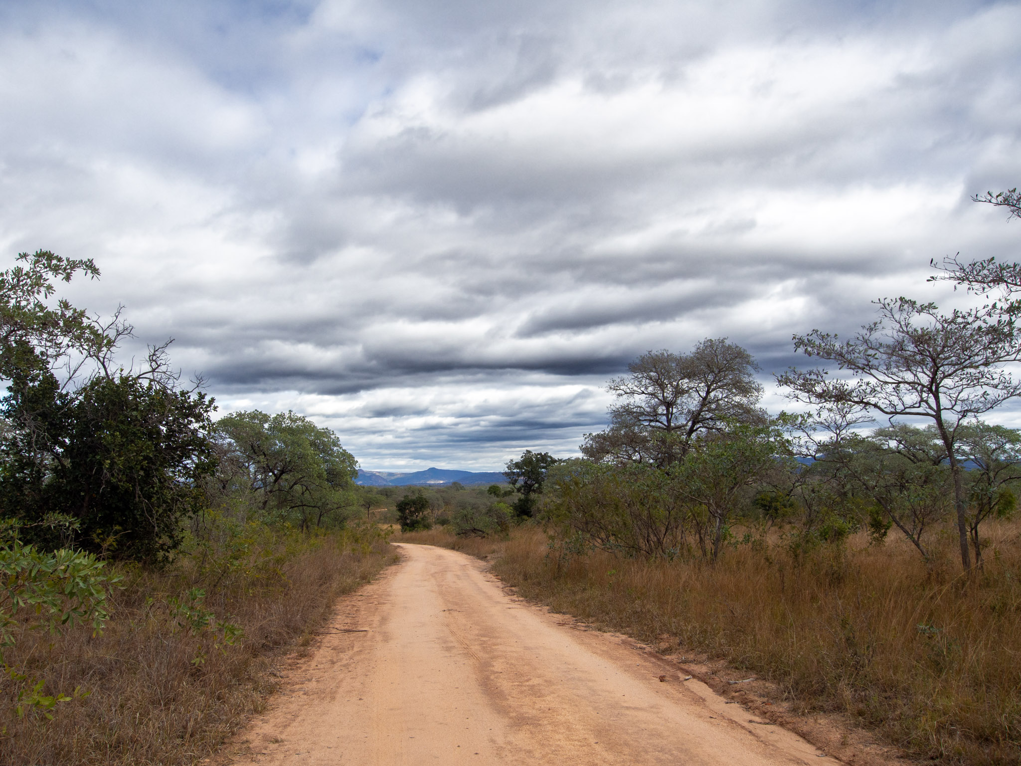 Cette fois, on rend les clés du roundavel et quitte pour de bon Pretoriuskop. On va traverser le Sud du Kruger par une piste pour rejoindre la route principale de Skukuza à Malelane. On se donne comme objectif de faire une étape à Afsaal pour le pique nique. La route est aussi magnifique que pauvre en rencontres animales. On est ébloui par la beauté des paysages mais il y a presque pas d'interactions. Par contre le ciel se charge de gros nuages noirs. On a de la chance, la pluie ne tombera pas aujourd'hui. Cela rend seulement le paysage d'autant plus dramatique.