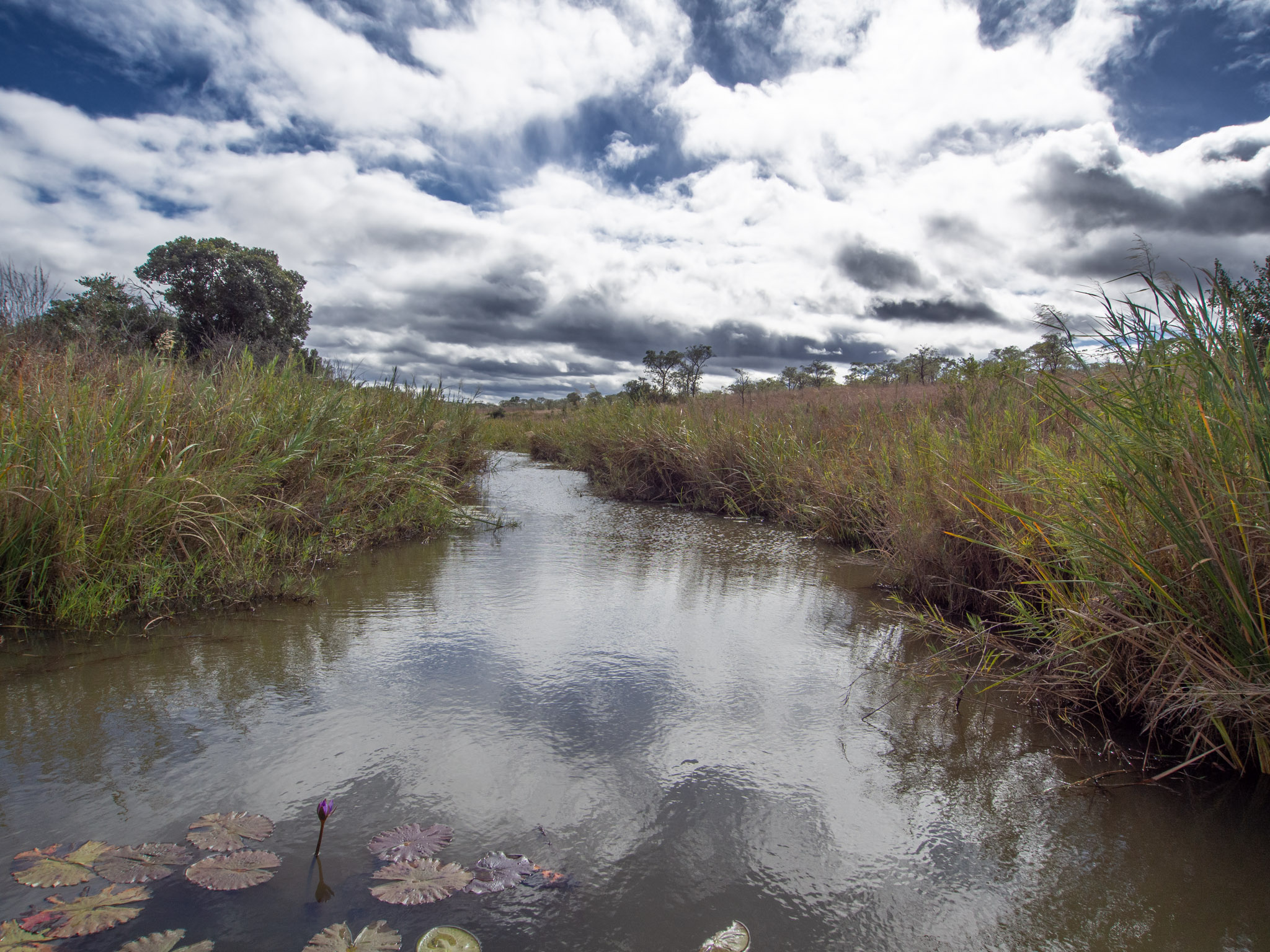 Le déluge de la veille a rempli les rivières et on est obligé de traverser des gués. Mais avec notre gros pick-up, il y a aucun problème pour les franchir. On s'installe au bord d'une rivière où passe de jolies fleurs de lotus comme en Chine, c'est très relaxant.