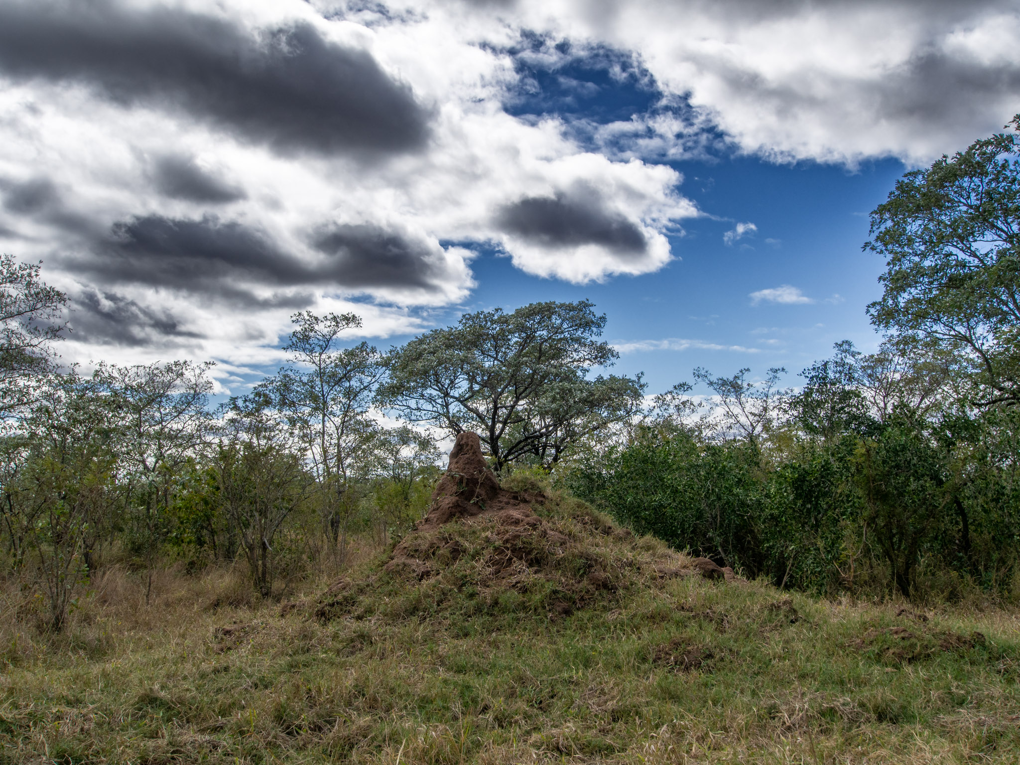 Il y a de nombreuses termitières, elles sont très grandes, comme de multiples chateaux de sables rouges qui dépasse dans la savane.
