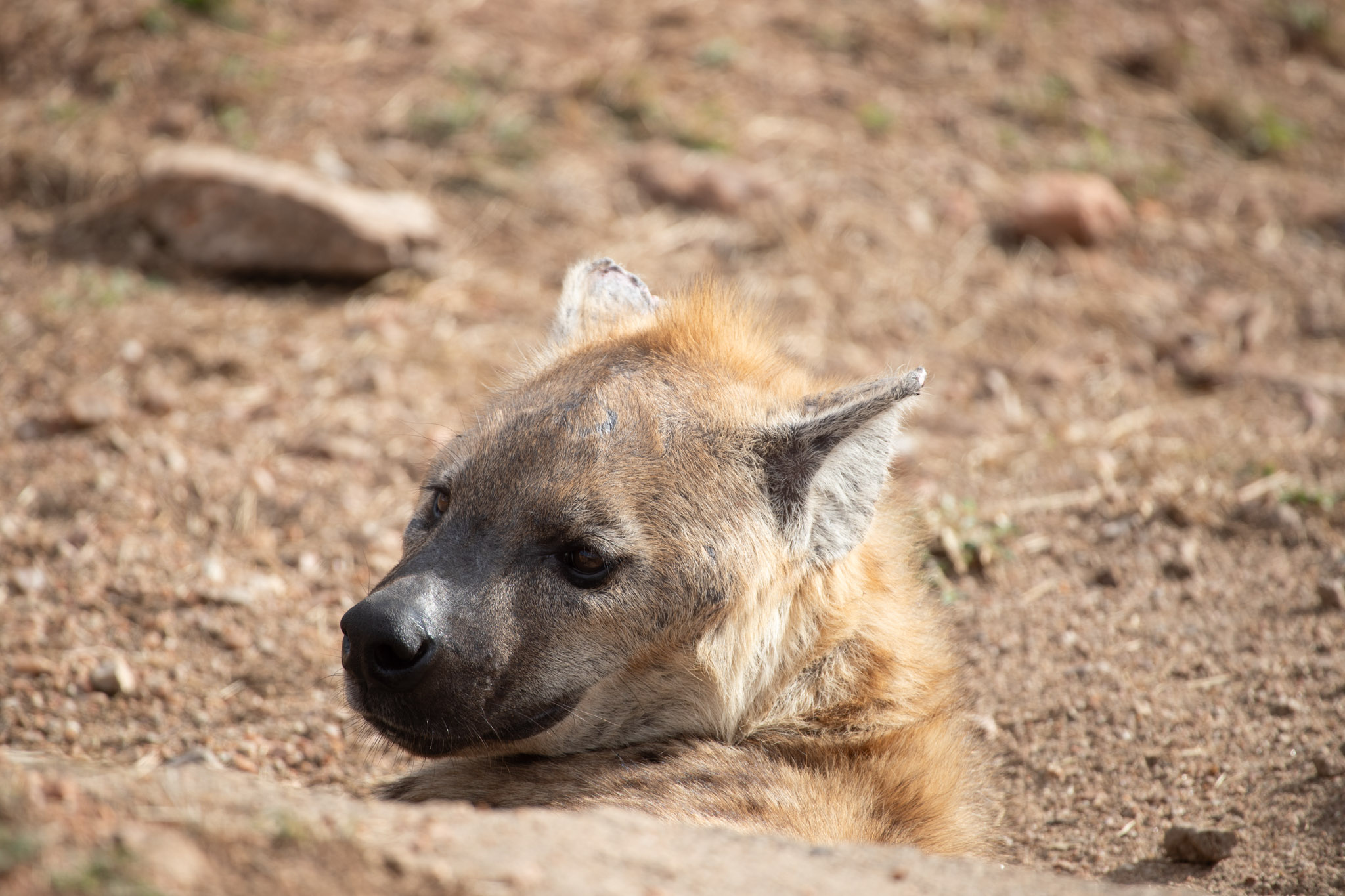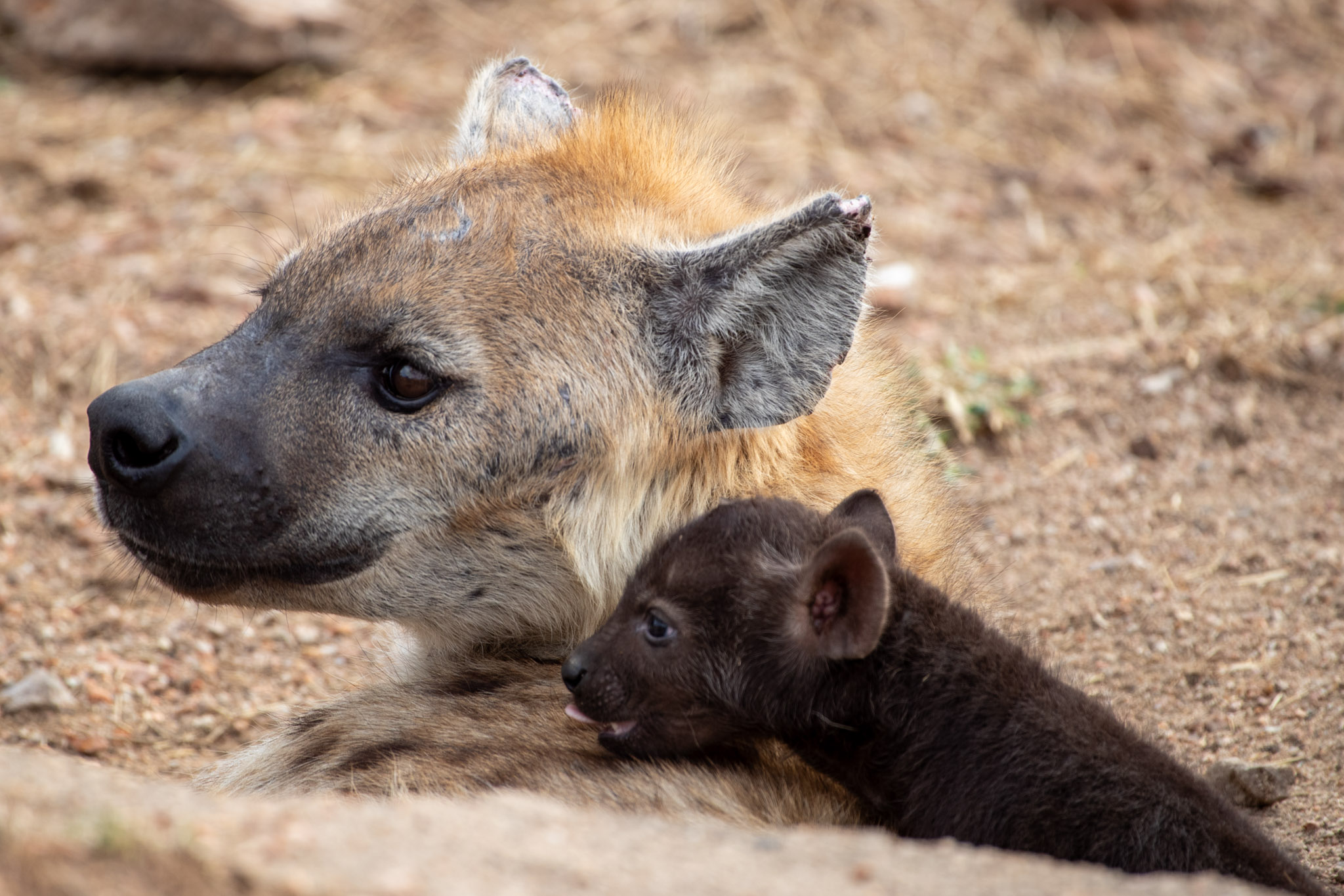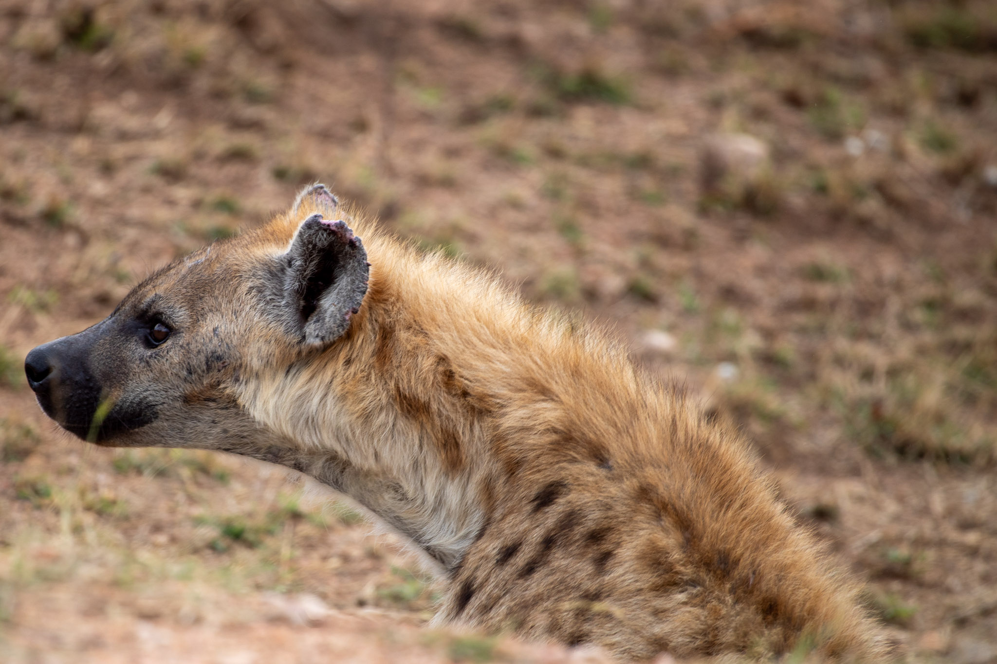 On fait une pause à Afsaal, on y mange un délicieux sandwich dans un pain traditionnel préparé directement au milieu des tables. On peut aussi consulter la carte des animaux du jour. Et on remarque que dans la zone autour, il y a eu beaucoup d'animaux intéressants, lions, hyènes, léopard, hyènes. On se prépare un itinéraire entre Afsaal qui nous permmettra de passer vers les zones où les animaux ont déjà été vus. Quelques kilomètres vers le Sud après Afsaal, on tombe sur une hyène avec son petit juste sur le bord de la route. Il n'y a pas beaucoup de voitures, quelle chance, on peut se garer un moment juste devant. On coupe le moteur. C'est tellement mignon.