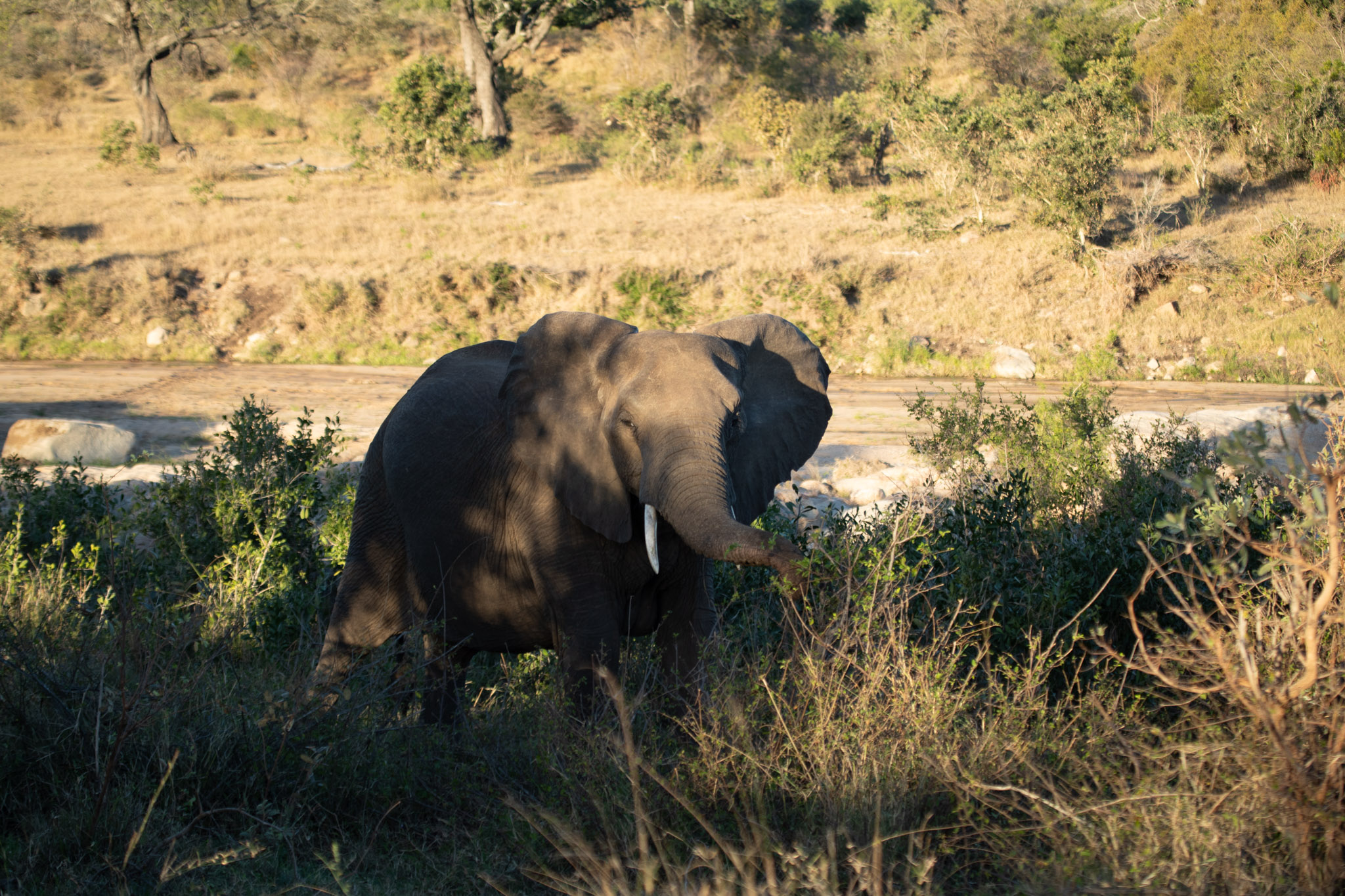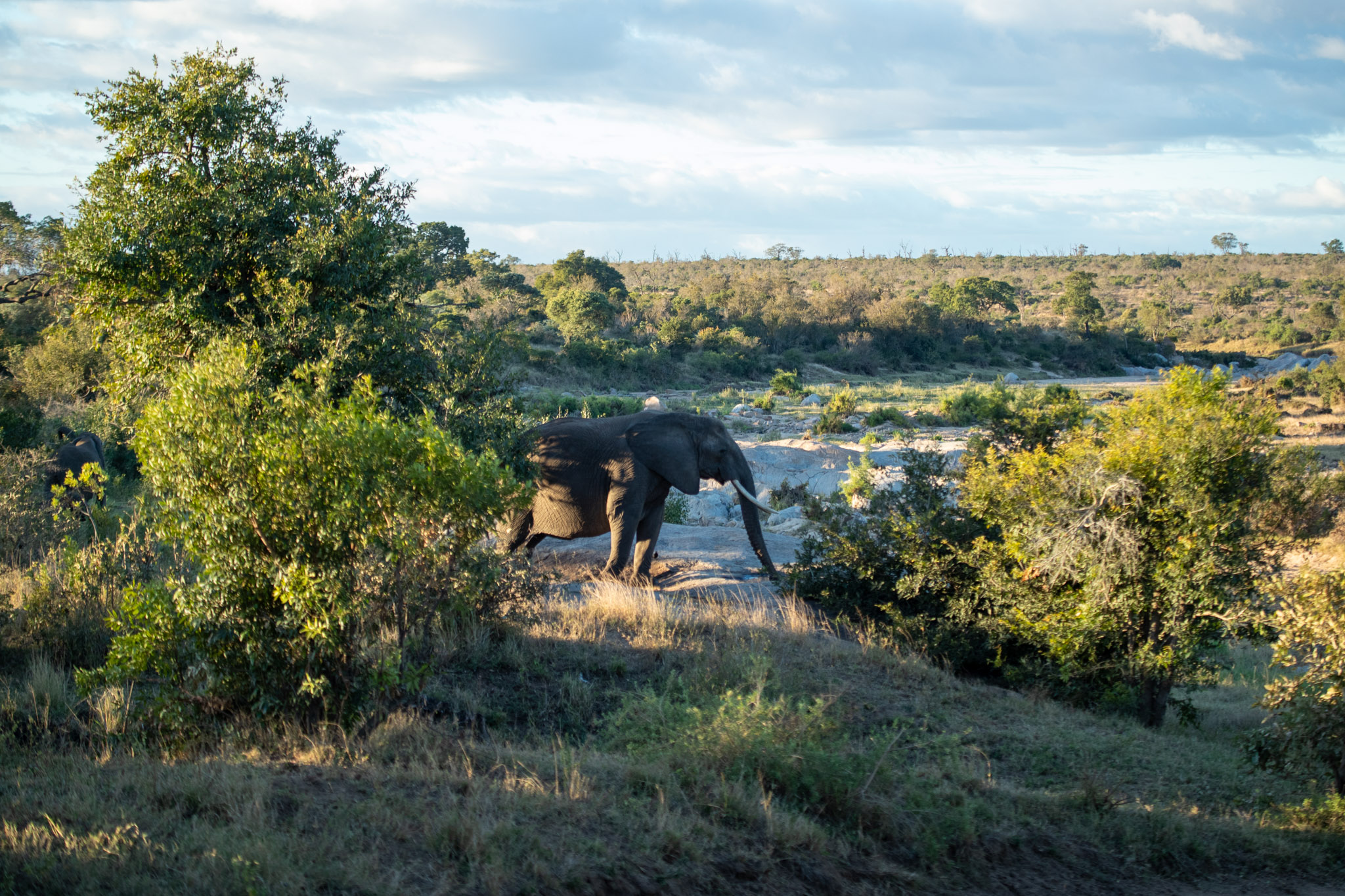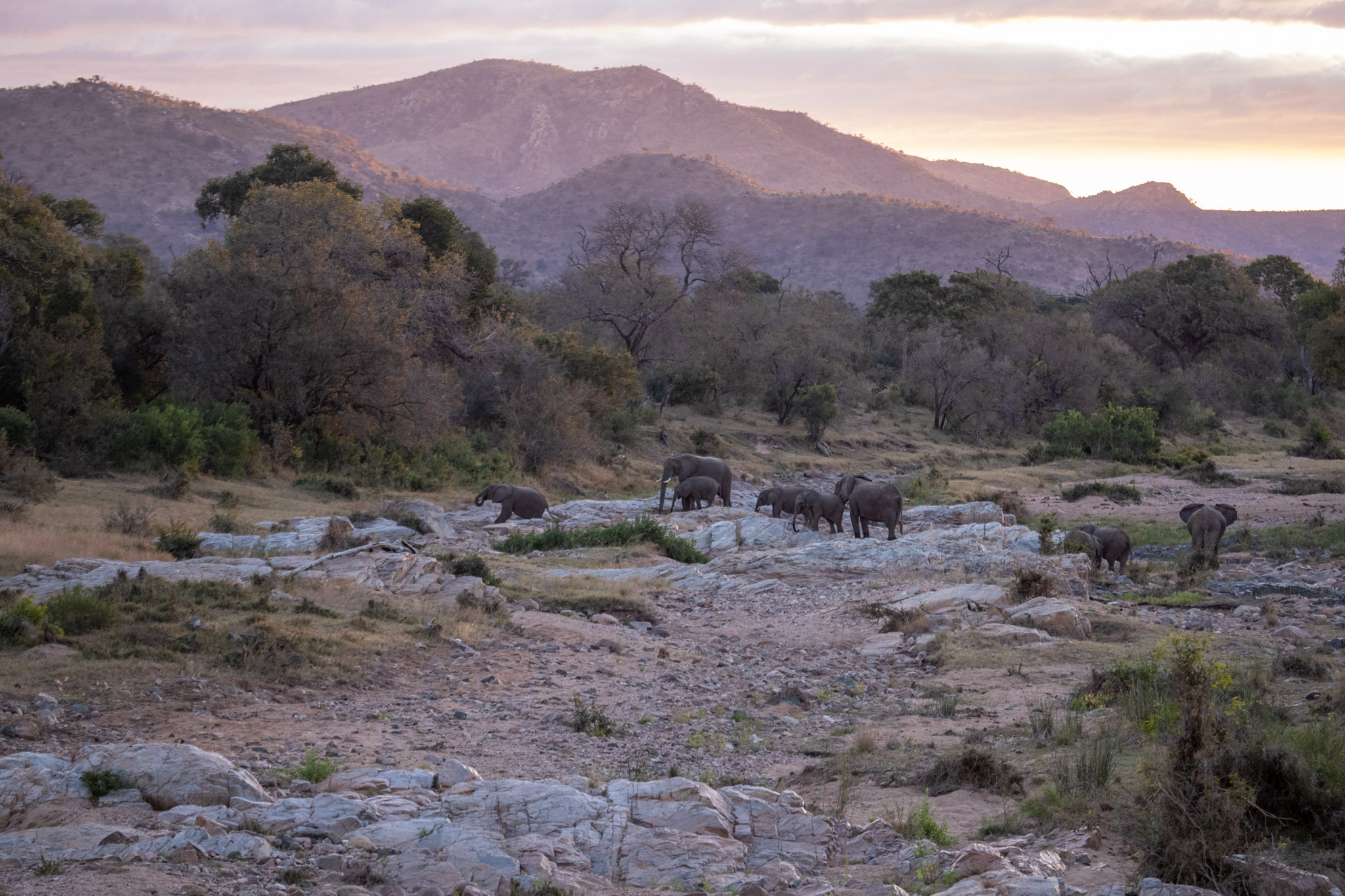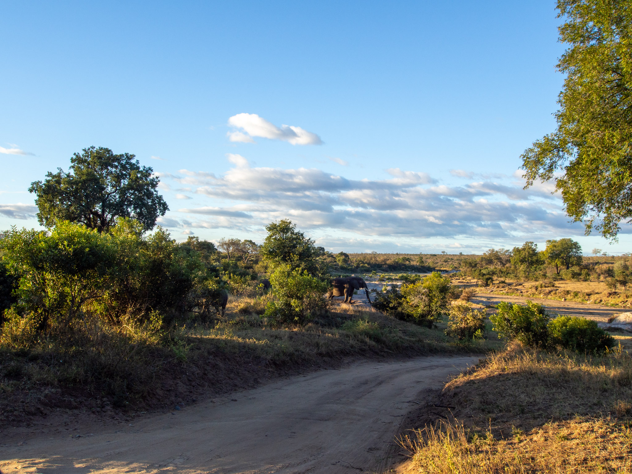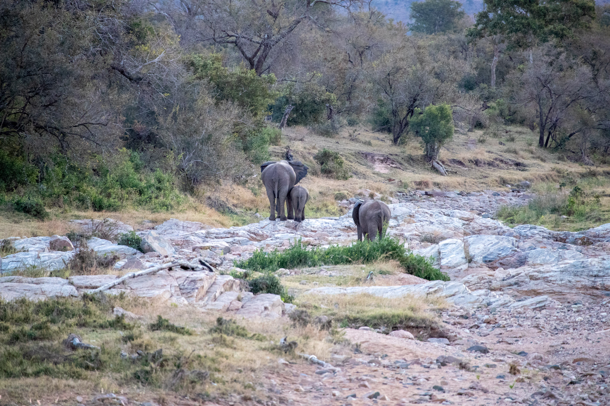 L’heure tourne, le soleil est déjà très bas. On doit finir le loop pour rejoindre notre camp de Berg en Dal avant 17:30, on a passé beaucoup de temps avec les éléphants, c’était tellement mignon avec les petits autour de leur mère.