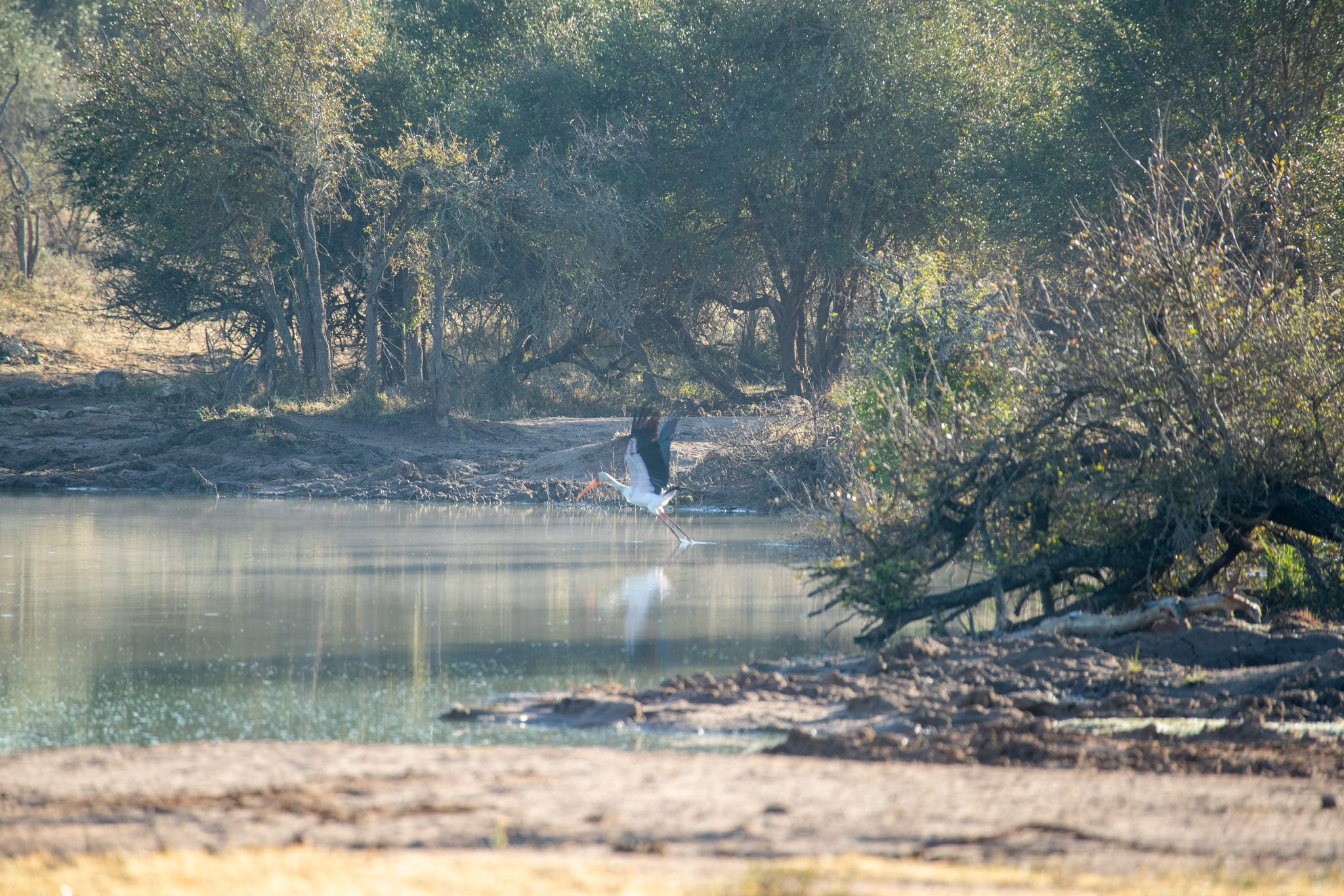 Ce matin nous laissons la voiture sur le parking, quel plaisir de ne pas avoir à conduire après toutes ces journées au volant. Voyager en safari en Afrique du Sud donne la liberté de visiter les parcs soit même sans guide, c’est un énorme avantage et une liberté quasiment inédite sur le continent, par contre cela fait passer des heures et des heures à conduire sur des routes et des pistes, à garder l’attention, changer les vitesses, tout en regardant si il n’y a pas d’animaux. C’est le revers de la liberté. Alors aujourd’hui on se laisse conduire, et la réserve de Hlane se prête à merveille à ce genre de programme. Déjà le plan d’eau est en face du restaurant et il y a beaucoup d’action autour avec les animaux qui viennent s’y désaltérer.