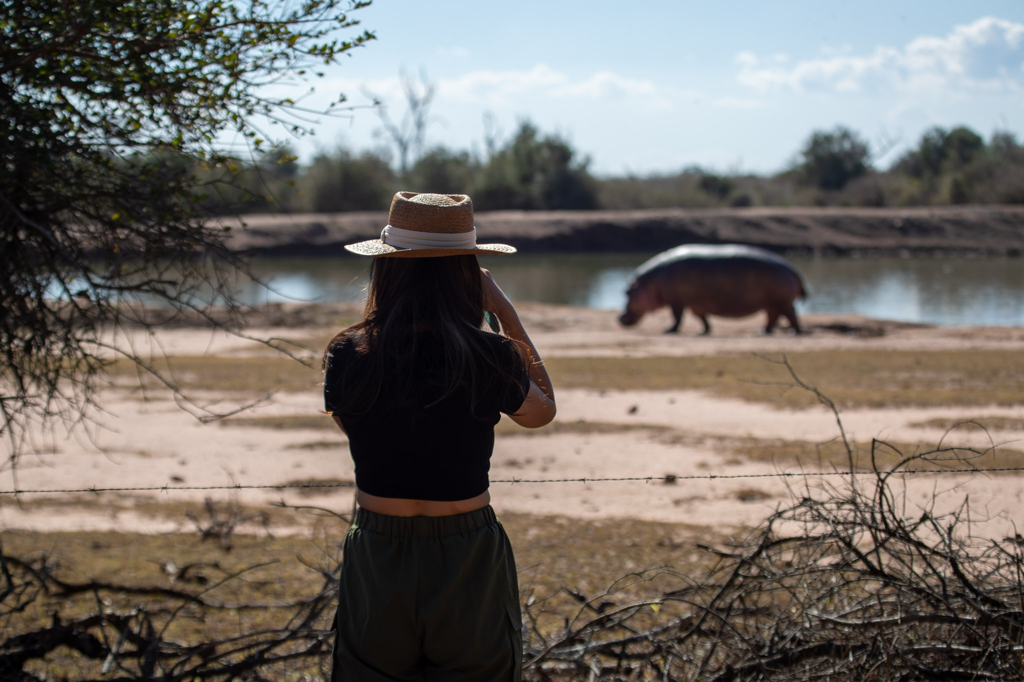 On retourne à notre sieste face aux hippopotames avant de repartir pour le bush walk de l’après-midi. Cette fois-ci nous partons avec un couple d’espagnols pas très loquace mais très gentil. C’est impressionnant de sortir à pieds dans la réserve. On ouvre le portail et on s’aventure de l’autre côté accompagné par deux guides, un qui ouvre la marche et l’autre qui la ferme.