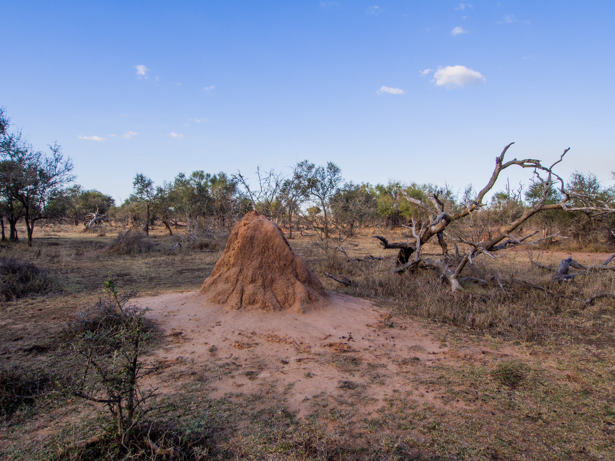 On tombe sur une belle termitière qui s’est construite en symbiose avec un arbre. Les termitières sont selon notre guide un bon moyen de se retrouver dans le bush car elles sont toutes orientées dans la même direction par rapport au soleil, au Nord.