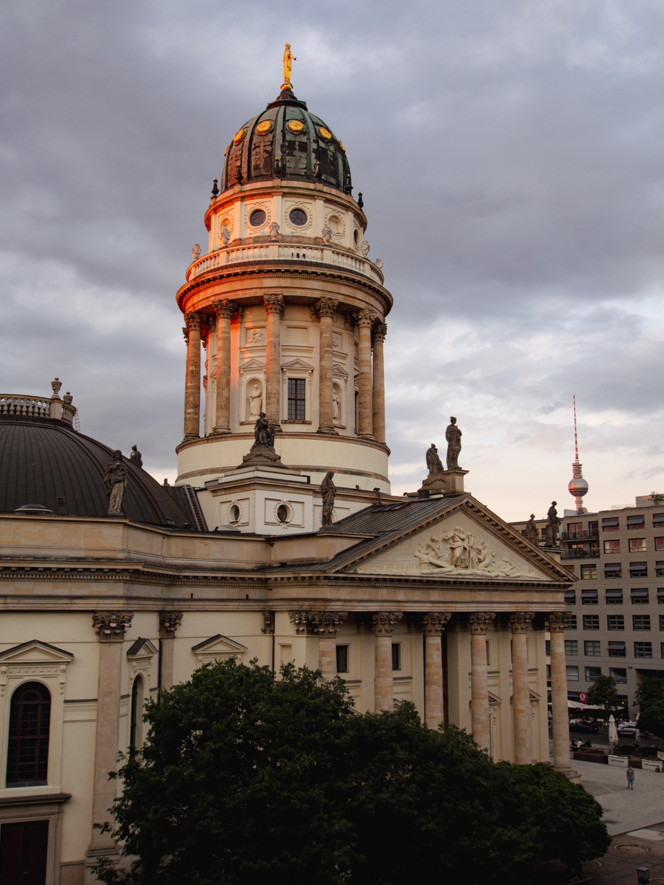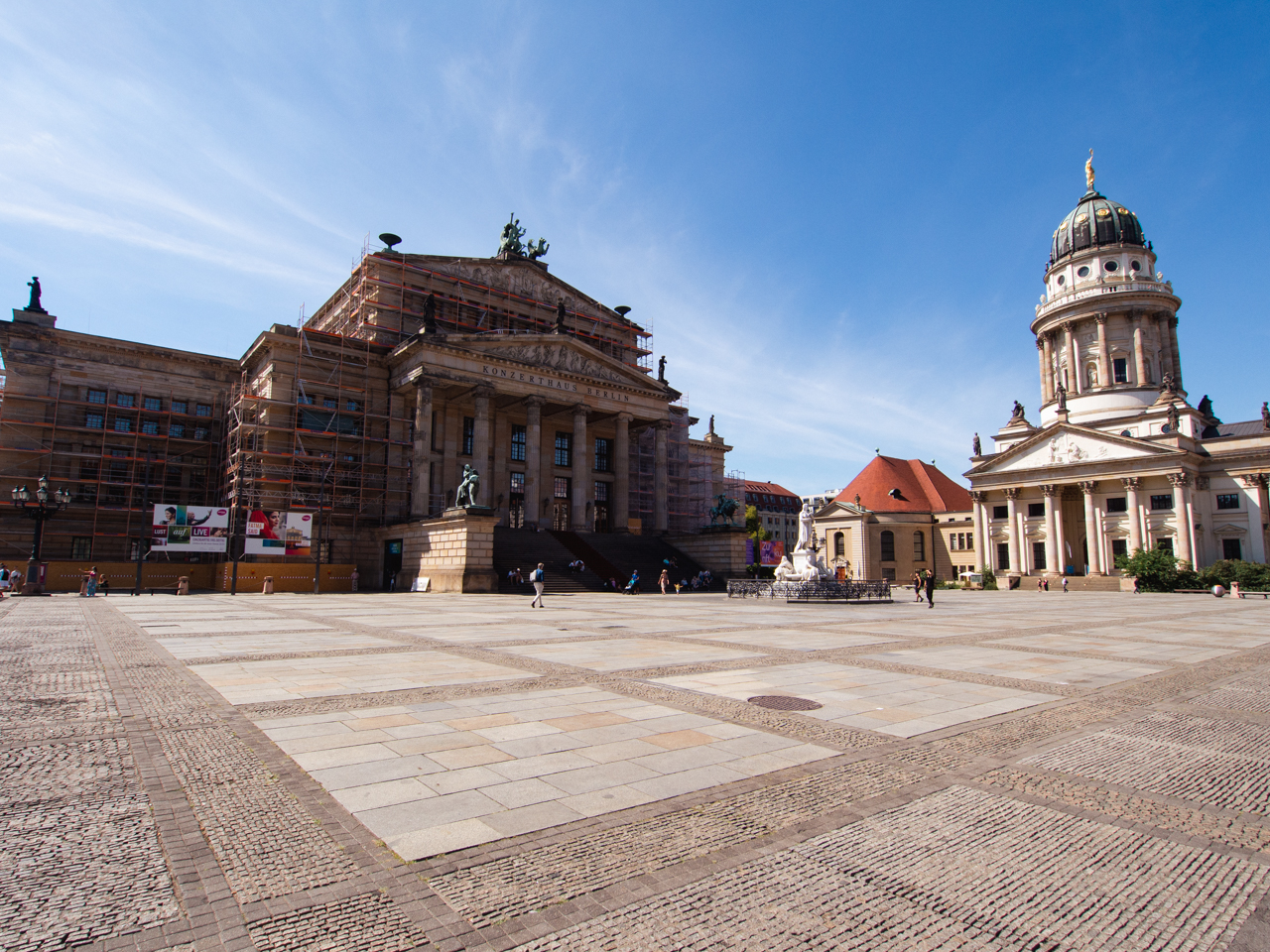 Après un bon rafraichissement à la piscine de l’hôtel, nécessaire pour combattre la canicule qui sévit sur l’Europe, on repart en prenant le Big Bus devant l’hôtel à Gendarmenmarkt. Une très belle place encadré par de magnifiques édifices, Französischer Dom au Nord, le Konzerthaus Berlin à l'Ouest, et le Neue Kirche au Sud.