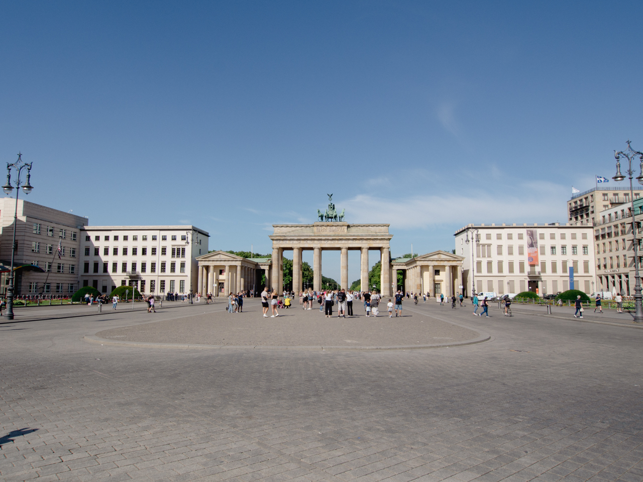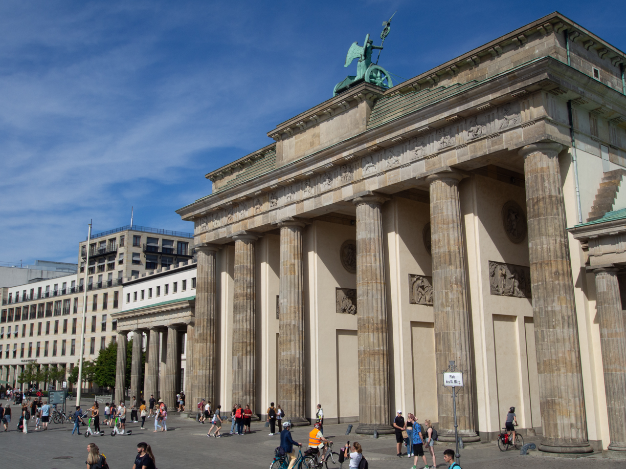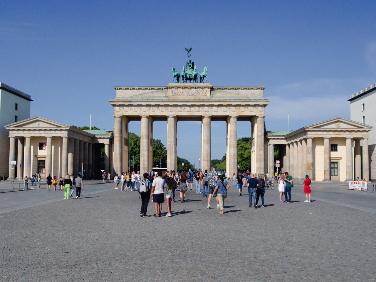 Puisque l’on est à côté de la Porte de Brandebourg, on fait un crochet pour la découvrir avec une meilleure lumière, de l’autre côté de l’avenue. Il y a un peu plus de monde ce matin.