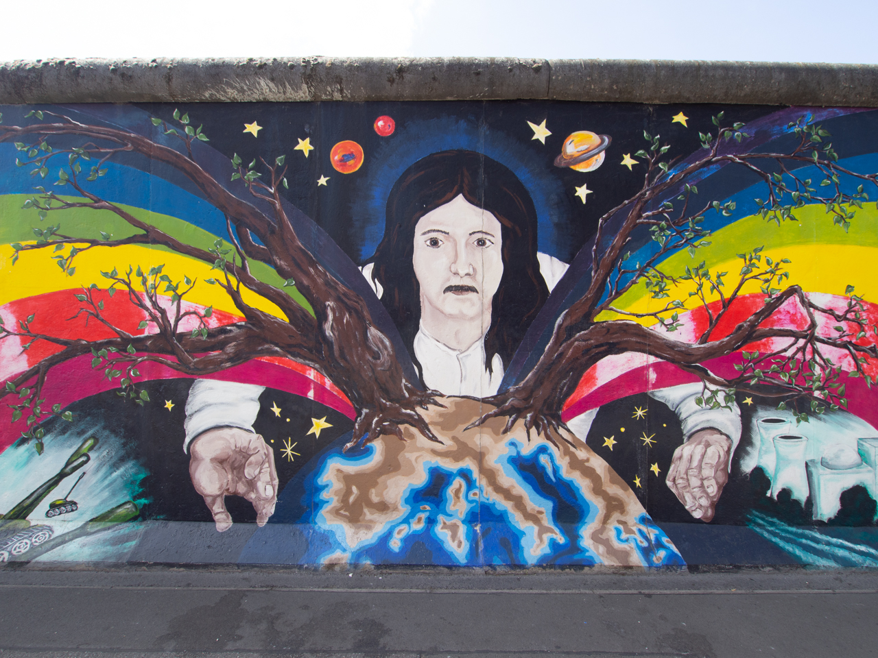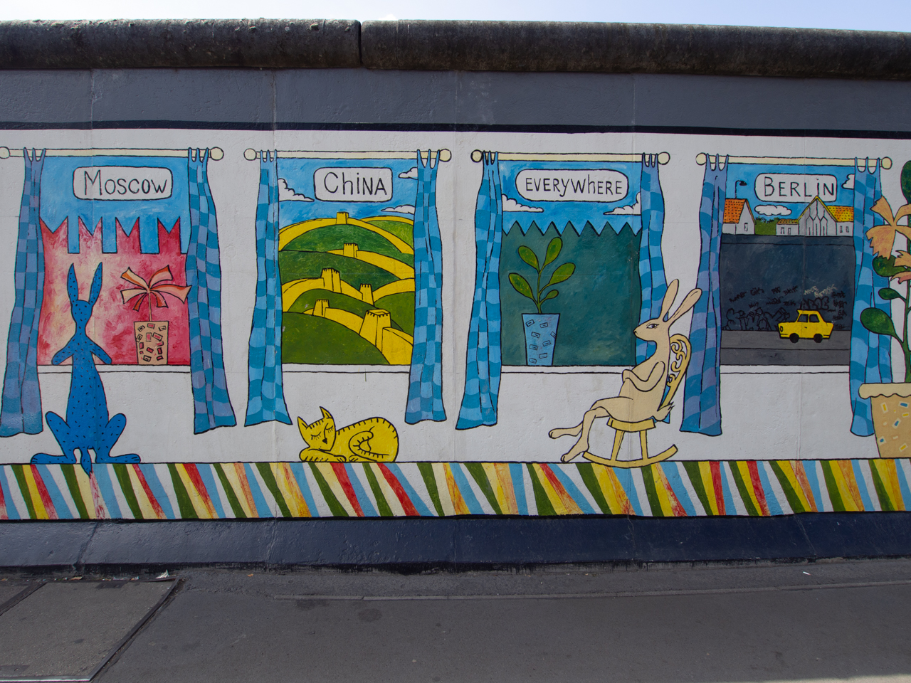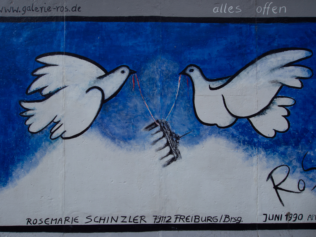 Il y a des fresques sur plus d’un kilomètre, ce mur synonyme de la division de l’Europe et de conflit sert maintenant de témoin et de symbole pacifique.