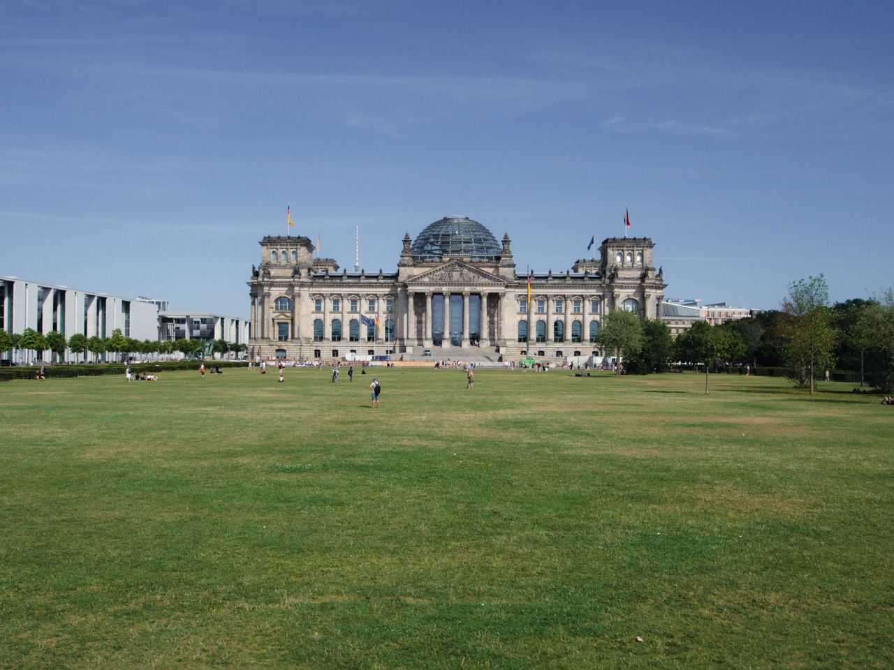 On passe devant la belle pelouse du Reichtag.