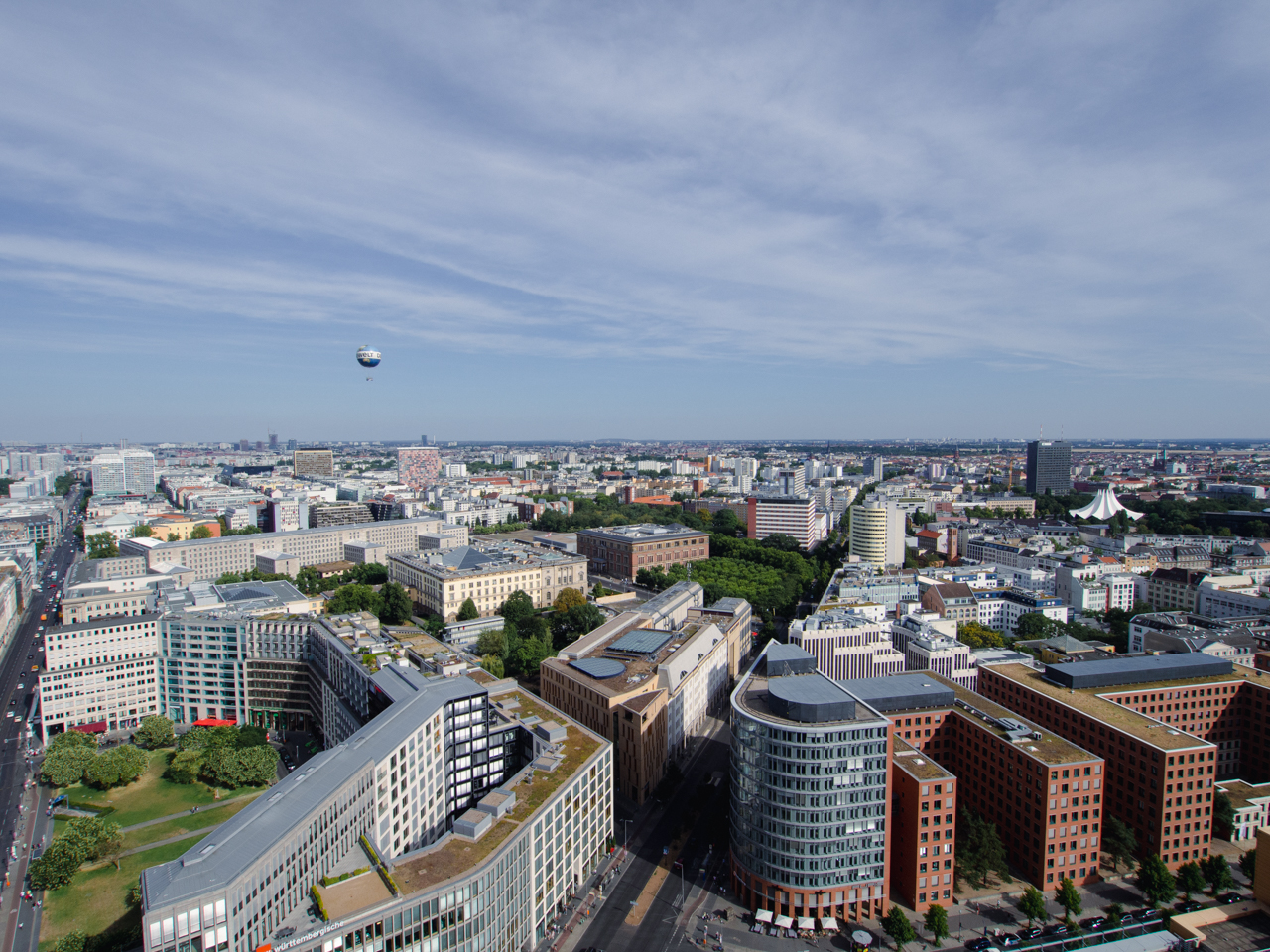 Après cette courte pause, on retourne en bus vers le centre ville pour monter en haut d’un des peu hauts bâtiments de la ville, le Panoramapunkt Berlin qui n’est pas très loin. Cet observatoire se vante d’avoir l’ascenseur le plus rapide d’Europe, et c’est vrai qu’il ne faut que quelques instants pour arriver tout en haut. La vue sur Berlin est parfaite, et la fin de journée donne une bonne lumière, dans le dos pour admirer l’étendue de cette métropole.
