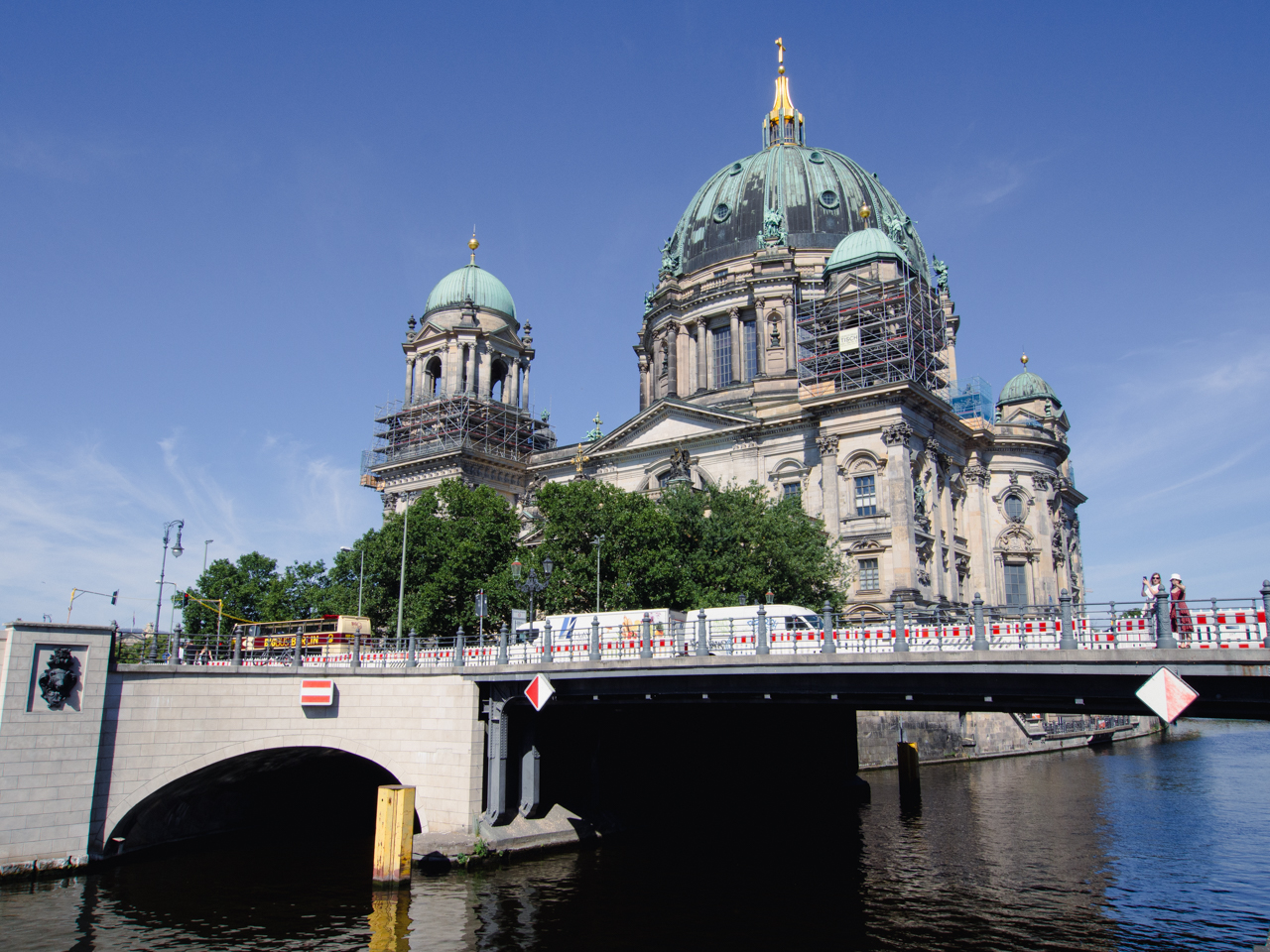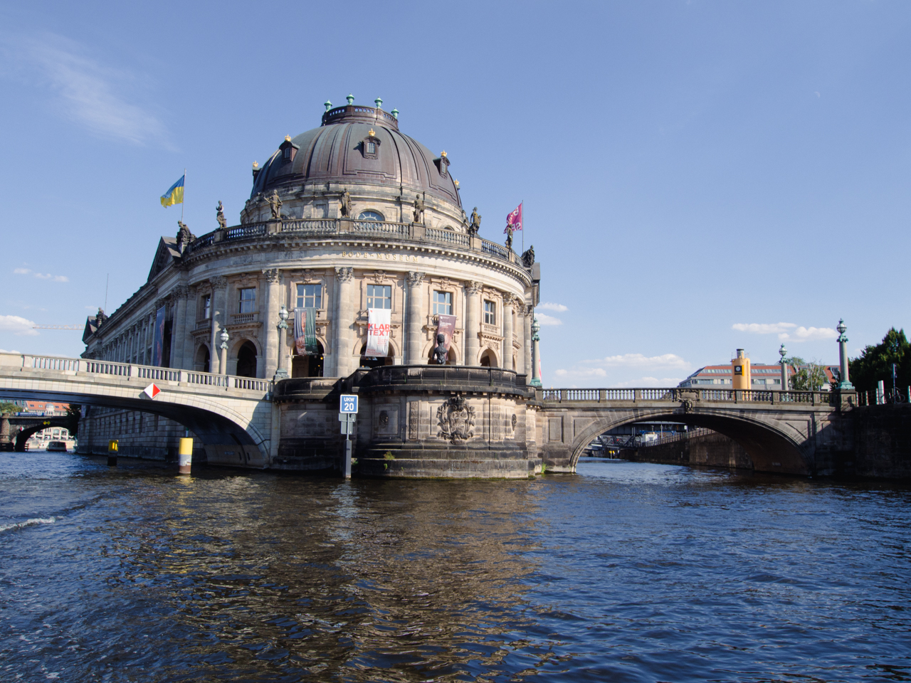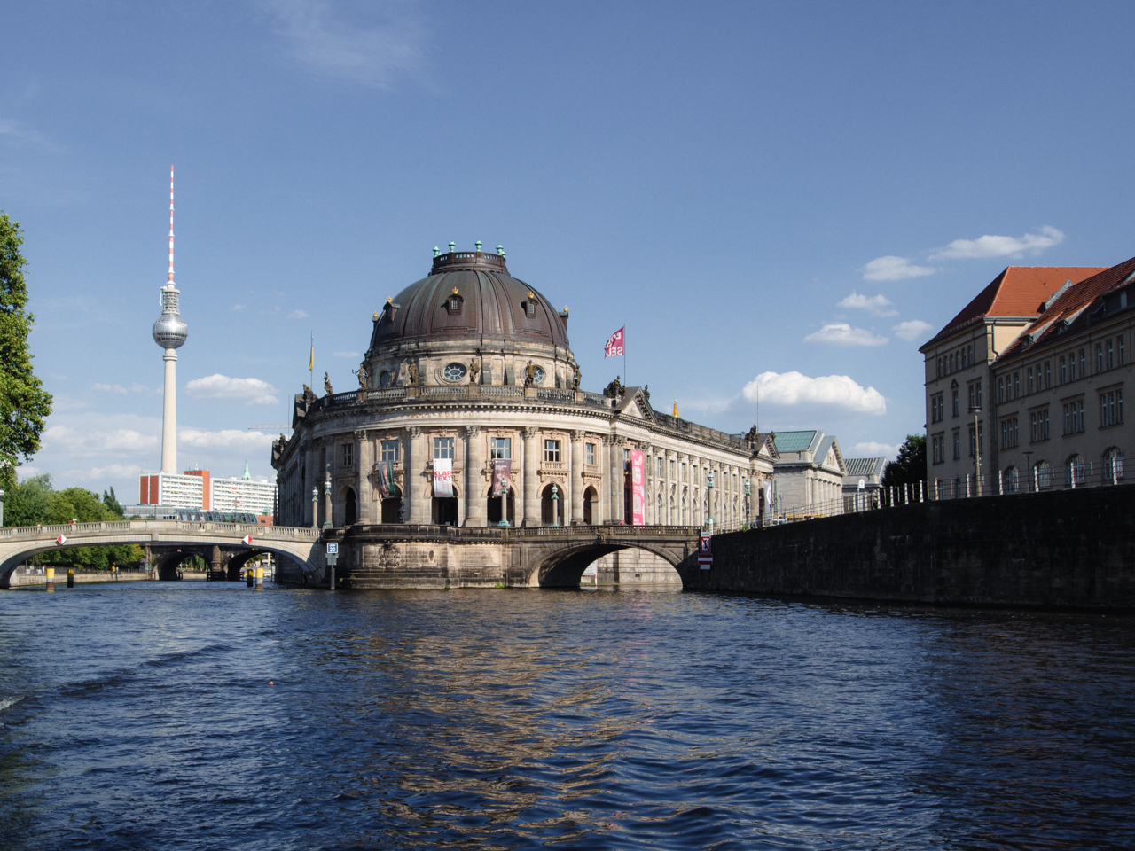 On rejoint le pont Ebertsbrücke qui enjambe la Spree et qui offre un des spots les plus beaux de Berlin, avec le musée et la tour de Berlin en fond.