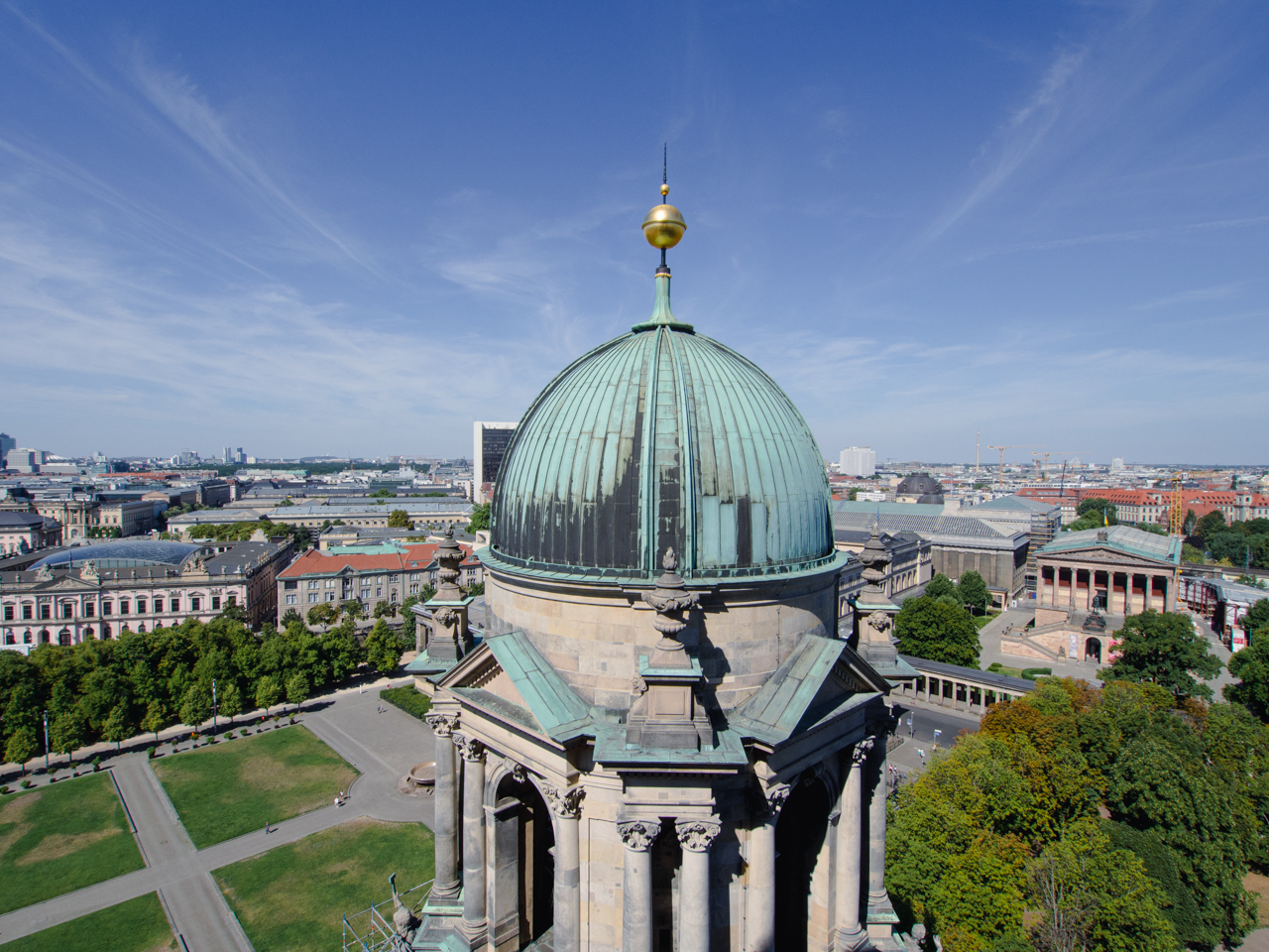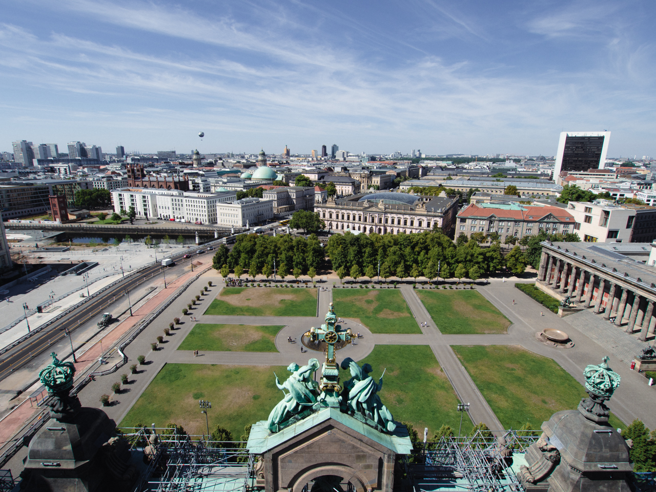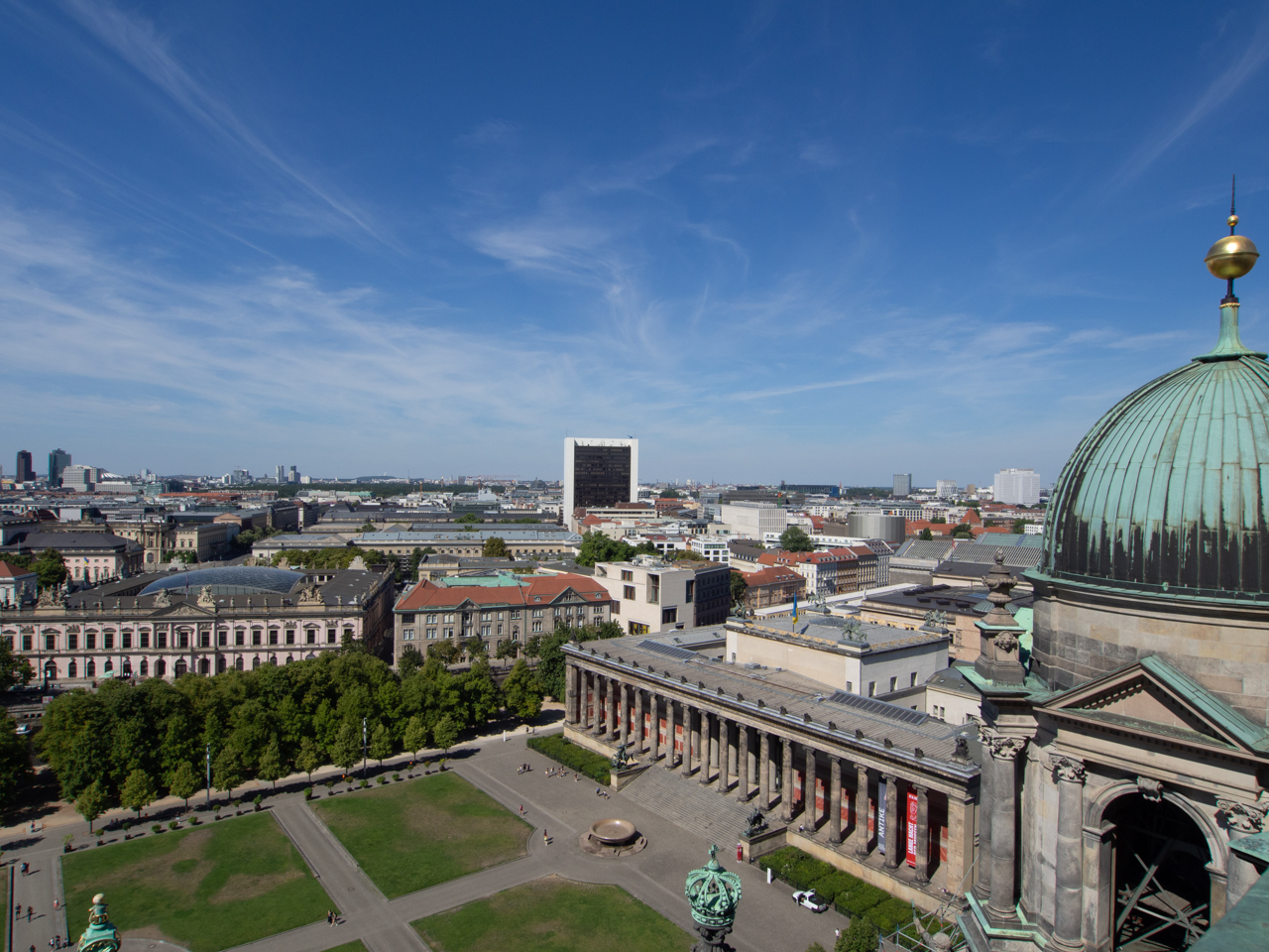 Avec le ticket on peut aussi grimper les 270 marches jusqu’à une esplanade qui fait le tour de la coupole. On a une vue sur toute la ville, sur les plus beaux bâtiments de l’île aux musées avec les grandes statues qui semblent elles aussi contempler le paysage.
