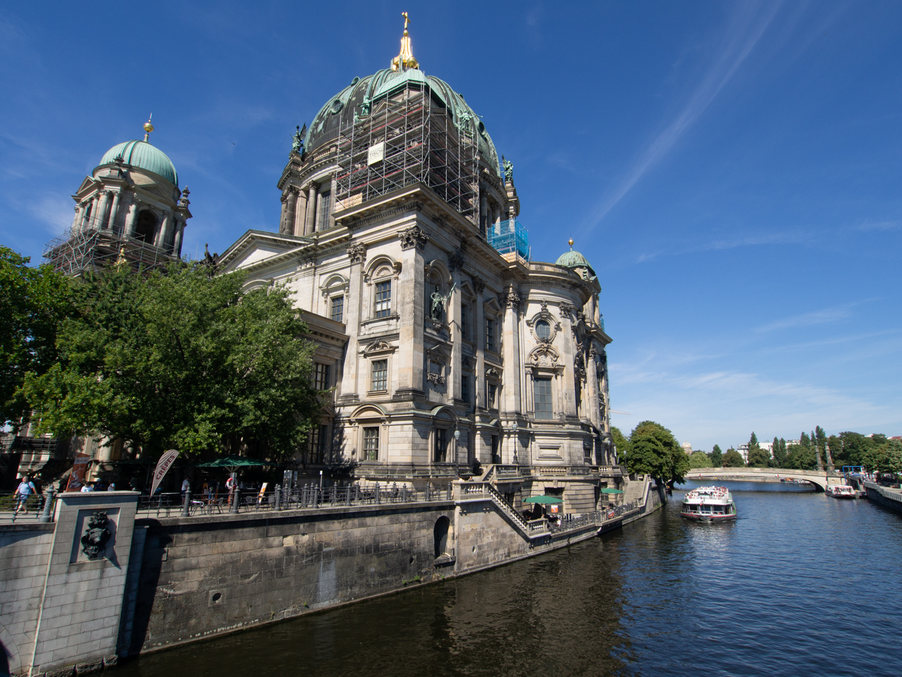On revient vers le point de départ face au Berliner Dom. La ballade est agréable mais il fait très chaud sur le bateau, heureusement il y a des parapluies en libre service que l’on a utilisé comme parasol. A proximité, on peut découvrir une spécialité culinaire allemande qui a rayonné dans le monde entier, le Kebab. Mais pas n’importe quel Kebab, on va chez Mustafa Demir's Gemüse Kebap qui est réputé comme le meilleur Kebab de Berlin. On avait essayé d’aller au restaurant original au Sud de la ville mais la file d’attente était tellement longue, des gens nous avait dit qu’ils ont patienté deux heures avant de manger leur kebab, de 14h à 16h, même pas à l’heure du déjeuner en plus… Non on va plutôt voir une des succursale de ce kebab et là, bonne surprise, il n’y a pas beaucoup de monde, c’est notre chance de gouter à ce « monument » de la gastronomie allemande moderne. Effectivement, rien à voir avec le kebab français. Beaucoup plus d’ingrédients, de la fêta sur la viande, un très bon gout, nous validons tous la recette. On ne reviendra pas quand même car on ne va pas abuser et s’exploser le ventre une seconde fois mais ça valait le coup de gouter au moins une fois.