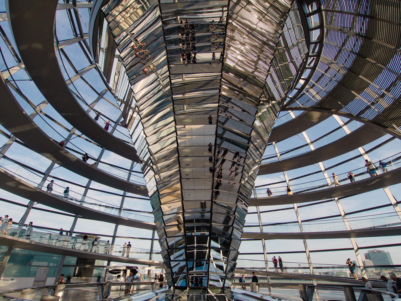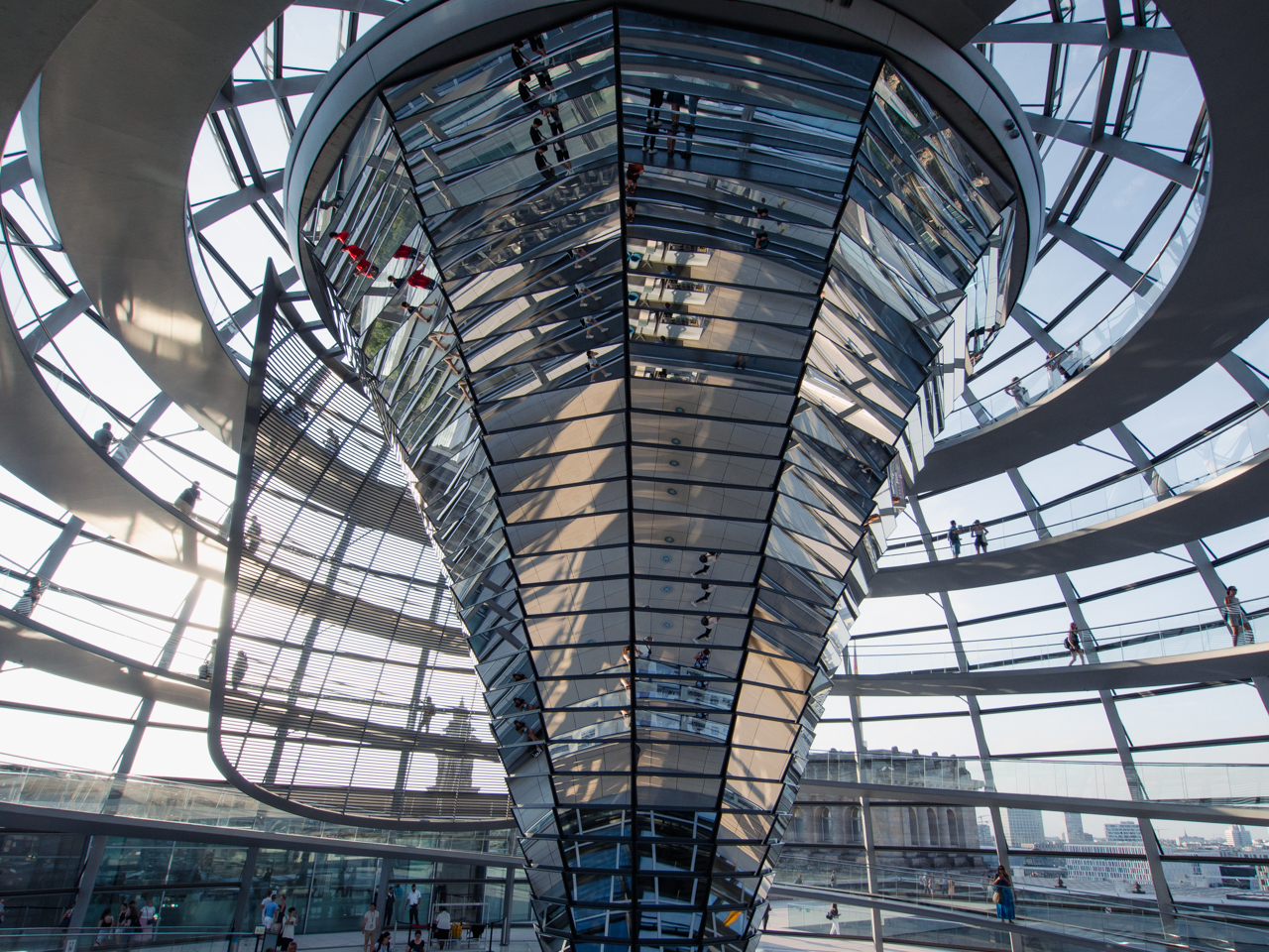 Le design de la coupole est stupéfiant, l'usage du verre et des miroirs voulant signifier la transparence de la démocratie en Allemagne.