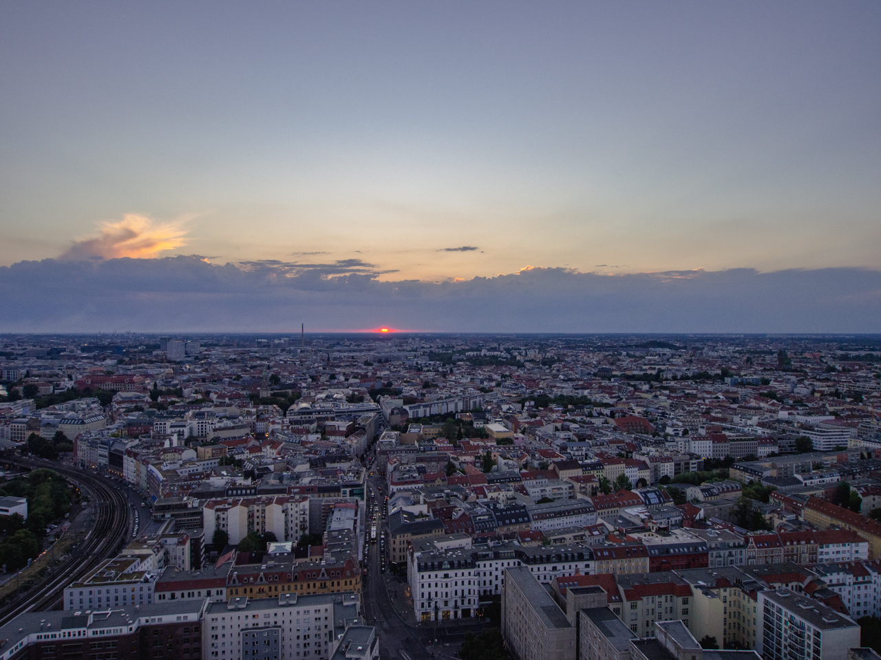 Enfin, pour cette dernière soirée à Berlin, on continue de chasser les plus beaux spots de Berlin/ nous montons tout en haut de l’hôtel Inn Park, qui a un des meilleurs observatoires de la ville. En fait, c’est depuis cet observatoire que l’on a cette fameuse vue sur la ville avec la tour TV en premier plan.