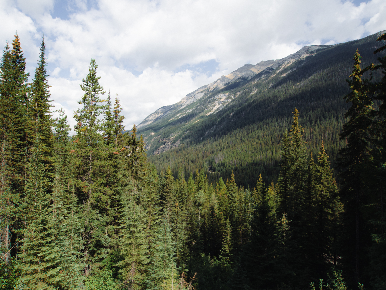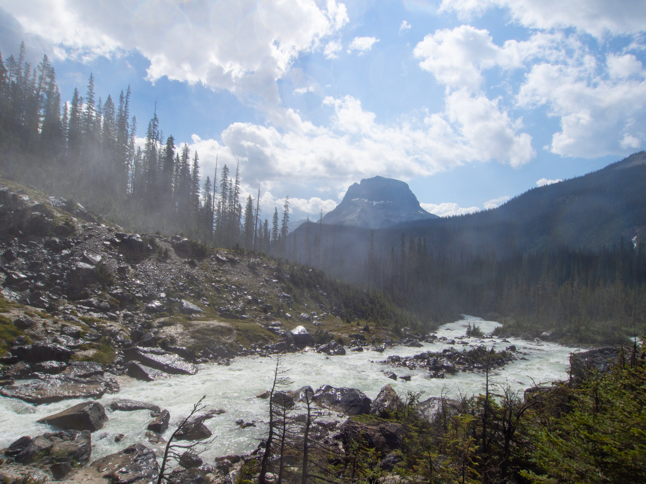 Après cette petite pause historique, on sort de la voie rapide pour remonter une magnifique vallée vierge de toute habitation humaine. On est à présent dans le parc naturel national de Yoho, dans la province de la Colombie Britannique. On remonte un torrent vers sa source.