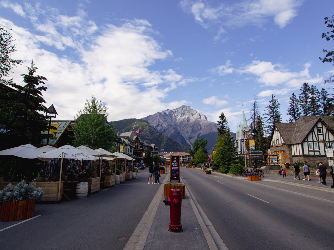 Ca y est la tempête est passée, on se promène dans Banff pendant que le linge est dans la machine. Le centre ville est très vivant, avec de nombreux commerces et bars. Il y a beaucoup plus de vie qu'à Jasper qui il est vrai fait très calme à côté de Banff. Je pense que Banff doit être une destination plus accessible depuis la grande ville de Calgary et c'est donc une destination loisirs pour le week-end plutôt facile. On a vraiment apprécié les balades dans cette ville.