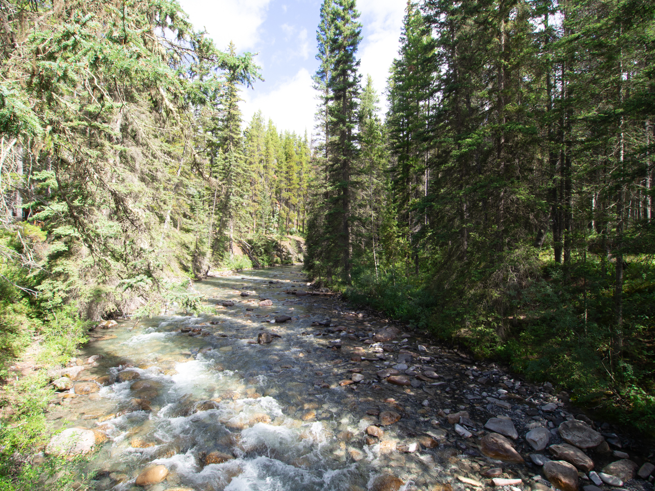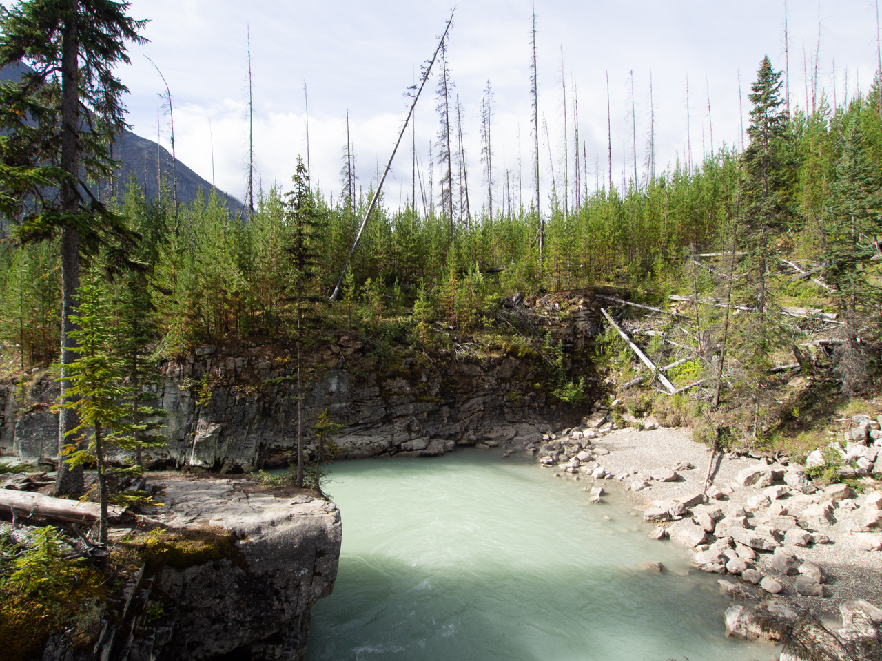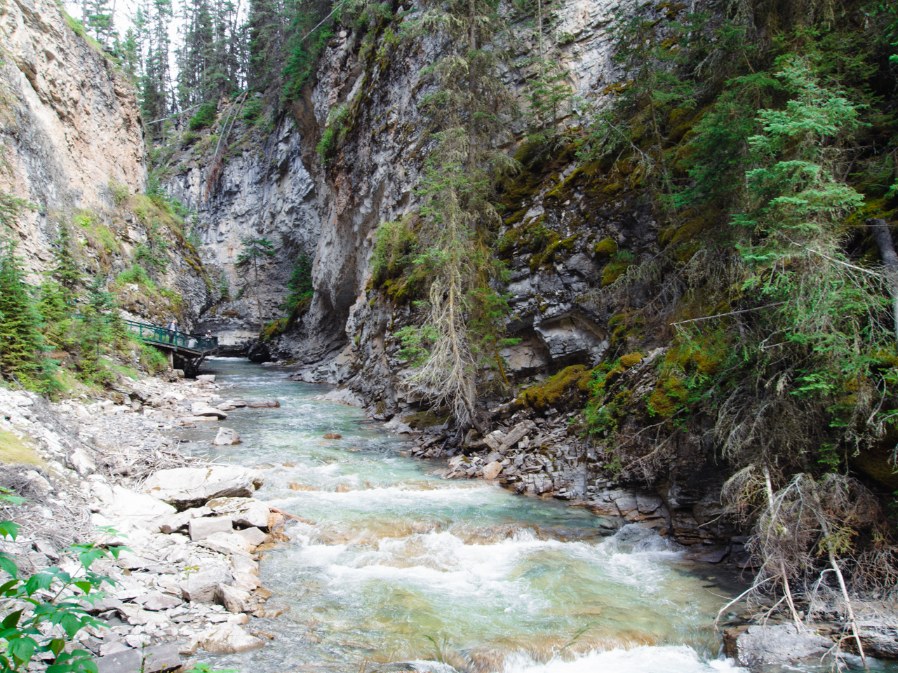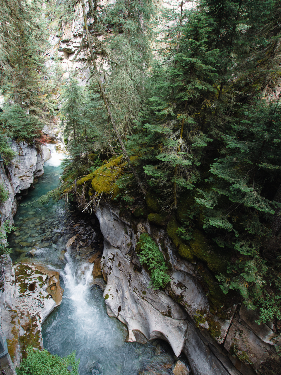 Nous continuons notre découverte de la région autour de Banff, il y a de superbes paysages tout autour de la ville et nous passons du temps à parcourir les chemins à la recherche - infructueuse malheureusement - d'animaux sauvages. Au moins, cette recherche insistante nous amène à de beaux points de vue qui méritent quand même un arrêt. Puis nous retournons en Colombie Britannique pour découvrir le Marble canyon, à moins d'une heure de route. Le très joli canyon qui se fraye un chemin dans un étroit boyau de roche au milieu d'une nature sauvage préservée. Une très belle découverte qui appartient à un autre parc naturel national, le parc de Kootenay, le quatrième et dernier parc national que l'on visitera lors de ce voyage. Sur la route du retour vers Calgary, nous faisons un dernière arrêt et visitons le canyon Johnston, bien plus connu celui-ci.
