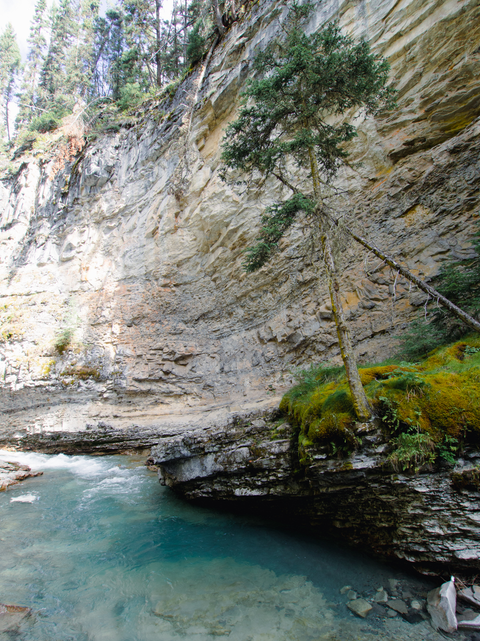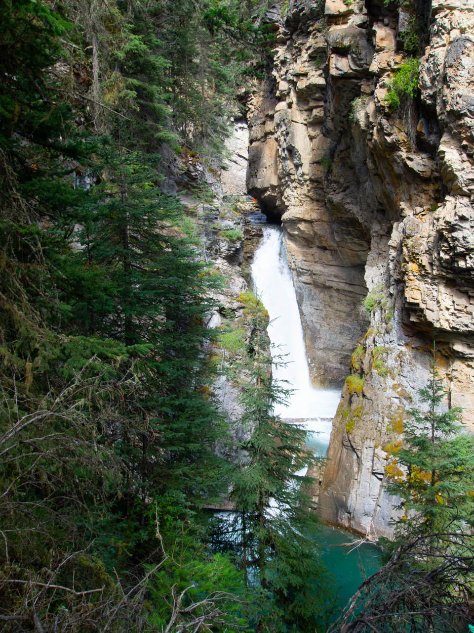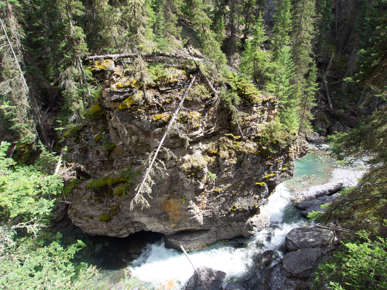 C'est une petite étape un peu plus confidentielle, on ne croisera pas beaucoup de marcheurs sur les chemins de Marble Canyon. Pourtant, l'eau était aujourd'hui très laiteuse, parfois elle est d'un bleu électrique et cela tranche encore plus avec la texture de la roche. Pour la suite de la journée, on retourne à Banff, car c'est sur la route de Calgary, notre étape du soir. On fait un arrêt à un autre canyon, bien plus connu celui-ci, probablement le canyon le plus visité de la région, le Johnston Canyon. Il y a deux immenses parkings pour accueillir tous les visiteurs du jour. Là on ressent bien plus la pression touristique qu'à Marble Canyon, mais c'est intéressant de découvrir les deux qui sont très différents.