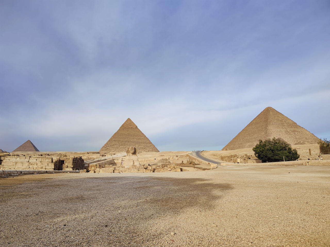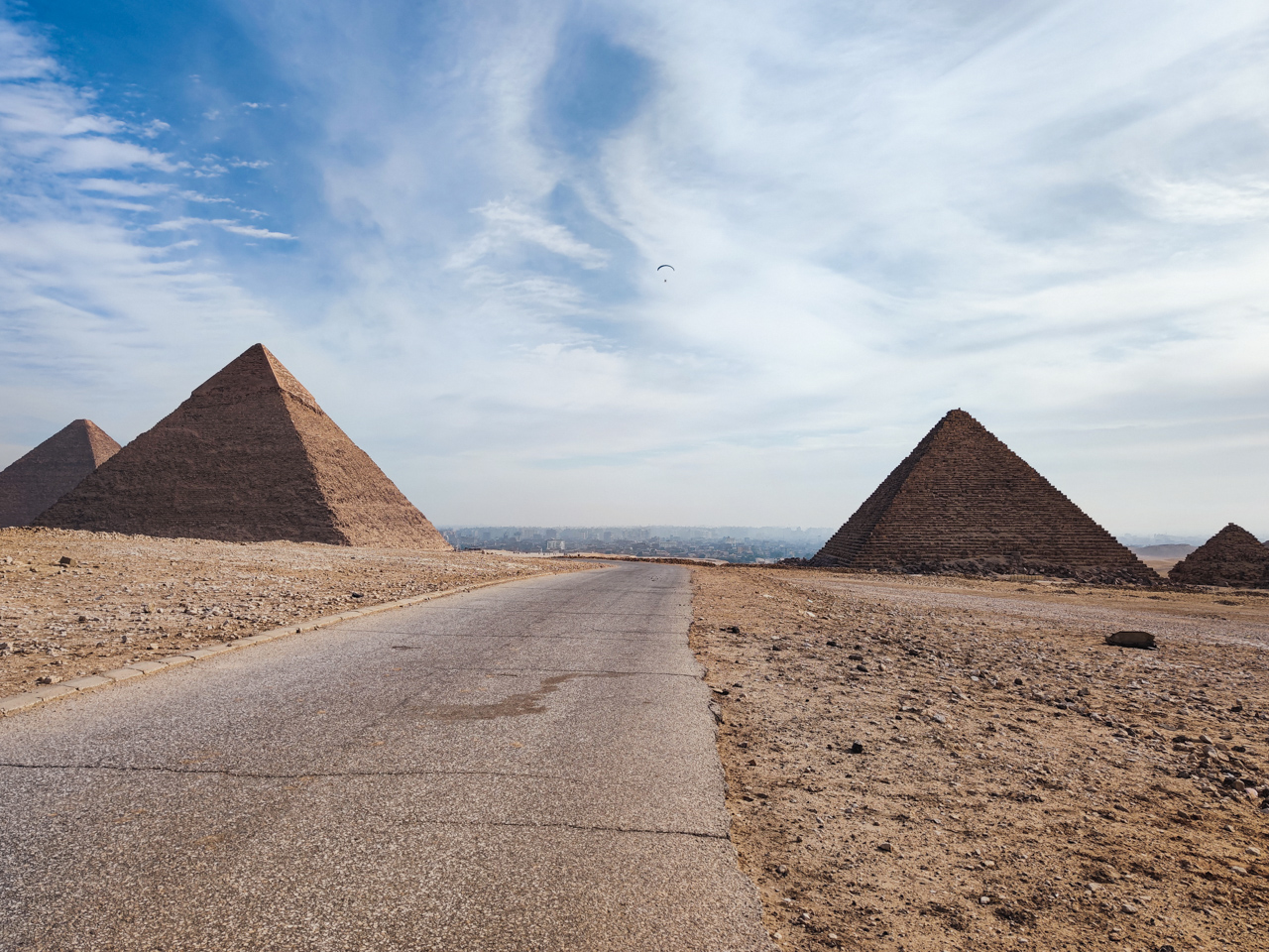 On longe les pyramides sur la route qui fait le tour du site, l’absence de touristes ici nous donne un sentiment incroyable de plénitude face à ces géants de pierre, une des 7 merveilles du monde antique, et la seule qui a résisté aux épreuves du temps.