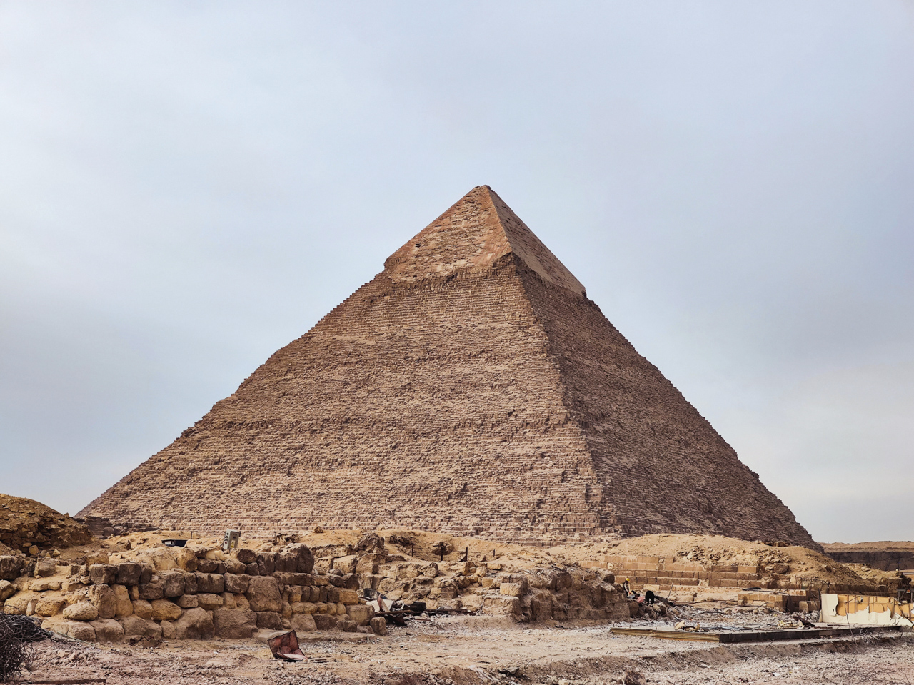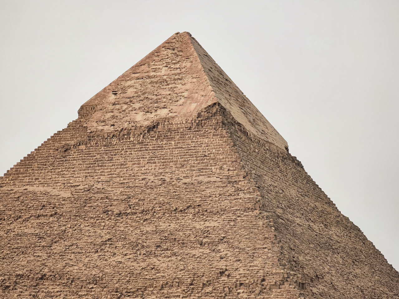 Nous allons au pied de la pyramide pour en prendre la mesure, mais c’est impossible, les blocs de pierre sont énormes, empilés avec précision les uns sur les autres dans cette structure qui a traversé les âges depuis au moins 4500 ans.