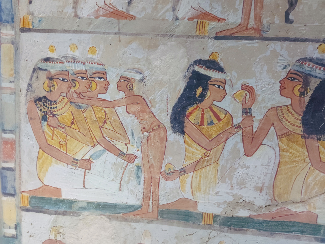 On y voit des scènes plus communes comme la pêche dans le fleuve, des scènes d’offrande, le travail dans les champs ou enfin des mères de famille qui s’occupent de leur progéniture.