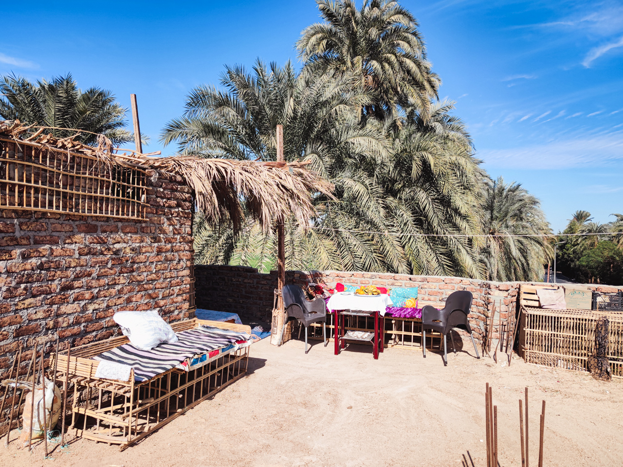 Ahmed nous propose de venir manger chez lui et de rencontrer sa famille. Il faut dire que nous avons beaucoup discuté et échangé et c’est un vrai plaisir, nous acceptons et nous nous rendons chez lui, pas très loin des colosses de Memnon. Nous passons un très bon moment avec lui et sa famille sur la terrasse tout en haut de sa maison.