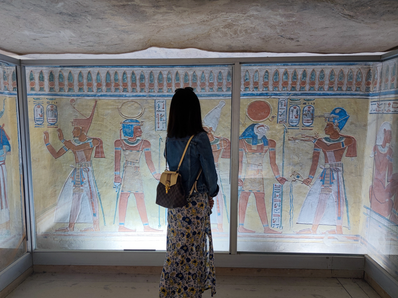 Nous retournons à Louxor, une ville coup de coeur lors de notre dernier voyage en Egypte. On voulait absolument revenir pour continuer la découverte des différentes splendeurs dans cette ville à l'ambiance si particulière. Cette fois, on prend une journée entière pour découvrir les différentes vallées funéraires de la rive Ouest, nous avions été éblouis par les fresques qui recouvraient les murs des cavités, tellement de détails et de couleurs que l'on voulait compléter nos visites. On commence par la vallée des Reines, puis la vallée des artisans et enfin vu que l'on a encore un peu de temps, on retourne même à la vallée des rois.