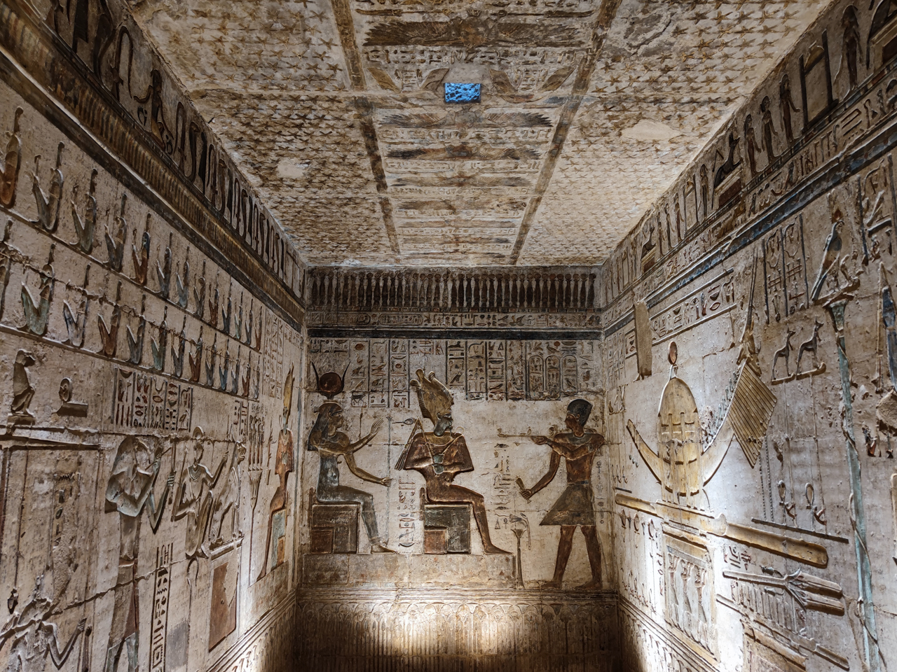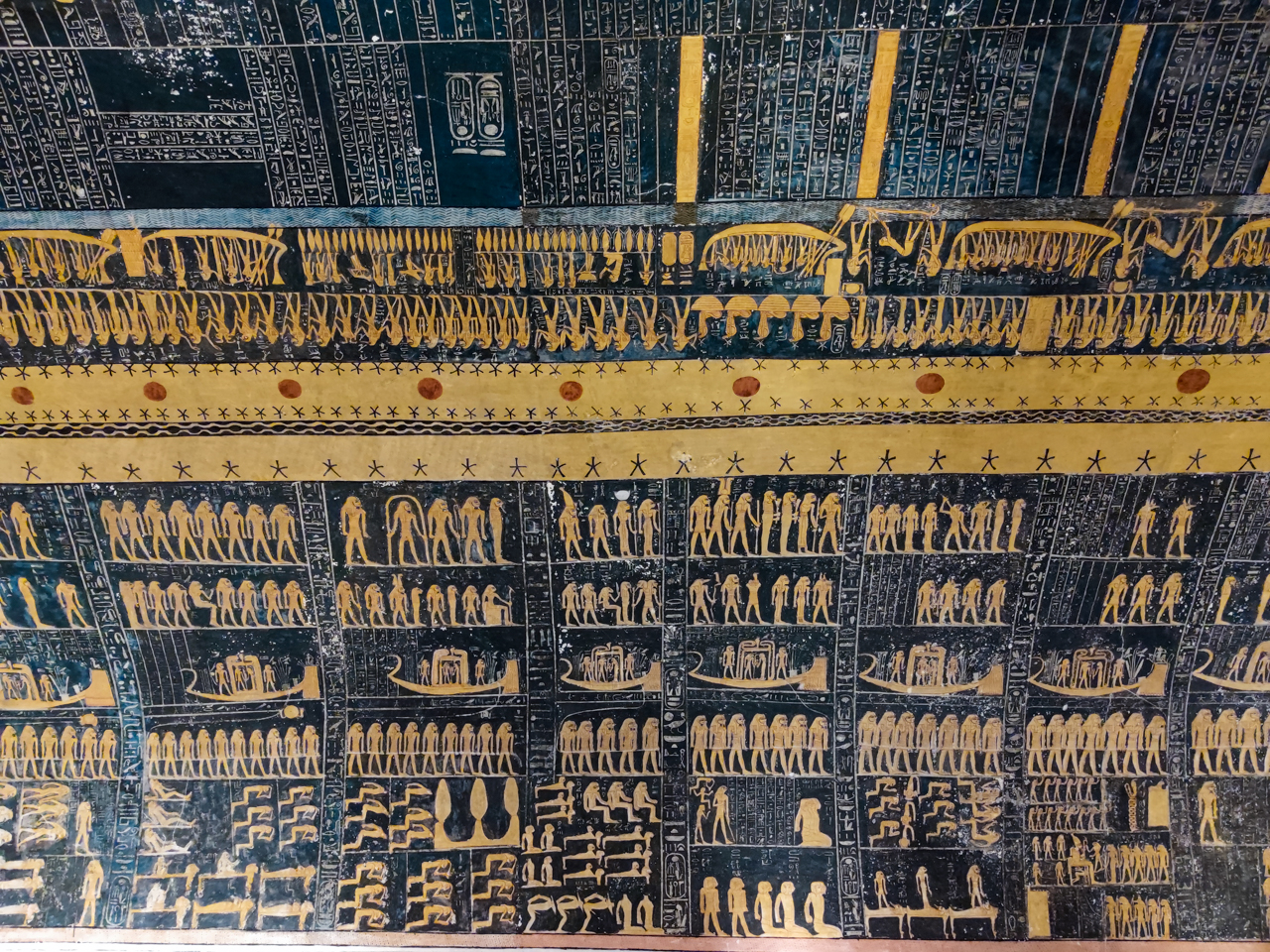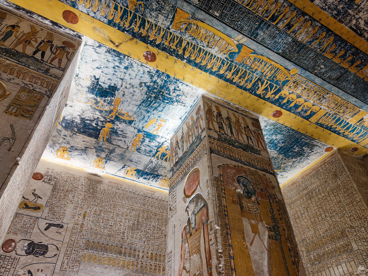 Le plafond de la tombe est peinte d'un bleu profond comme le ciel, c'est vraiment un site exceptionnel.