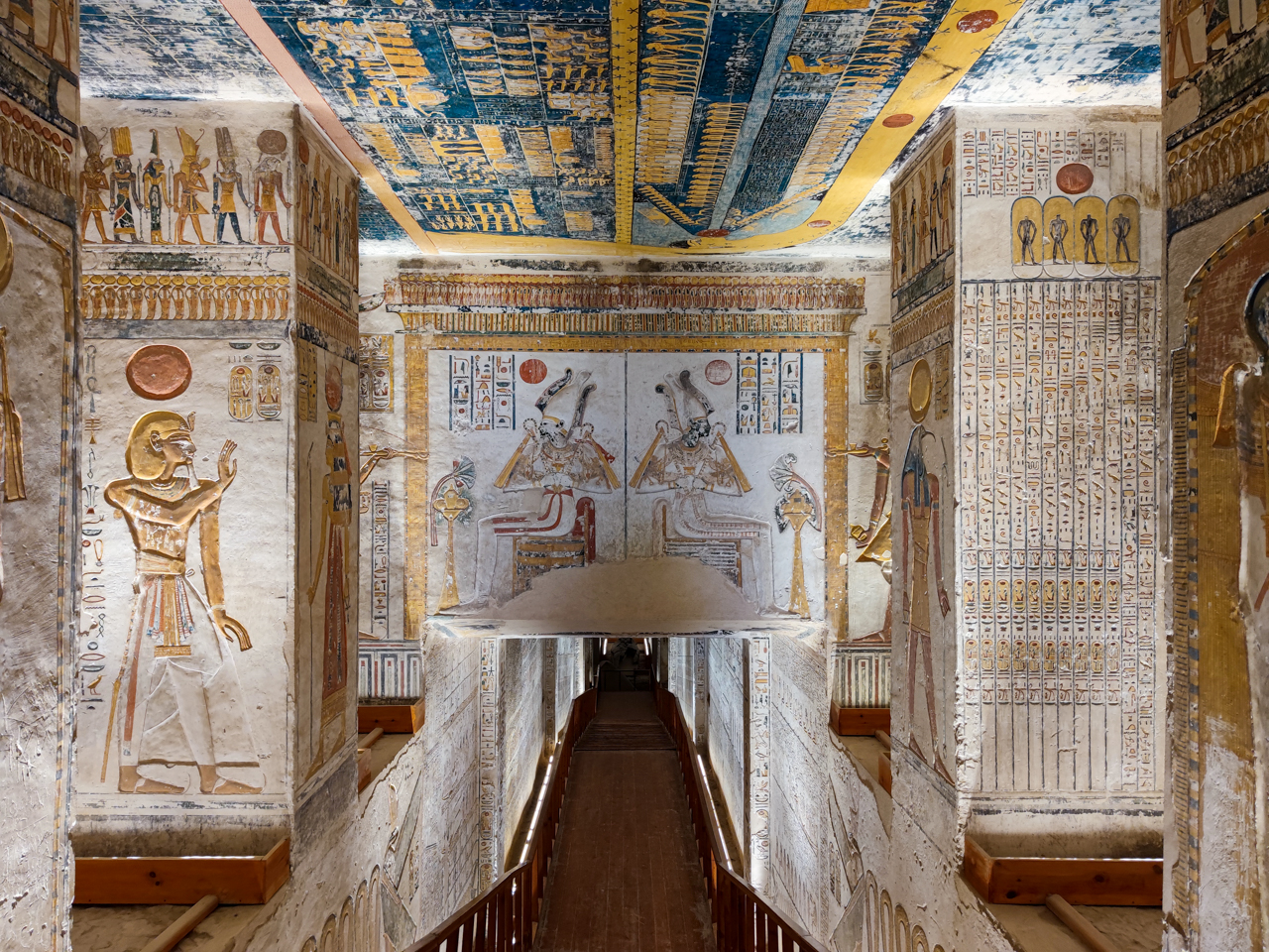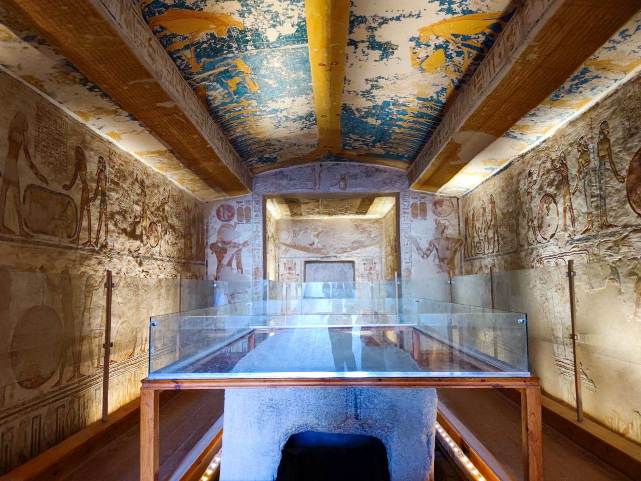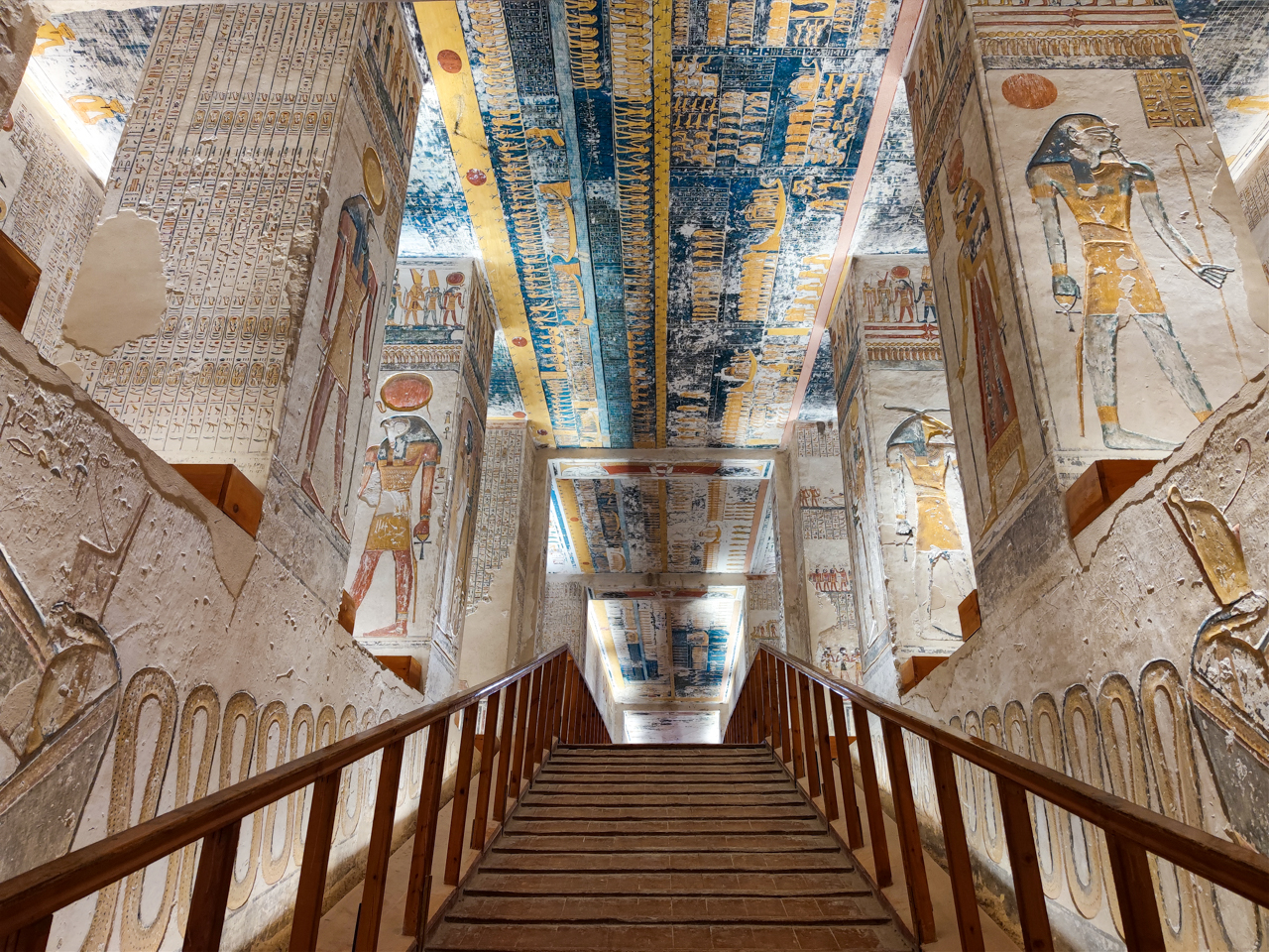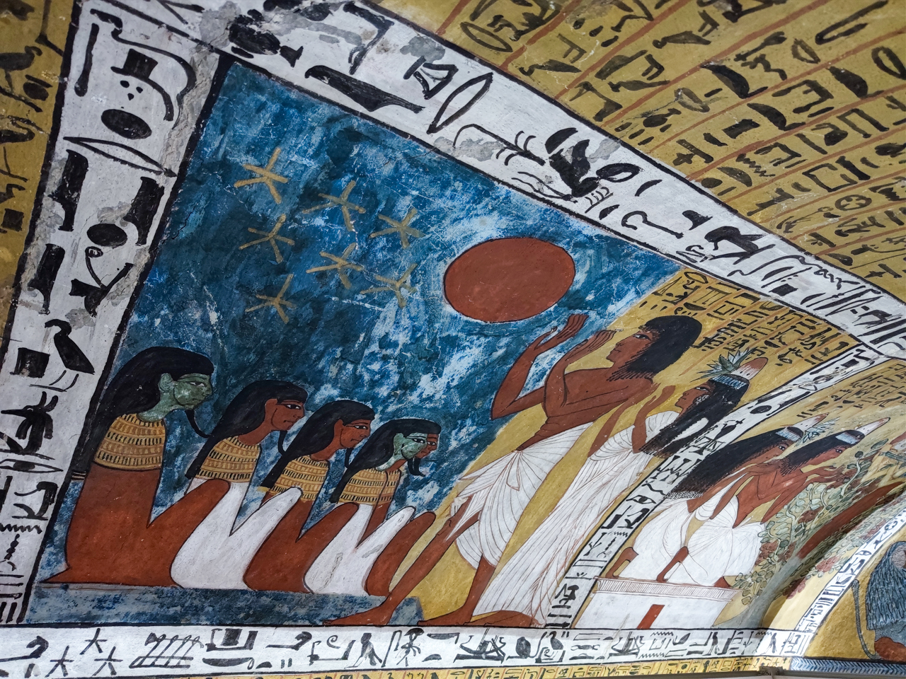 Le plafond de la tombe est peinte d'un bleu profond comme le ciel, c'est vraiment un site exceptionnel.
