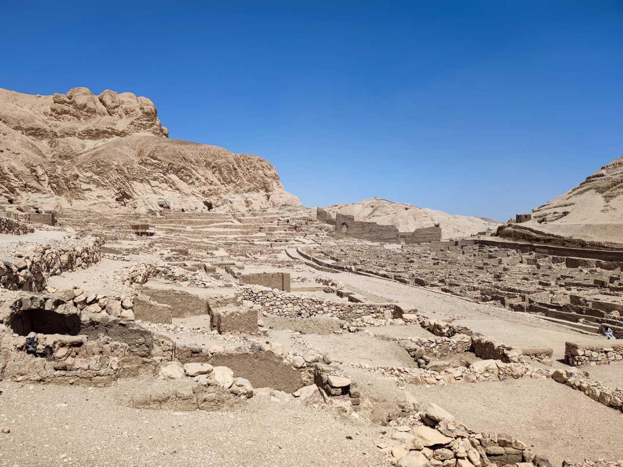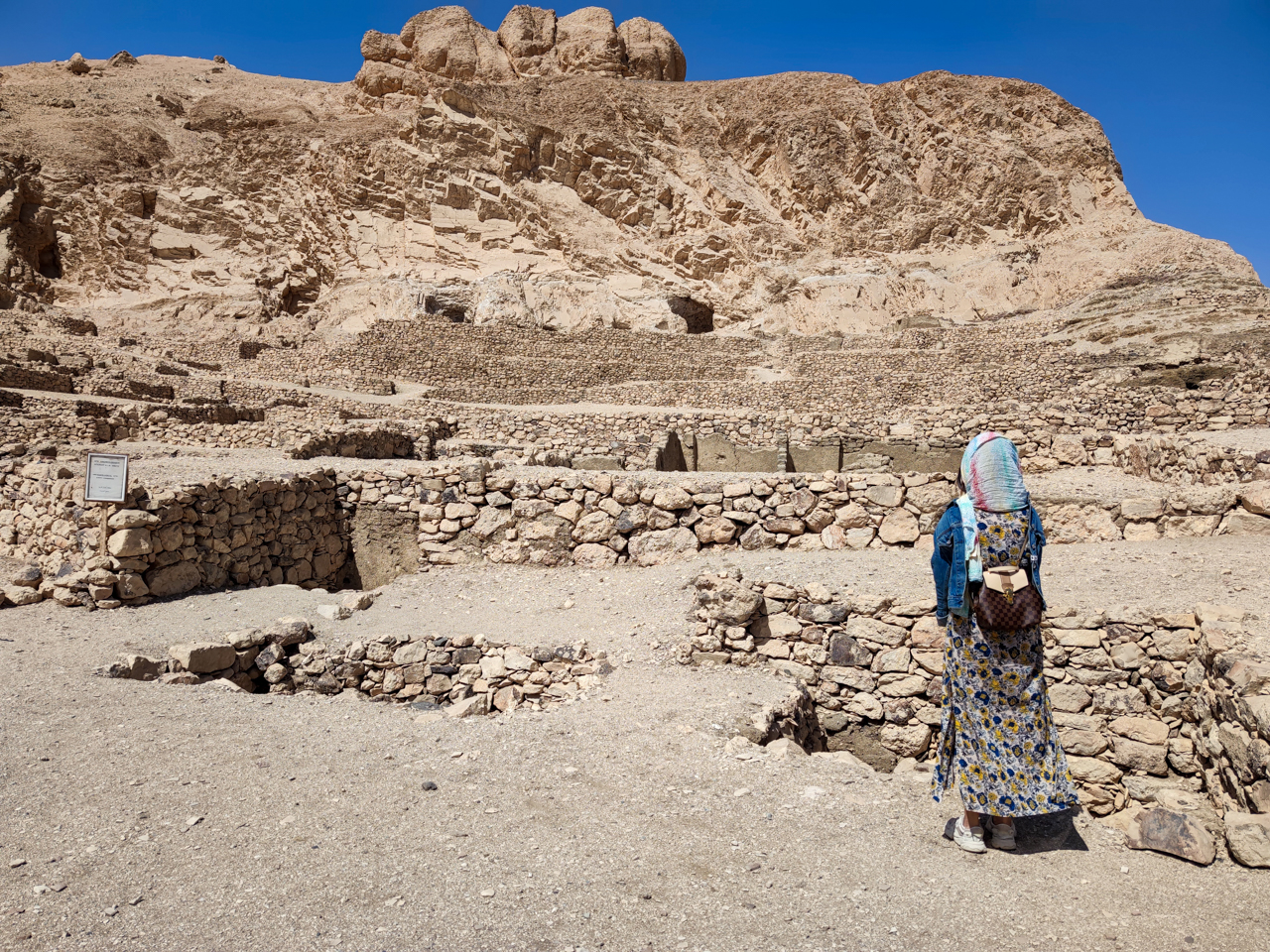 Un temple immanquable est attaché à ce village et mérite vraiment une visite. Toute cette zone est à mon avis un des immanquables de Louxor en fait, si on reste un peu plus de temps en ville et que l’on veut sortir des attractions les plus connues, je pense que les tombes des nobles et le village des artisans mérite le détour. Les vestiges de leur village ressemble à un labyrinthe, et il y a même une pyramide au milieu de ces amas de pierres.