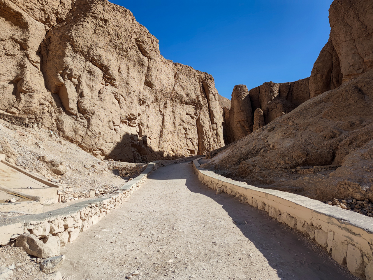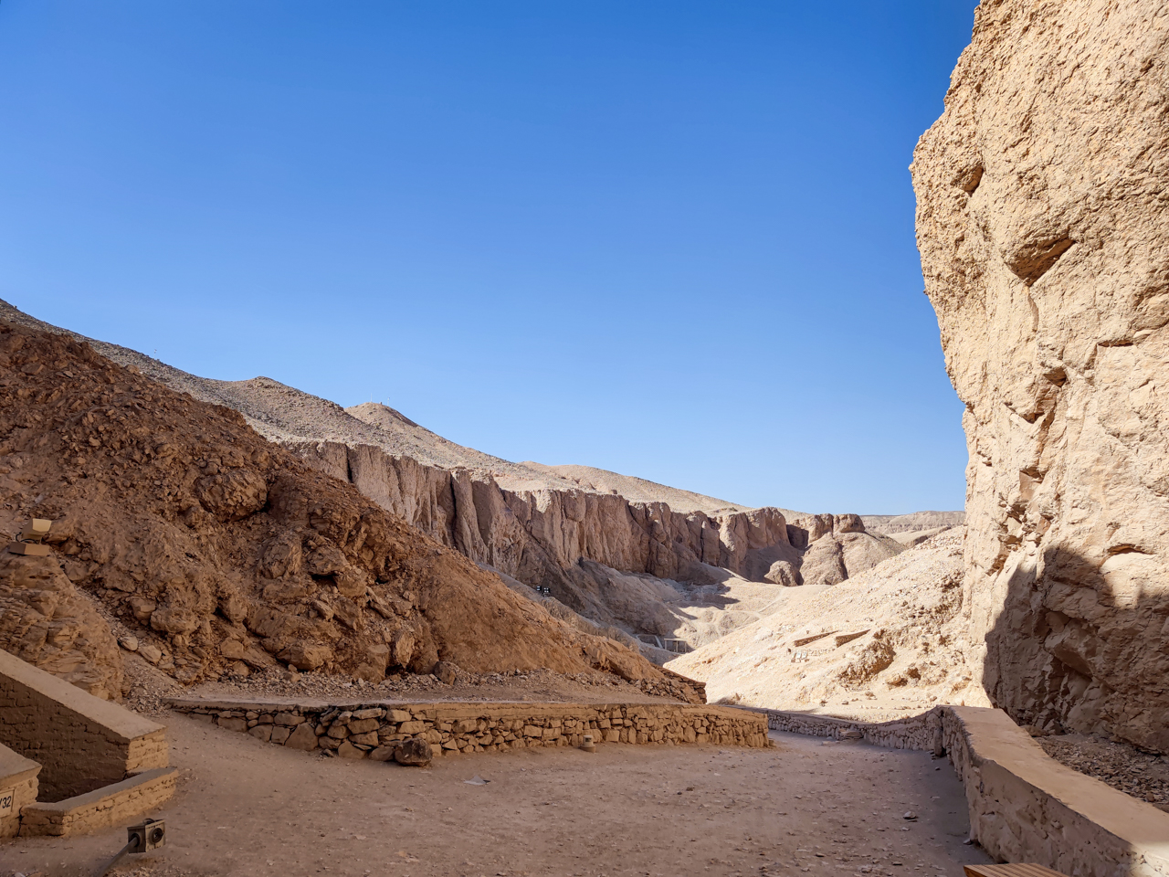 On cherche à monter au plus loin dans la vallée pour trouver des tombes un peu plus confidentielles mais on remarque que la plupart sont fermées.