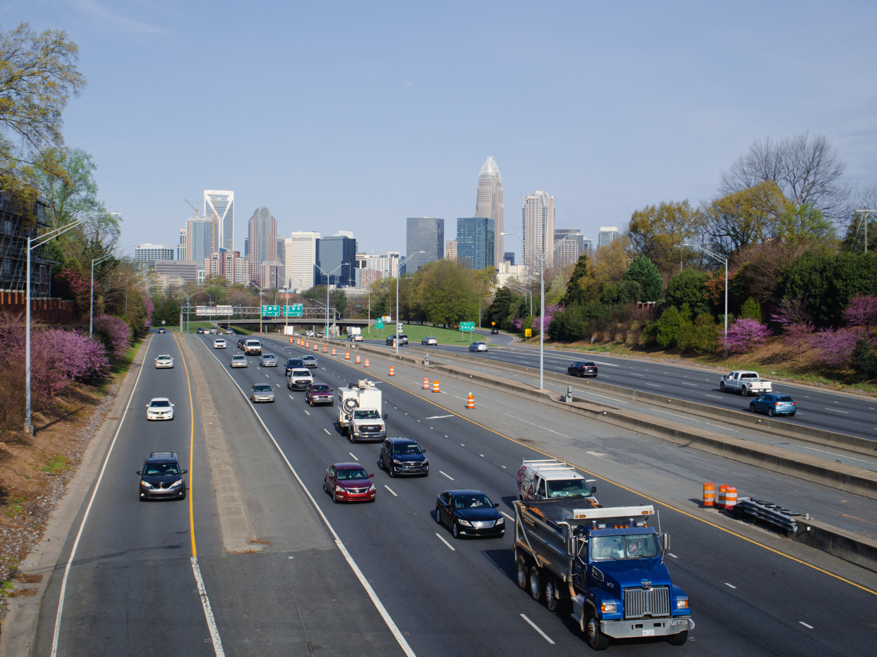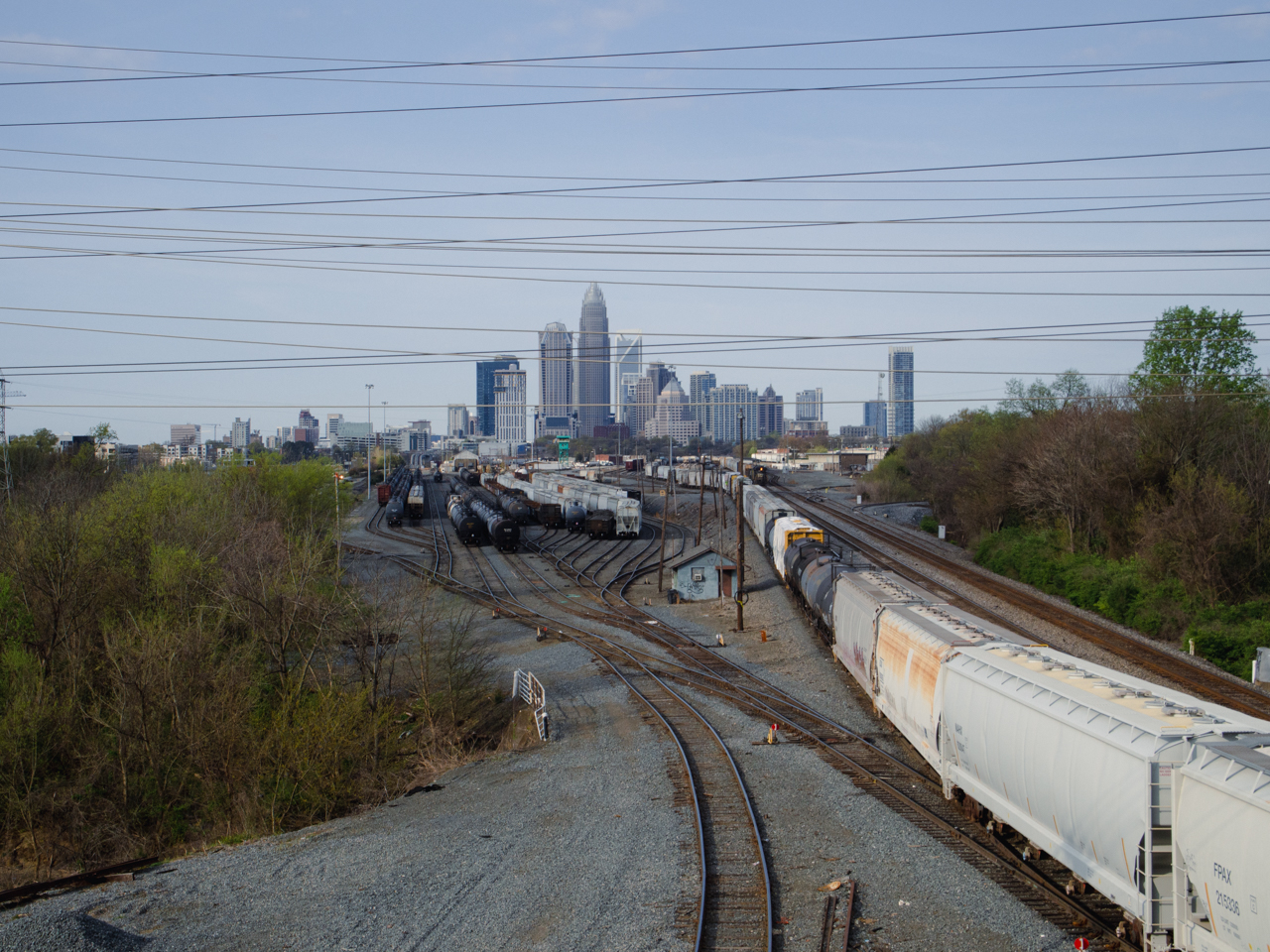 En entrant en ville, on ne peut manquer la vue depuis le pont de la Matheson Avenue dans le district de NoDa. On peut se garer un peu avant le pont qui enjambe la voie ferrée qui semble filer droit sur la skyline.