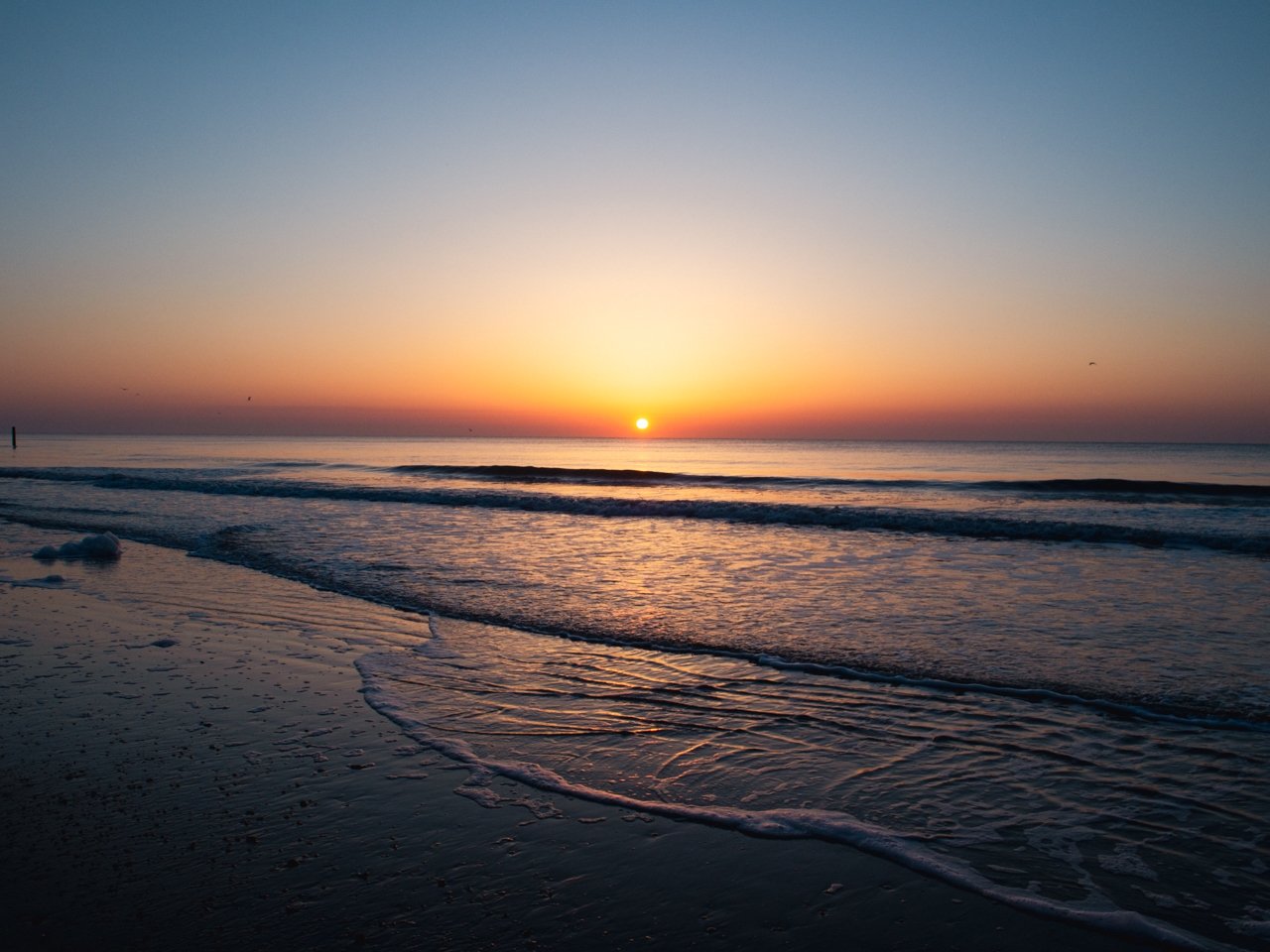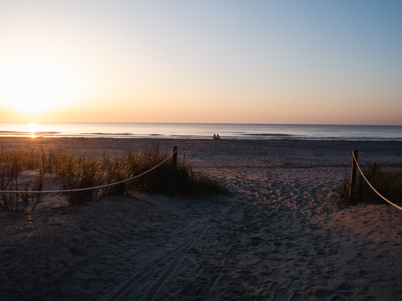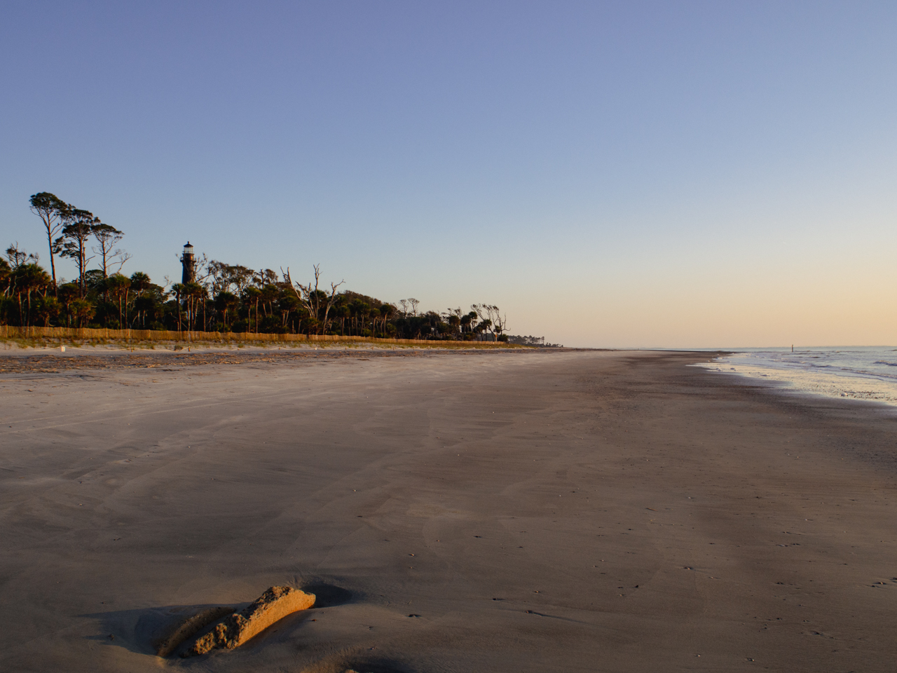 C’est à cause d’un aléas dans les hotels que je me suis retrouvé à dormir à Beaufort. Une difficulté logistique qui se retrouve une de mes expériences préférées de mon voyage dans le Sud des Etats Unis. J’avais envie de ne pas visiter que des villes dans mon voyage. En roulant depuis Charleston, on passait au bord de la mer, sur une belle route qui longeait une zone peu habitée faites de marais, de bras de mer, de forêts denses. Je me demandais bien si il était possible de trouver un endroit où il était possible d’entrer en sécurité dans cette zone naturelle, et c’est par hasard en arrivant à Beaufort que je découvre l’existence du parc naturel de Hunting Island. Ce petit parc de l’état de Caroline du Sud est installé tout au bout d’une péninsule, face à l’océan et borde un bras de mer. On peut marcher sur des sentiers ou sur le bord de la plage. Une destination imprévue mais idéale avant de poursuivre jusqu’à Savannah. Le parc de Hunting Island Park étant orienté plein Est, je décide de m’y rendre à l’ouverture à 6h du matin pour accueillir le lever de soleil sur l’océan Atlantique. J’arrive quelques minutes avant que le spectacle ne commence, le soleil qui monte de l’horizon au matin sur l’océan c’est original pour un européen.