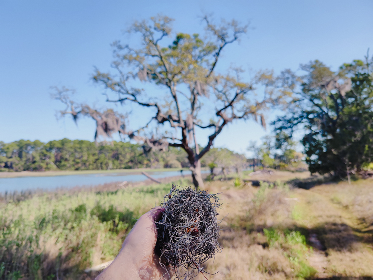 Je continue le tour du parc naturel en remontant vers la Lighthouse par la partie intérieure, afin de faire une boucle complète. De ce côté, la forêt est dense, il y a de nombreux arbres avec de la mousse espagnole qui pend aux branches.