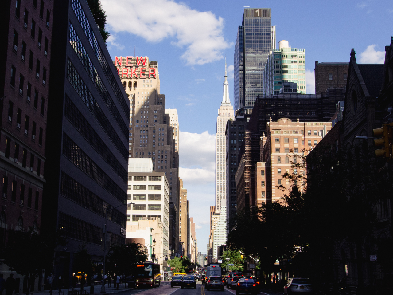 A la sortie du parc, on a une vue directe et avantageuse sur l’Empire State Building, le dernier des quatre bâtiments qui pour moi résument le mieux l’architecture new-yorkaise (avec le Rockefeller Center, le Chrysler Building et le Flat iron). Mais de ces quatre bâtiments, c’est clairement l’Empire State Building qui les surpasse tous avec sa taille imposante, sa flèche argentée, et sa place centrale dans la culture populaire. C’est un des plus grands symboles de New York.