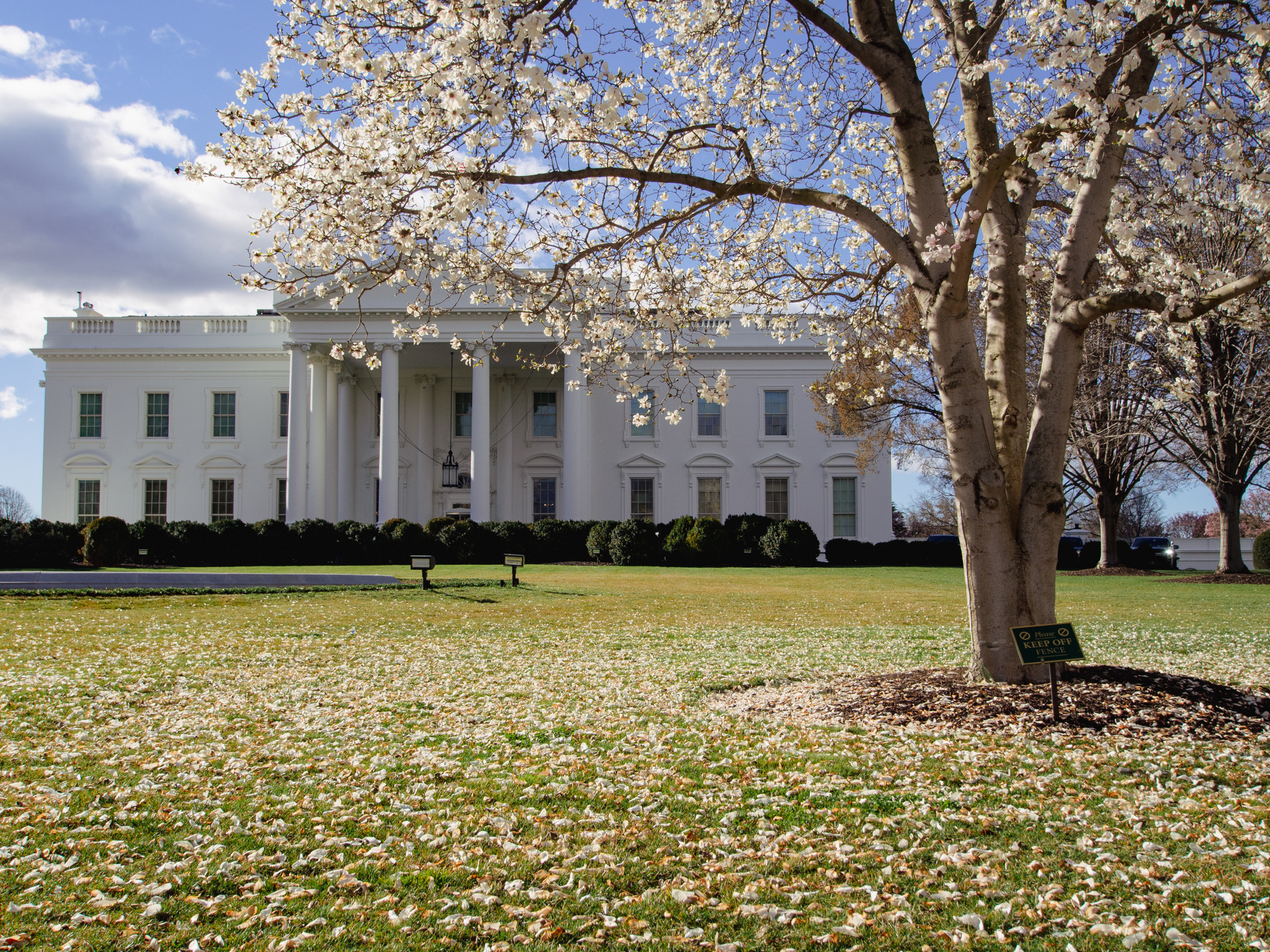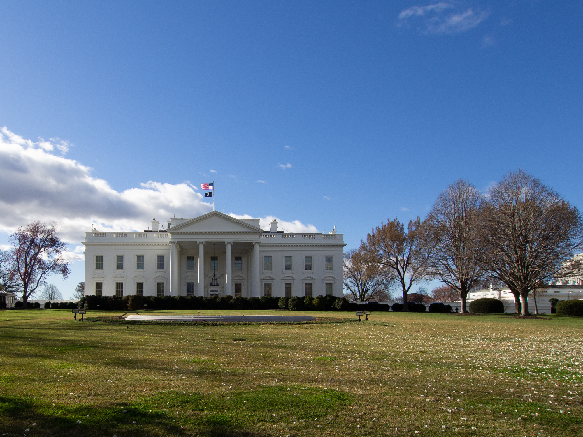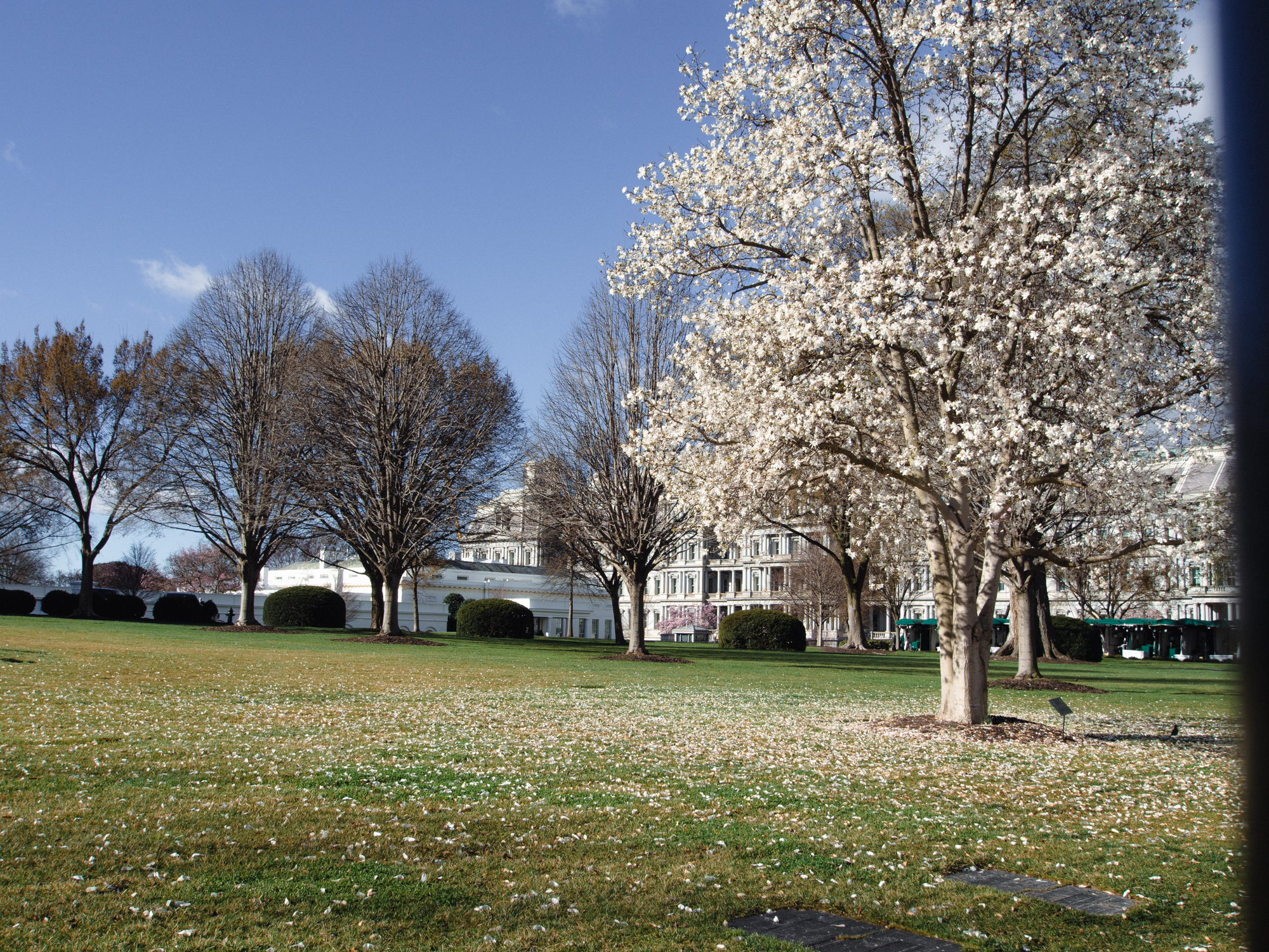 Face à la Maison Blanche se trouve un immense parc, l’ellipse, qui se prolonge sur le Mall et fait face au Washington Monument. On comprend la symbolique ici, avec la Maison du Président en exercice qui fait face au monument qui commémore son illustre prédécesseur.