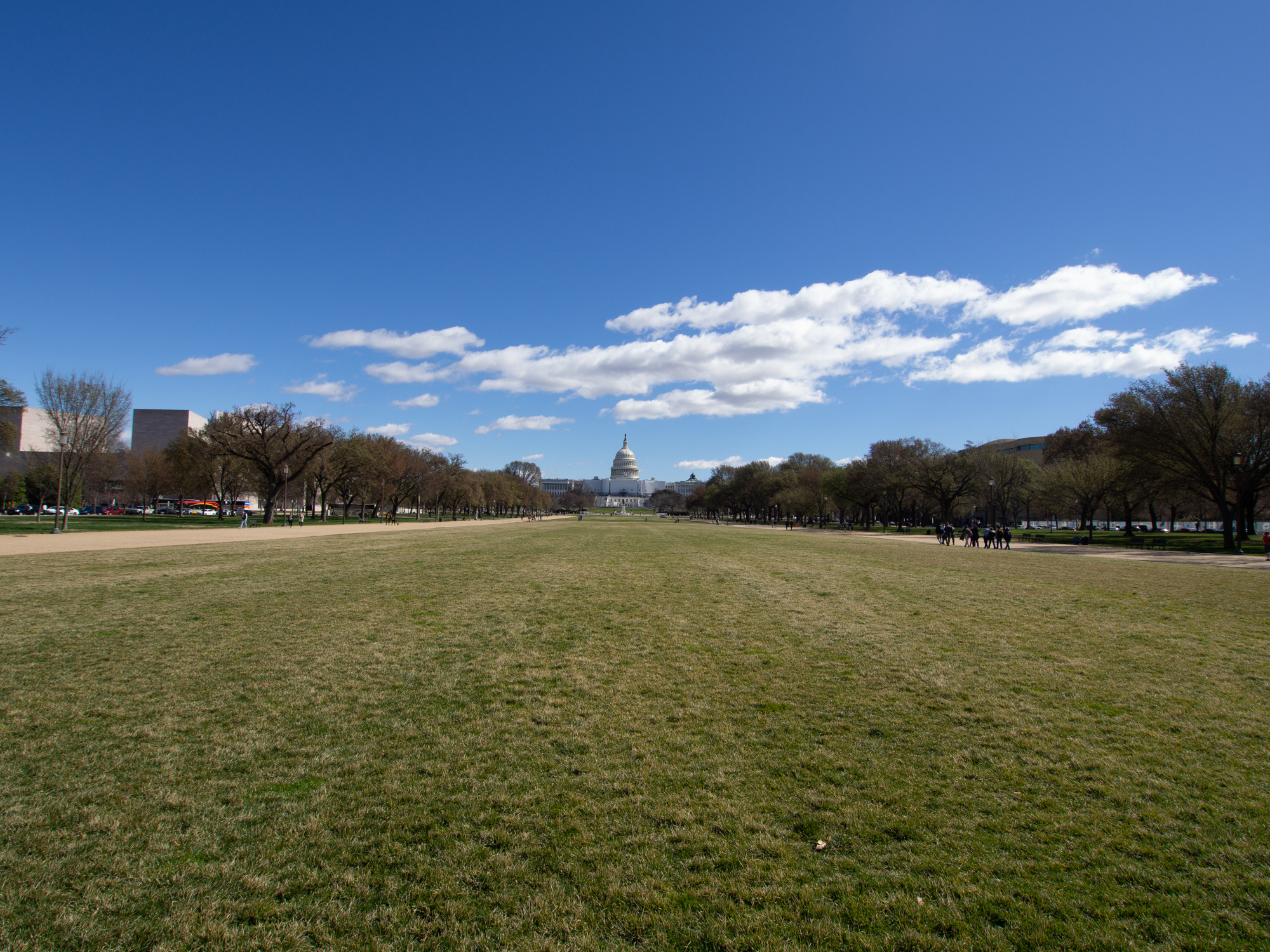 A l’intérieur, la pièce principale présente un immense drapeau qui a flotté après une âpre bataille contre les anglais pendant la guerre de 1812 - 1814. Les autres salles mettent en évidence la création de l’Amérique à partir de la révolte contre le pouvoir anglais, c’est intéressant. La dernière salle s’intéresse aux américains aux même, en posant la question « qui sommes nous ? » en jouant sur le jeu de mot « us » (« nous ») et « US » (« United States ») en anglais. Cette salle met en évidence les différentes vagues d’immigration et de mouvement de population interne au fil des ans depuis la découverte de l’Amérique. Cela permet d’avoir une vision linéaire et chronologique, mais les questions posées et les réponses semblent peu approfondies, très faciles, les enjeux et conflits profonds me semble à mon avis oubliés au profit d’un discours assez convenu de « on est tous l’Amérique », dommage… Je reste un peu sur ma faim, car je m’imaginais que ce musée, au sein de la capitale du pays serait allé beaucoup plus en profondeur sur ces sujets qui sont passionnants et d’actualité. Je traverse le Mall pour aller au deuxième musée qui m’intéresse, mais le musée de l’Air et de l’Espace n’est ouvert que sur réservation sur le site Internet, et il n’y a plus de place pour le jour même. Je continue donc en direction du Capitole où se trouve un beau parc.