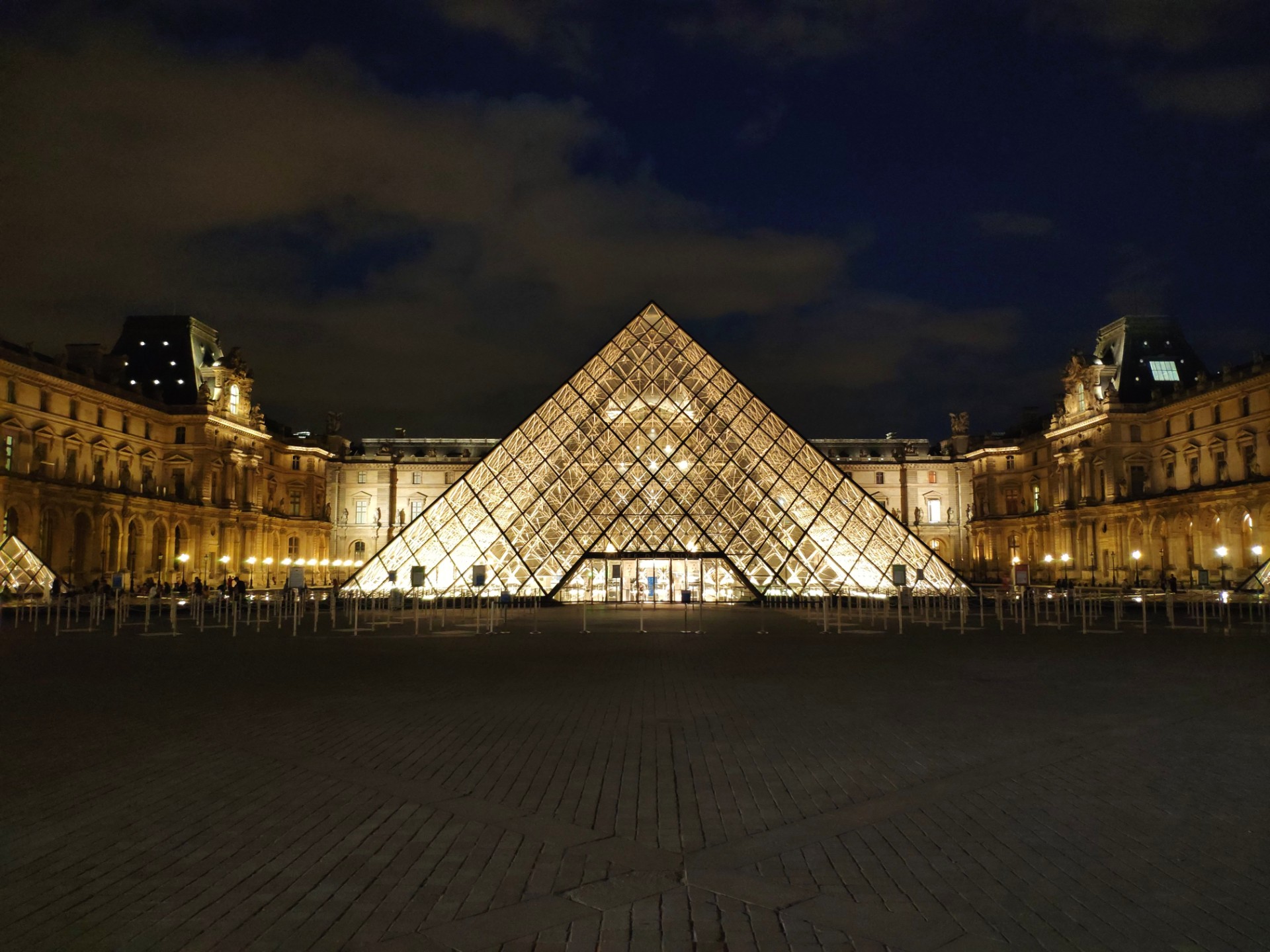 Les lumières de la pyramide de verre qui fête cette année ses 30 ans s’allument.