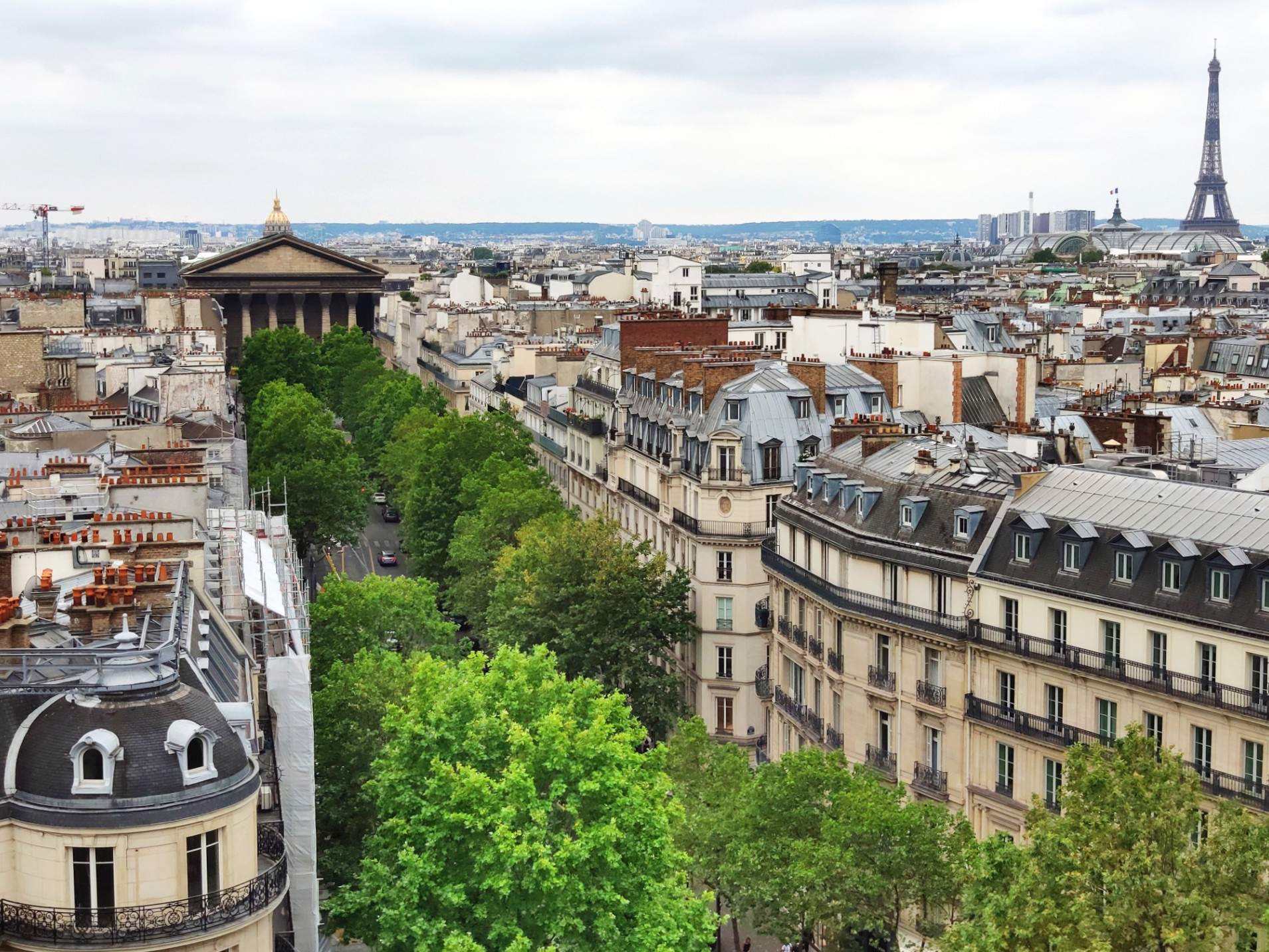Dans le quartier des grands magasins, on peut accéder au dernier étage du Printemps où a été installé un bar avec une terrasse qui donne sur les toits de Paris, avec la Tour Eiffel au fond.